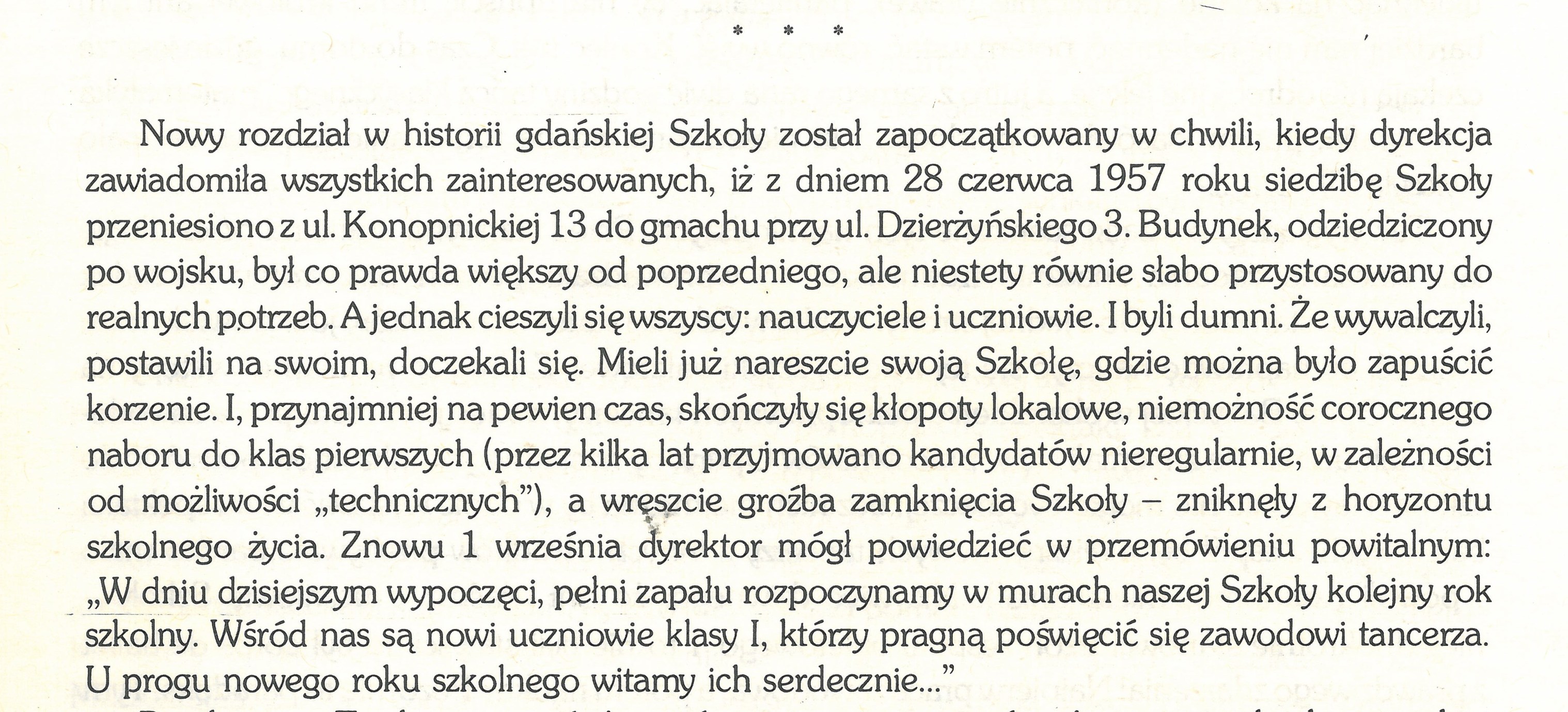 W fotogalerii można przeczytać inny fragment wspomnień Katarzyny Boguckiej-Krenz, dotyczący obecnej lokalizacji szkoły; jednak pod zmienionym adresem