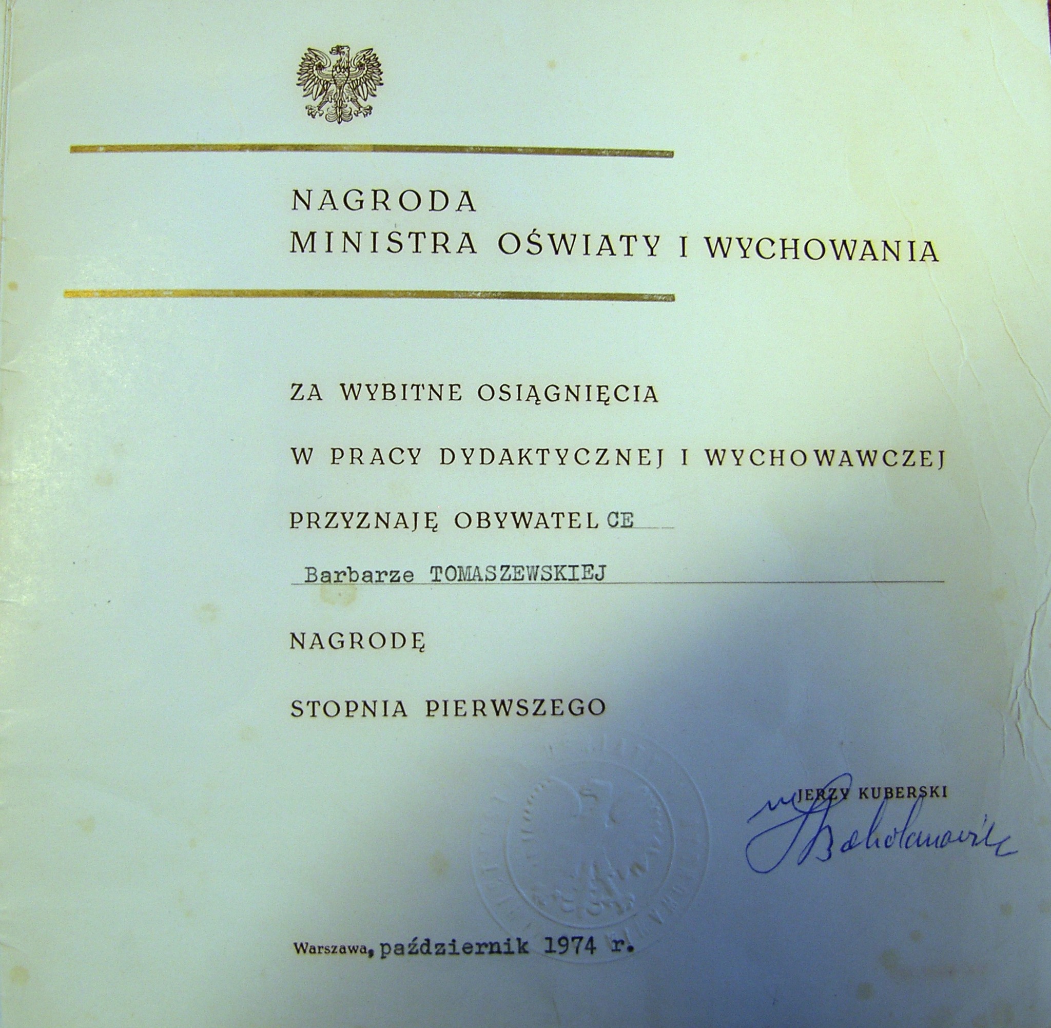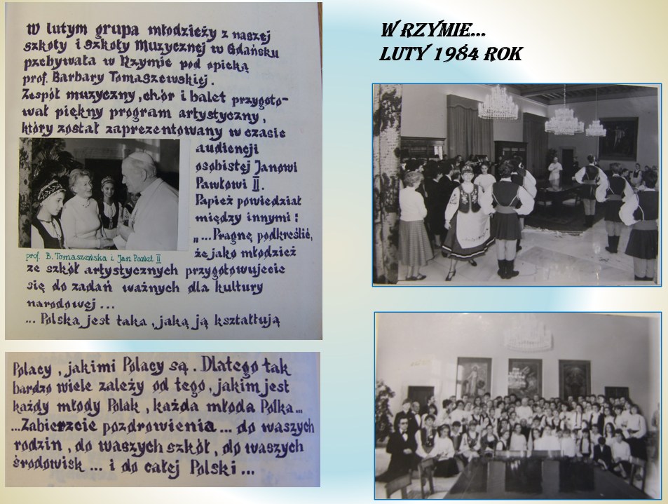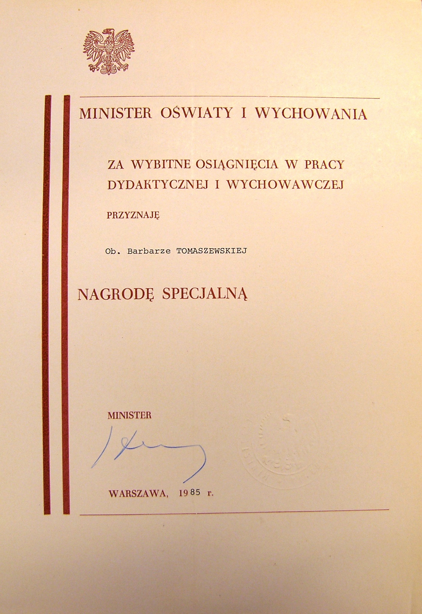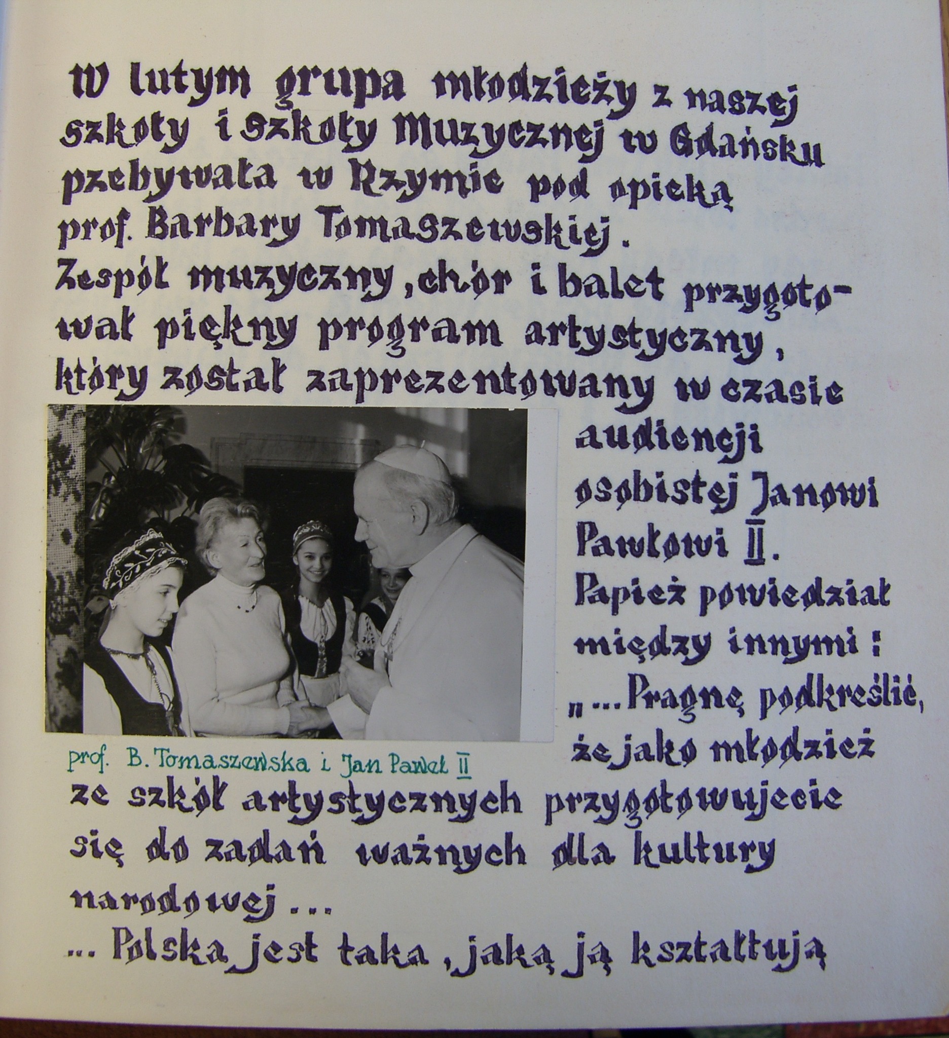W publikacji przygotowanej na 35-lecie istnienia szkoły, Janina Jarzynówna-Sobczak wspomina pedagogów, którzy współpracowali z Nią w pierwszych latach istnienia szkoły: „Nieco później dołączyła do nas Barbara Tomaszewska, wykładowczyni tańca ludowego, wszechstronnie znająca swój przedmiot, poszukująca w polskim folklorze coraz to nowych wartości”.