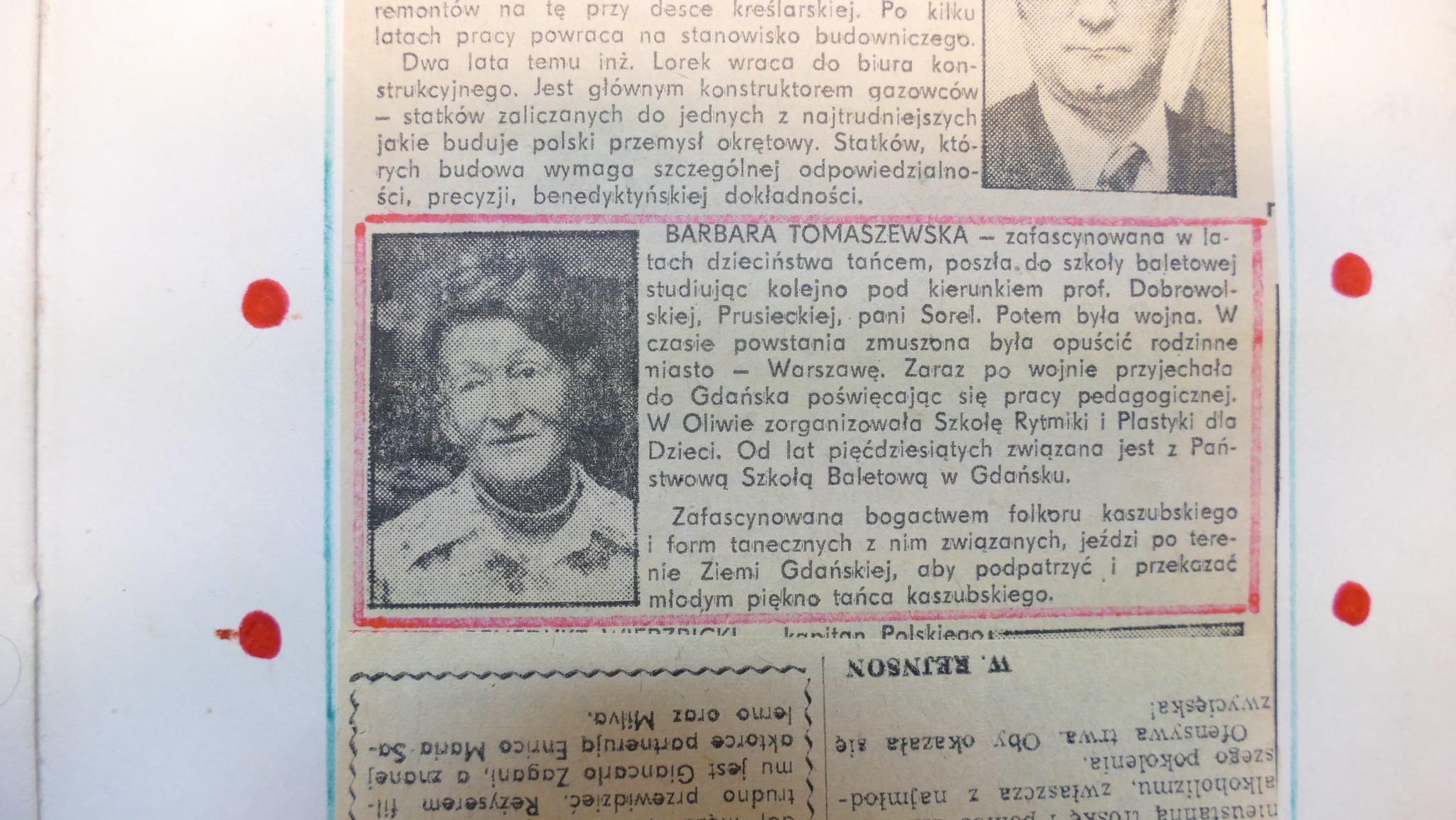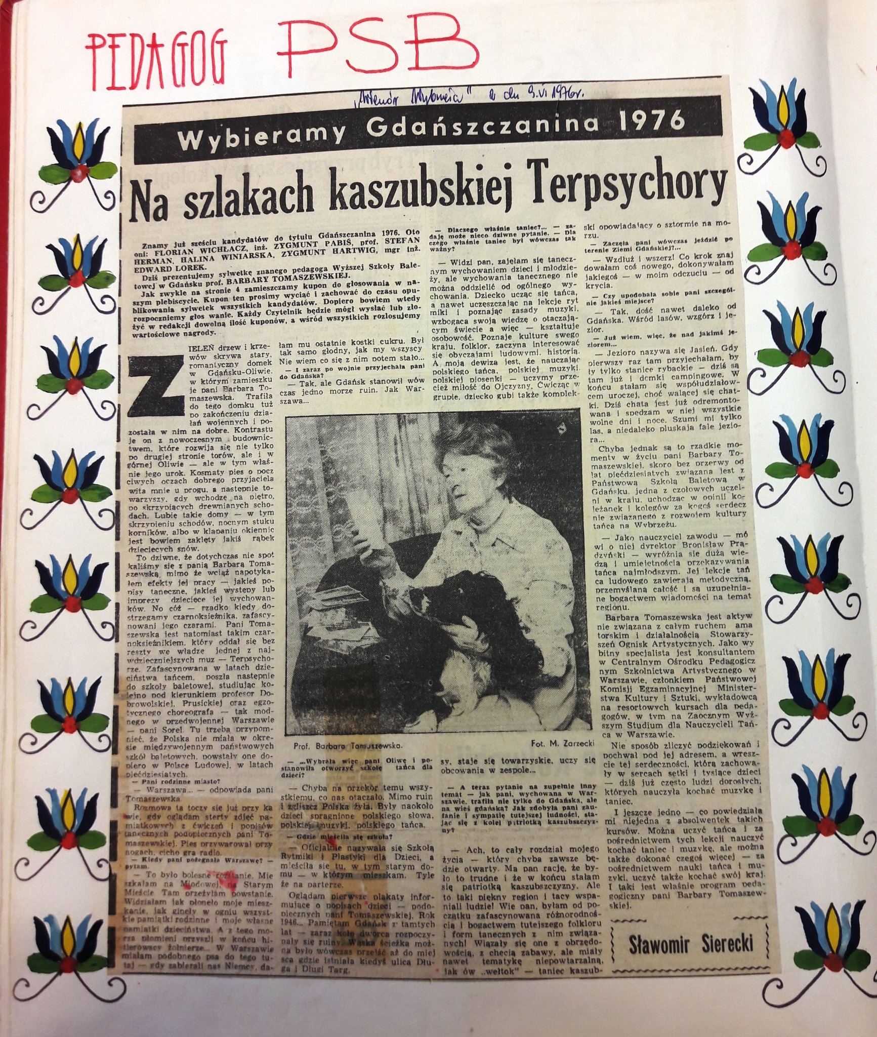 Ponieważ dzisiaj – 19 marca – przypada Dzień Jedności Kaszubów, święto upamiętniające pierwszą pisemną wzmiankę o Kaszubach. A Barbara Tomaszewska, która od 1953 roku do 1986 roku uczyła tańca ludowego była zafascynowana bogactwem folkloru kaszubskiego i zawsze podkreślała, jak bliskie są Jej Kaszuby. Była ekspertem jego zwyczajów, obrzędów, tradycji tego regionu.