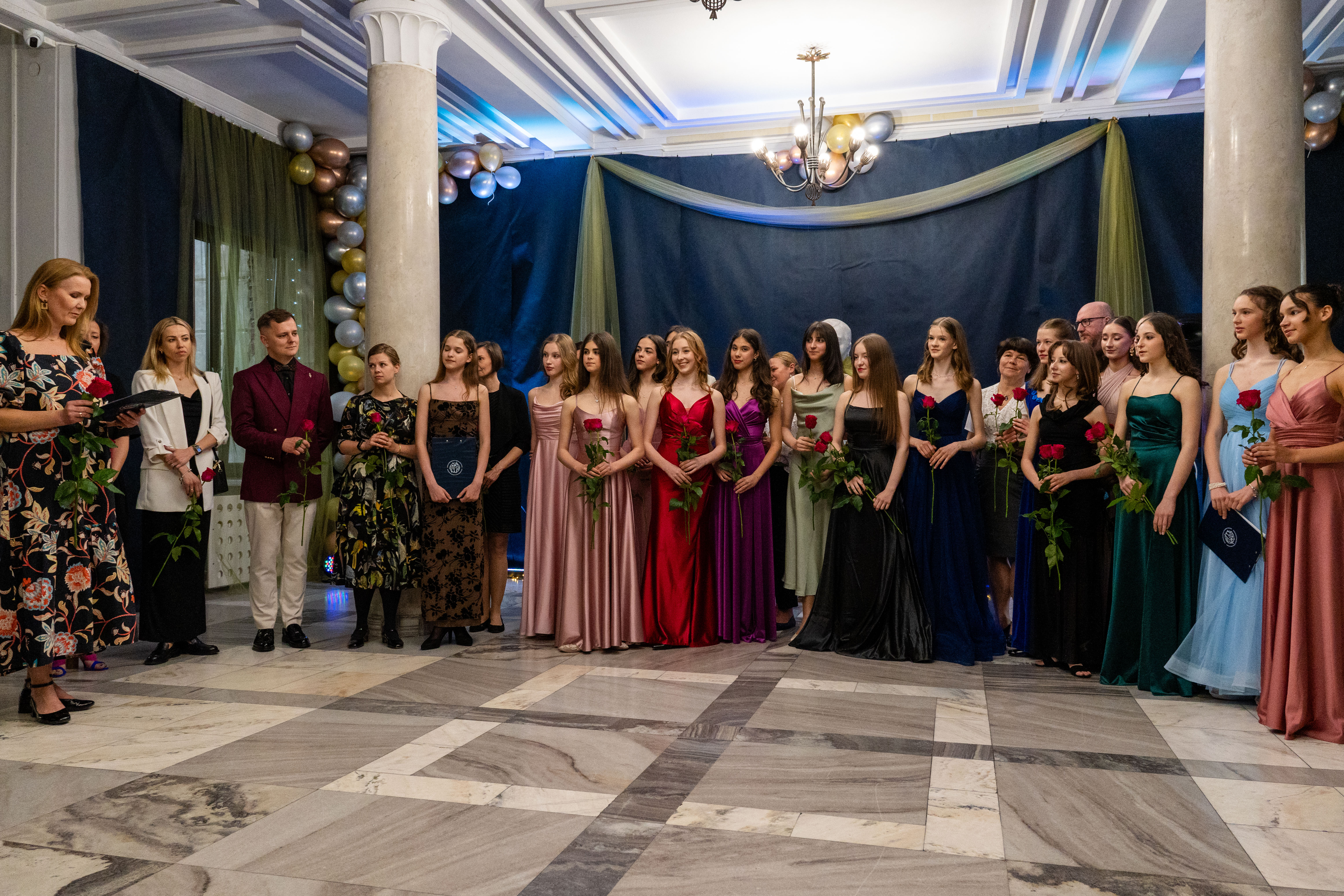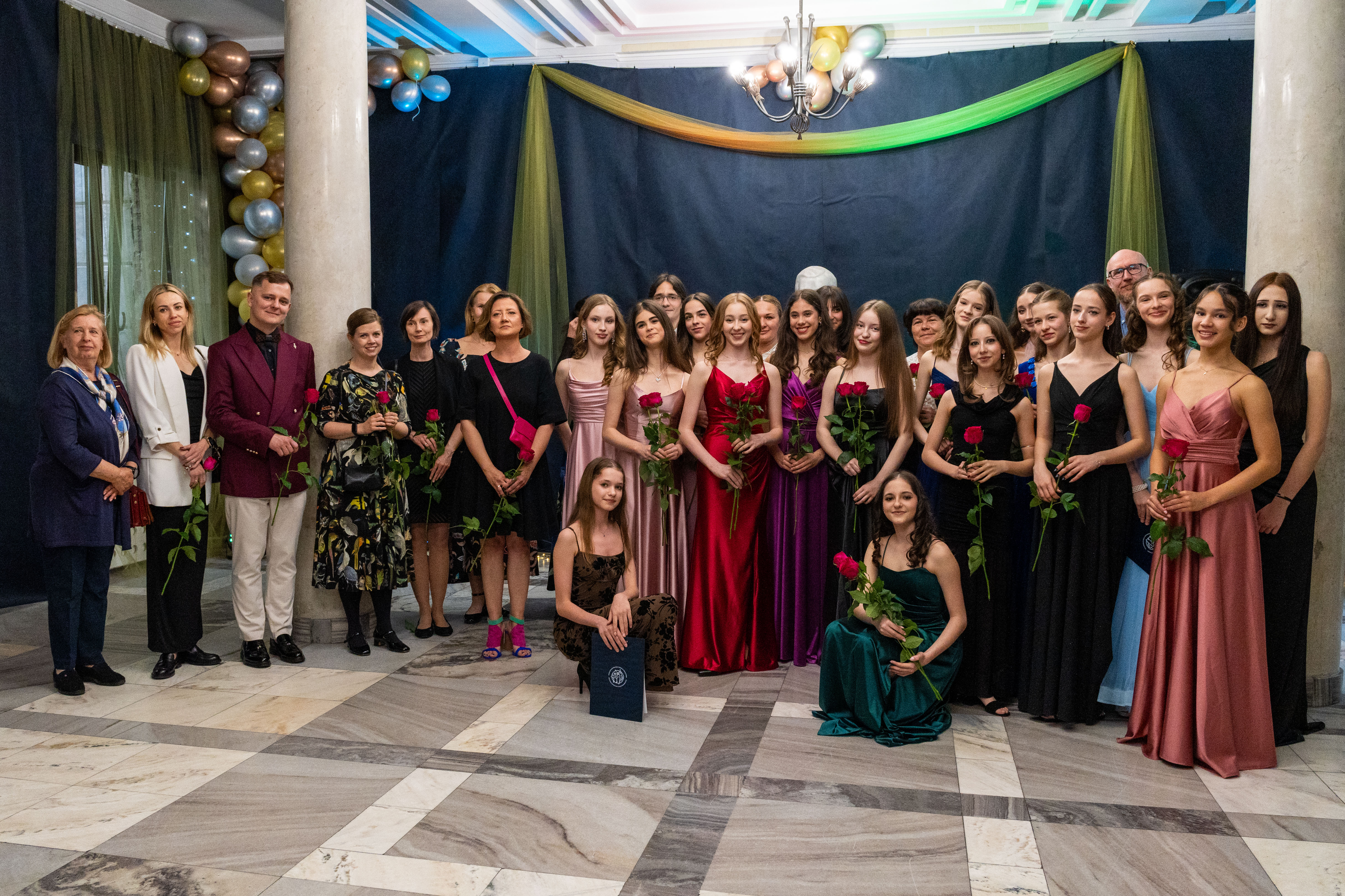 Już od pierwszych chwil wieczoru można było poczuć wyjątkową atmosferę. Dziewczęta w eleganckich sukniach – wszystkie prezentowały się z ogromną klasą. Bal rozpoczął się od oficjalnego przemówienia Pani dyrektor Faustyny Gałązki, która podkreśliła, jak wiele pracy, zaangażowania i pasji ósmoklasiści włożyli w ostatnie lata nauki, zarówno tej ogólnokształcącej, a przede wszystkim artystycznej.