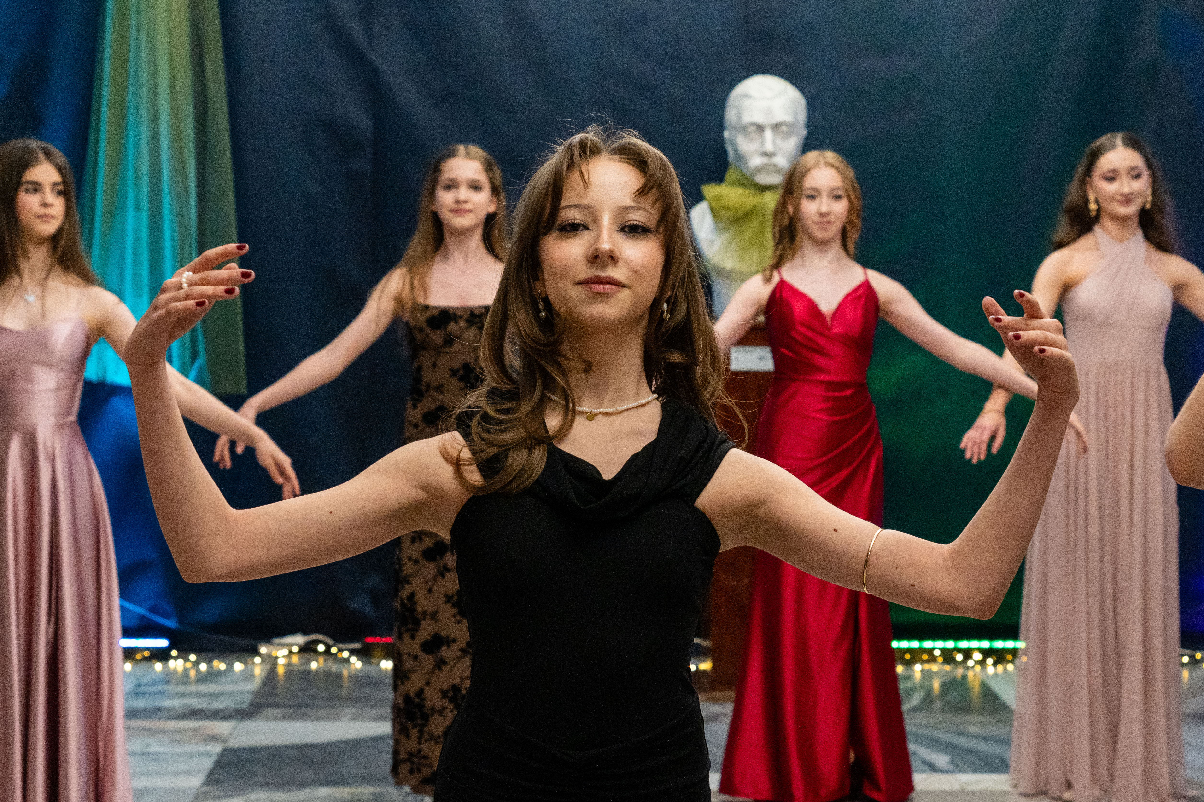 Kulminacyjnym momentem był uroczysty polonez – przygotowany specjalnie na tę okazję przez uczniów pod czujnym okiem Pani profesor Małgorzaty Borowiec. Układ był pełen finezji i wdzięku, zachwycając wszystkich obecnych. Następnie parkiet został otwarty, a muzyka – zarówno klasyczna, jak i nowoczesna – rozbrzmiewała do późnych godzin wieczornych.