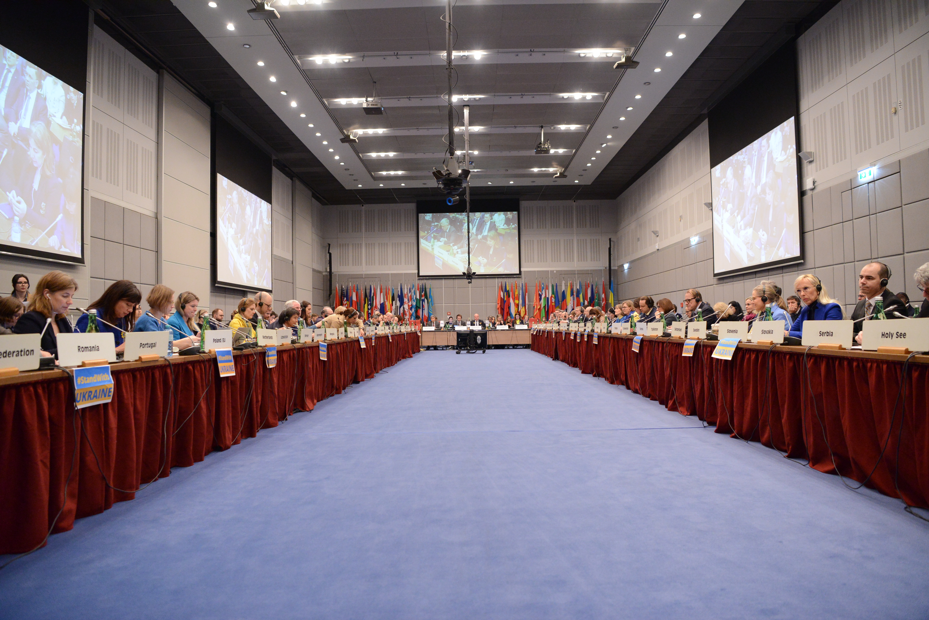 The reinforced OSCE Permanent Council is convened on an exceptional basis. It meets in Vienna, in the format of foreign ministers of the 57 OSCE participating States. In contrast, the weekly meetings, which take place in Vienna, in the format of the Permanent Representatives (Ambassadors) of the 57 OSCE participating States, are the OSCE Permanent Council - the main decision-making body for regular political consultations and for managing the day-to-day operational work of the OSCE.