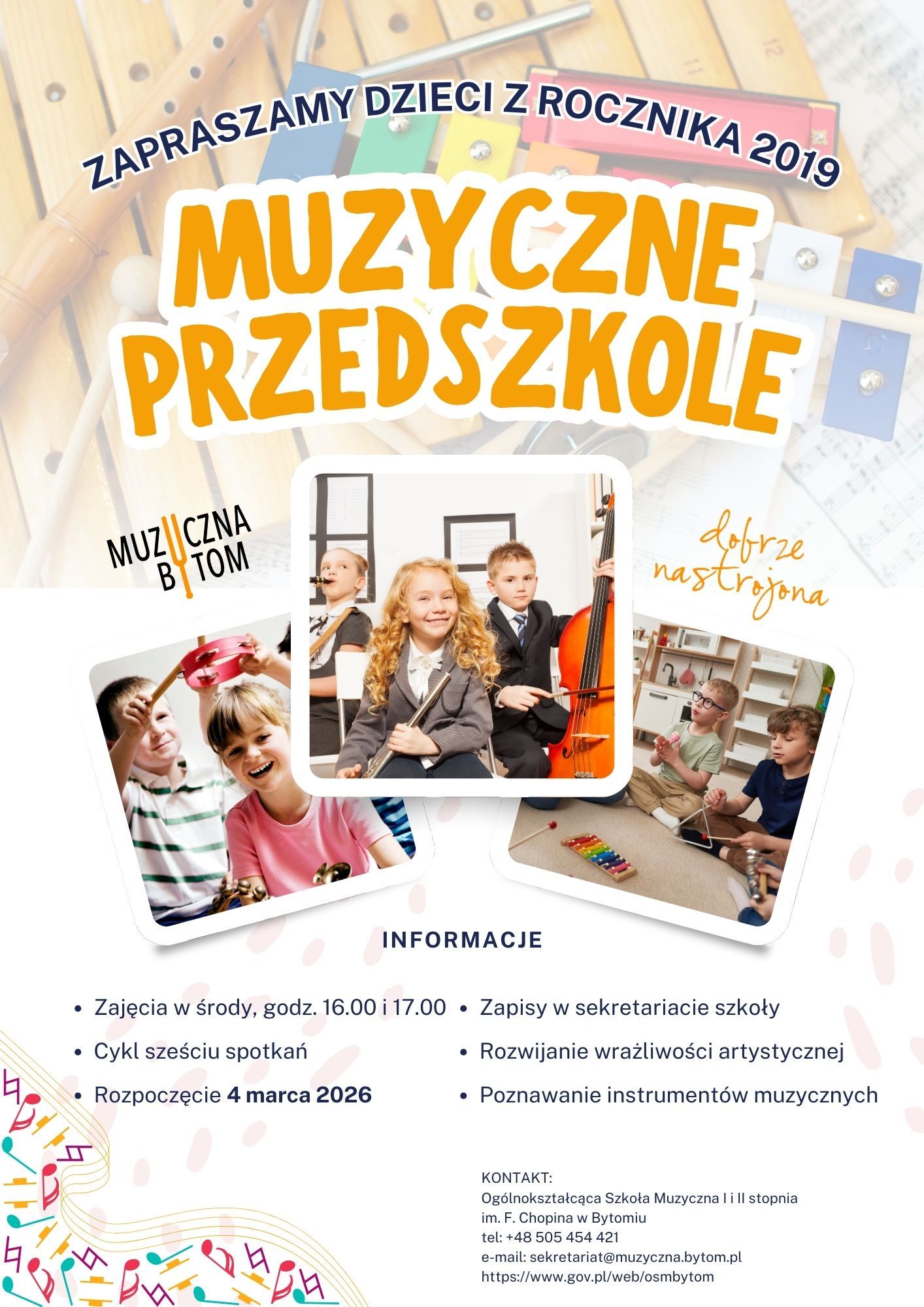 Serdecznie zapraszamy dzieci z rocznika 2019 na zajęcia umuzykalniające organizowane w ramach Muzycznego Przedszkola.