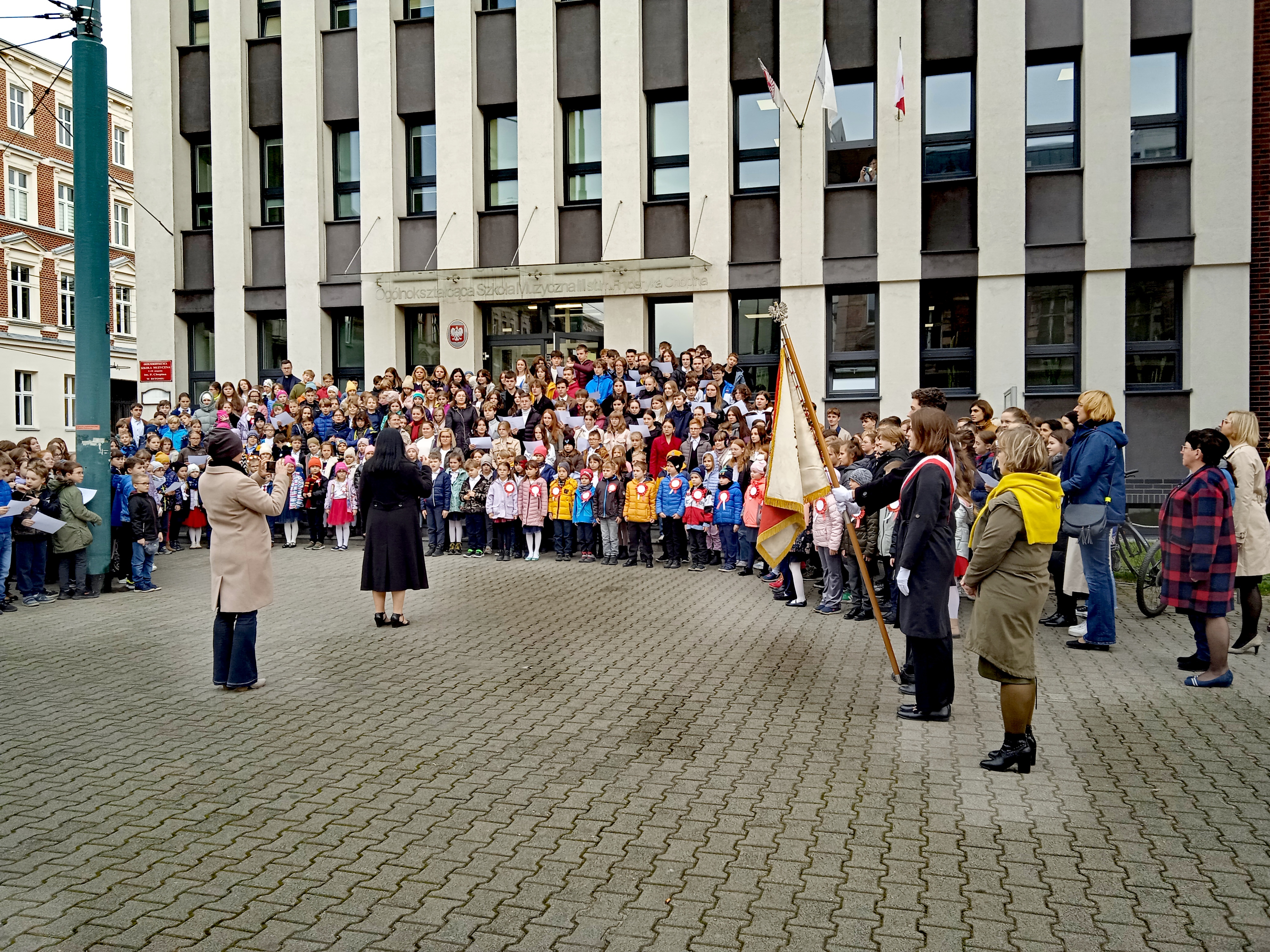 O godzinie 11.11 uczniowie wraz z nauczycielami odśpiewali hymn państwowy, dzieląc się radością płynącą z życia w wolnej ojczyźnie.