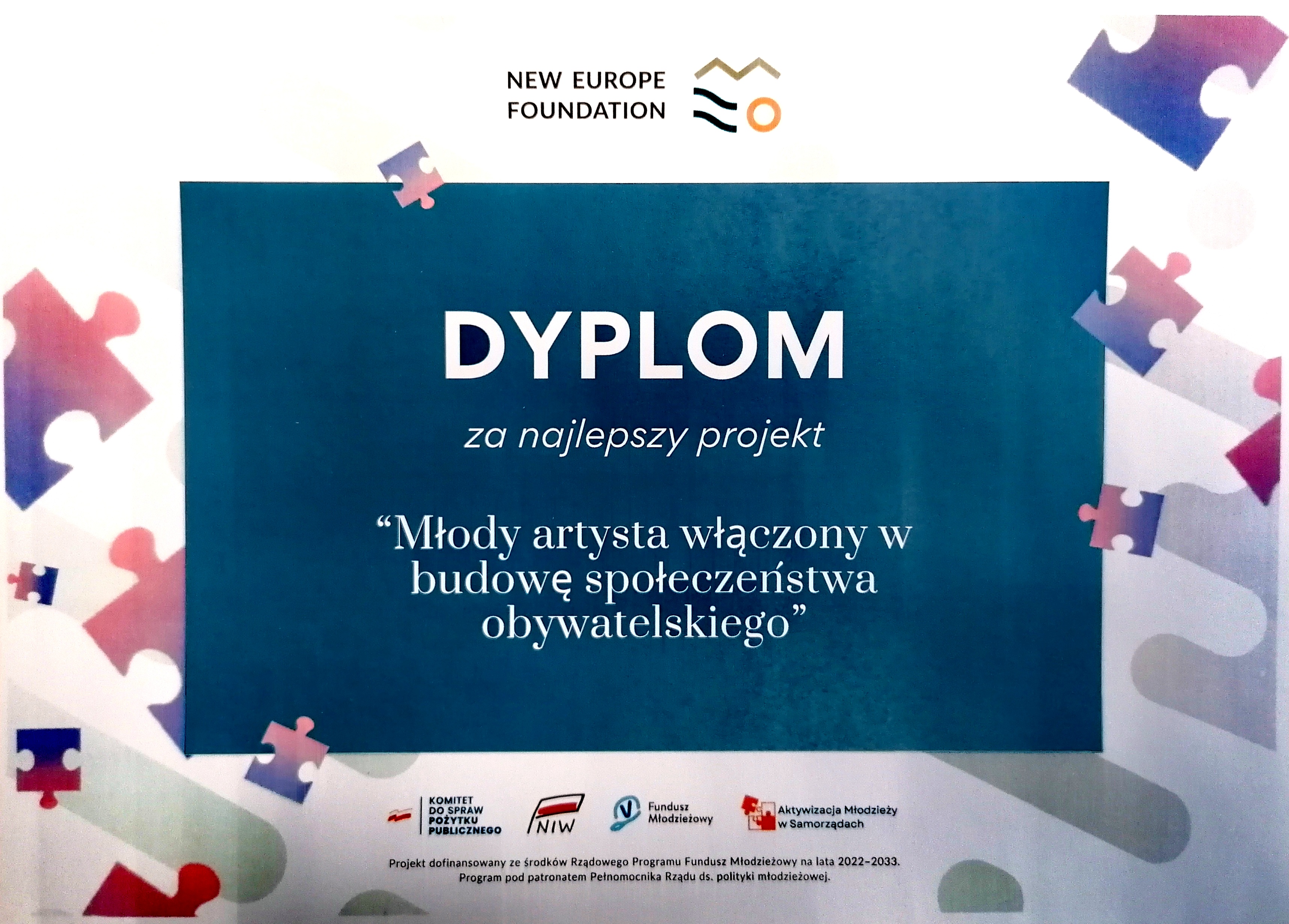 Projekt naszego samorządu, który realizowaliśmy od maja do października tego roku pt. Młody artysta w budowaniu społeczeństwa obywatelskiego, został wyróżniony pierwszą nagrodą. To znaczące osiągnięcie.