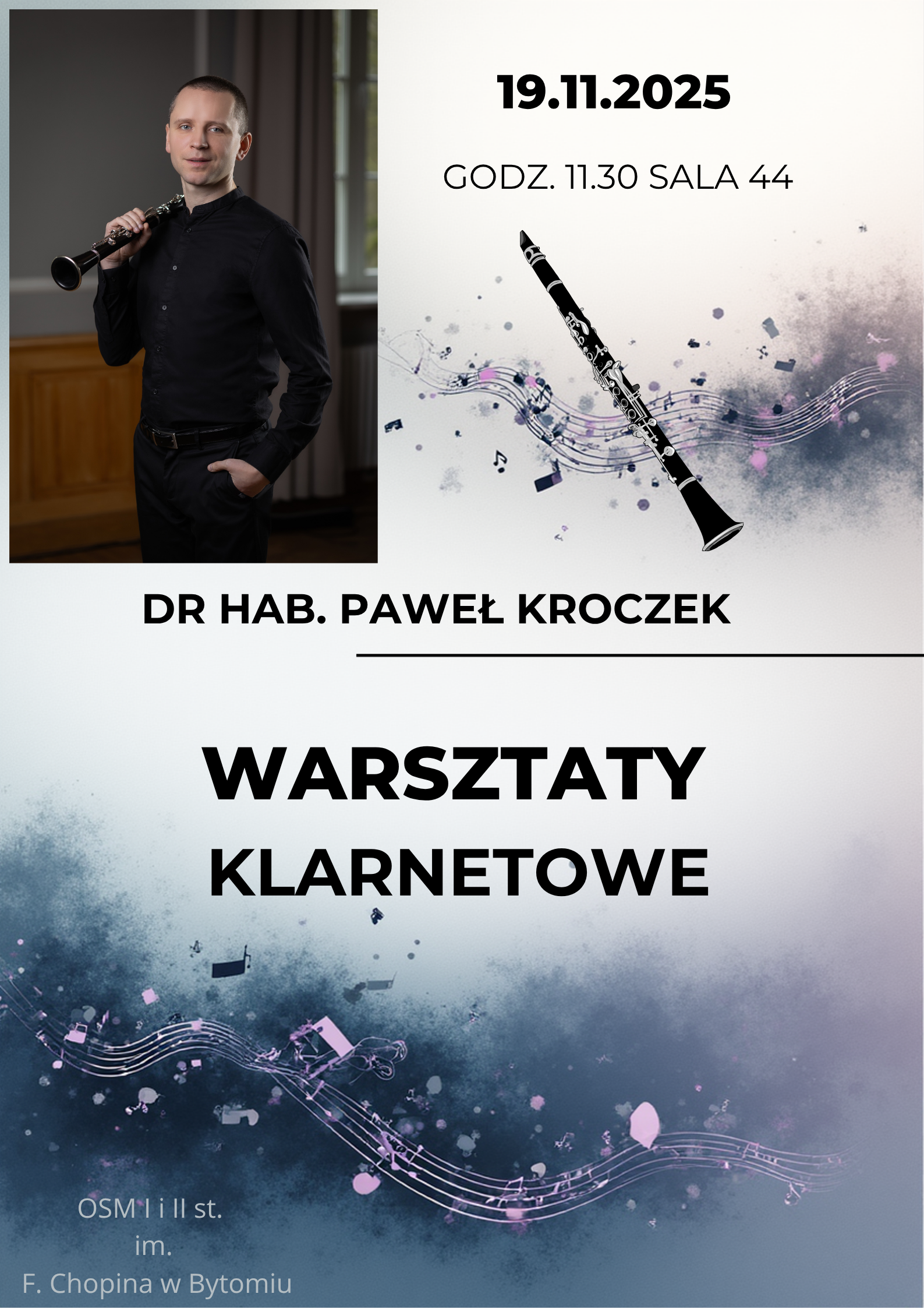 W dniu 19.11.2025 w naszej szkole odbędą się klarnetowe warsztaty metodyczne dla uczniów i pedagogów.
