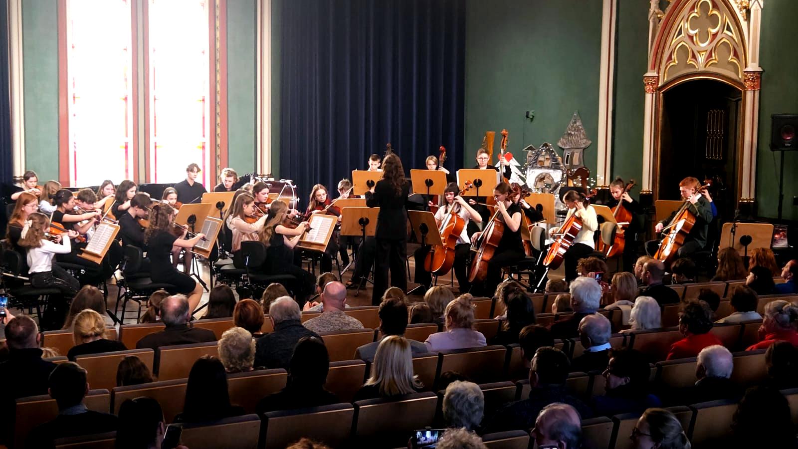 Na zakończenie koncertu zaprezentowała się Dziecięca Orkiestra Smyczkowa. Tym razem poprowadziły ją uczennice klasy dyrygentury: Aleksandra Będek, Weronika Skrzypulec i Natalia Stanisławska. Młodzież orkiestrową oraz młode dyrygentki do występu przygotował p. Filip Huget.