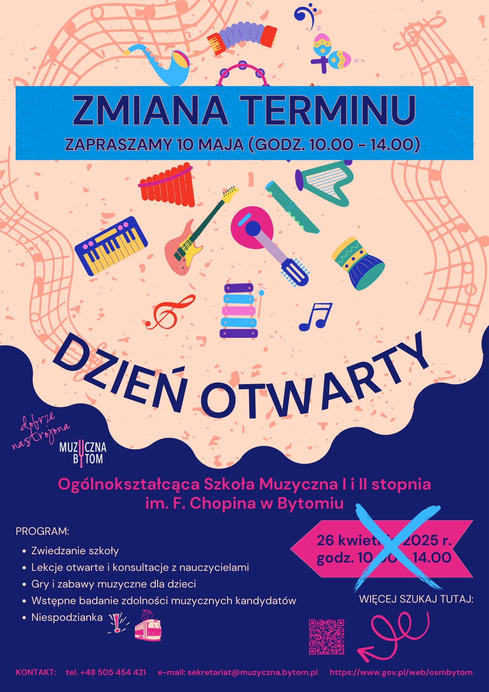 Serdecznie zapraszamy na Dzień Otwarty w Ogólnokształcącej Szkole Muzycznej I i II stopnia im. F. Chopina w Bytomiu, który odbędzie się 26 kwietnia 2025 roku w godzinach od 10.00 do 14.00! To doskonała okazja, by poznać naszą szkołę, spotkać się z nauczycielami oraz zobaczyć, jak wygląda nauka muzyki w tym wyjątkowym miejscu.
