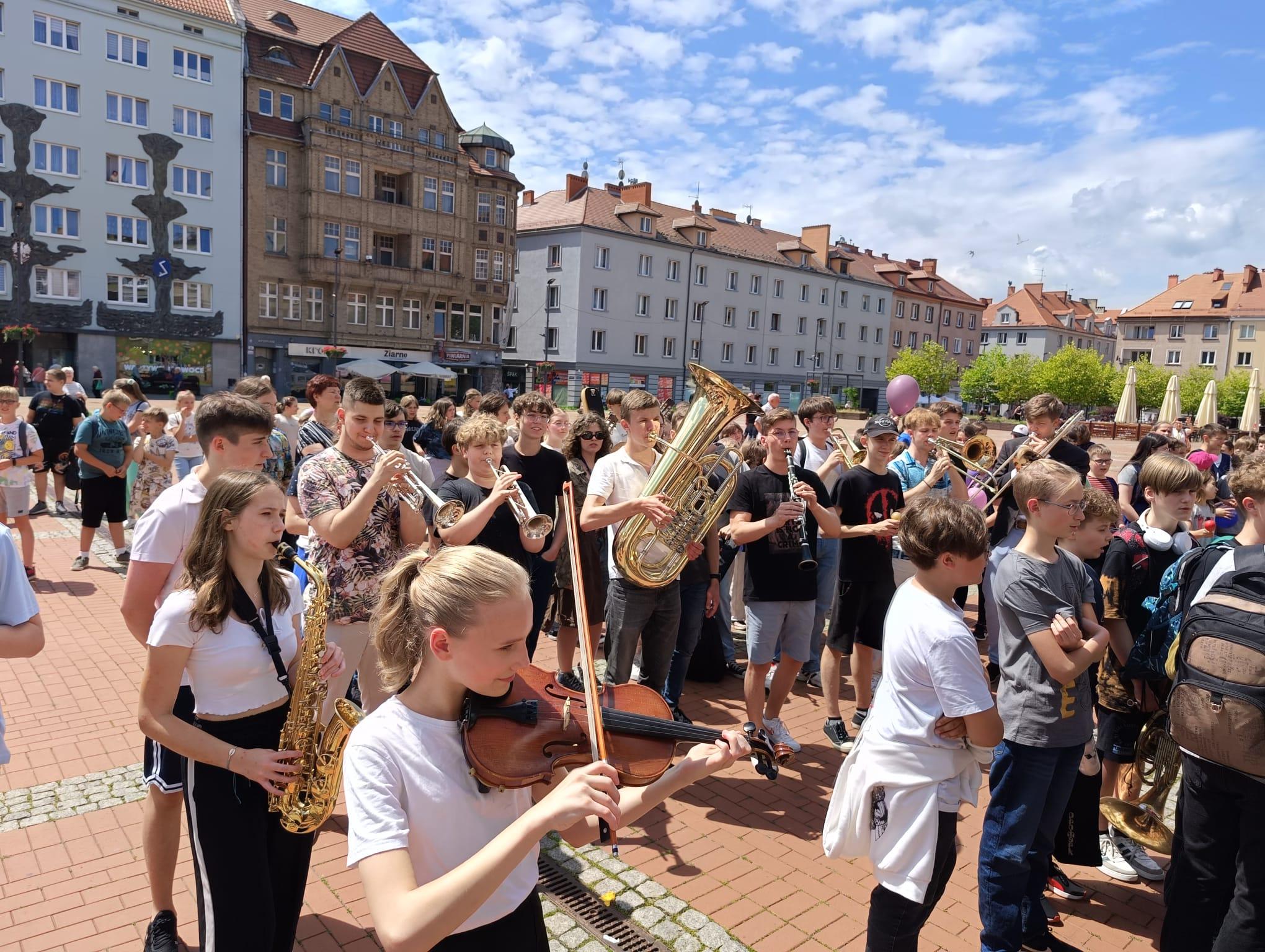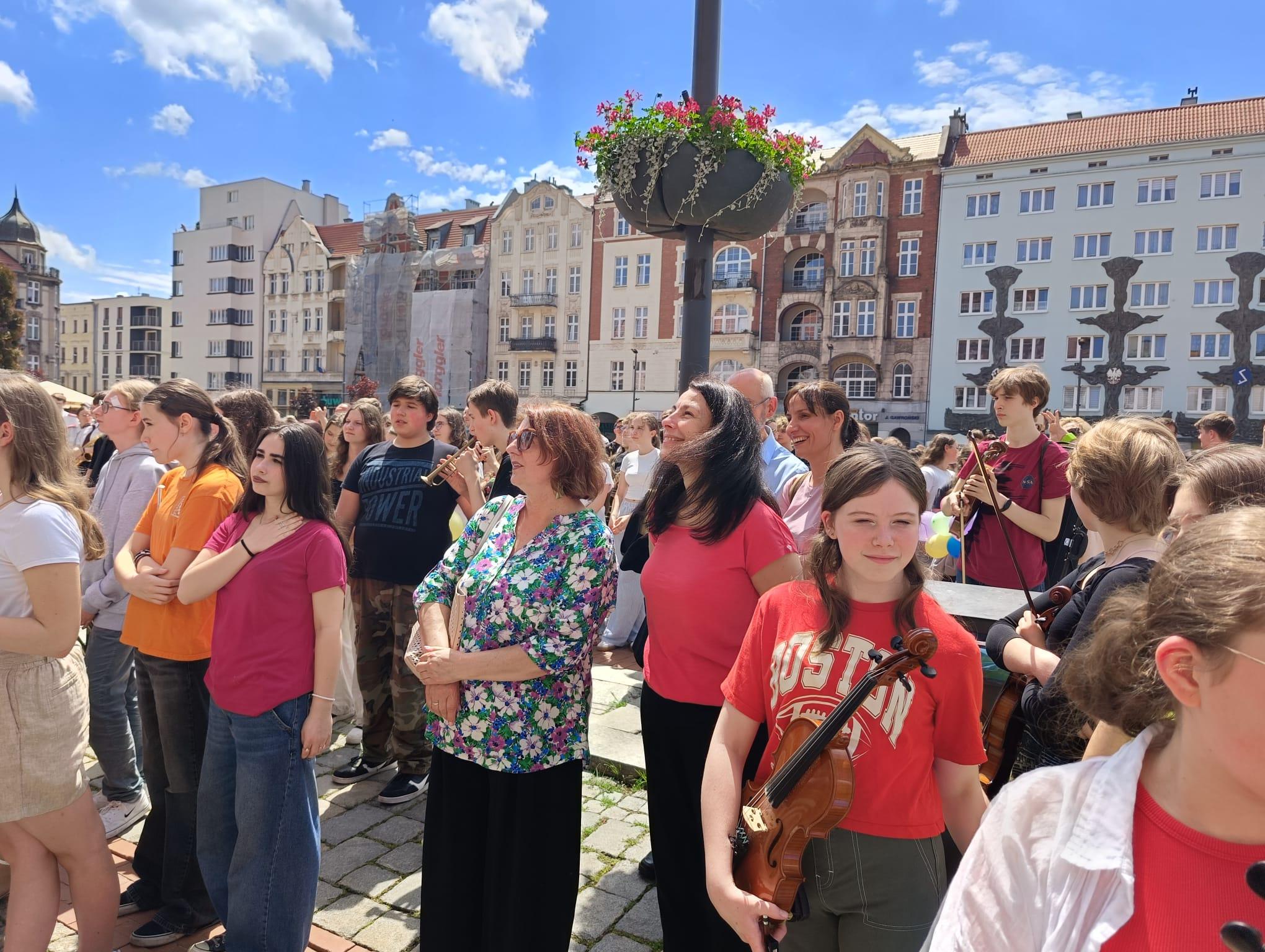 W tym ważnym wydarzeniu wzięli udział młodzi muzycy z bytomskiej szkoły. Licznie zgromadzeni uczniowie odegrali na swoich instrumentach muzyczne życzenia dla miasta.