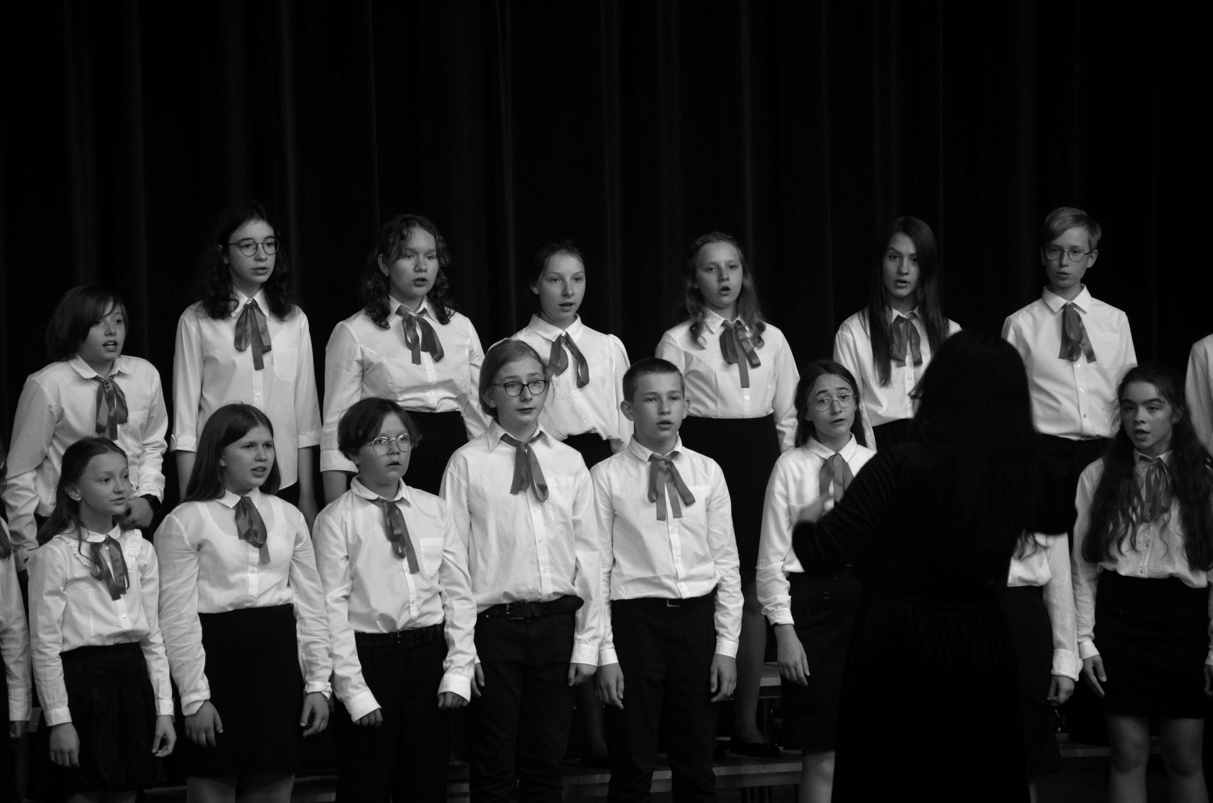 Zespoły przygotowane przez dyrygentów panią Agnieszkę Piasecką – Orlow i pana Dariusza Nurzyńskiego przedstawiły zróżnicowany repertuar. Obejmował on muzykę religijną oraz hity muzyki rozrywkowej. W czasie prezentacji, obok znanych w literaturze chóralnej utworów, pojawiły się kompozycje nauczyciela szkoły pani Anny Siemińskiej – chór dziecięcy przypomniał „wpadającą w ucho i serce” kompozycję pt. „Perypetie muchy”, a chór żeński dokonał prawykonania części Agnus Dei z „Missa in tempore pestis”. W interpretacji chóru mieszanego zabrzmiały utwory a capella oraz kompozycje z towarzyszeniem fortepianu i grupy instrumentów perkusyjnych. Gromkie brawa wywołała brawurowa prezentacja utworu „La Cucaracha” Javiera Jacinto.