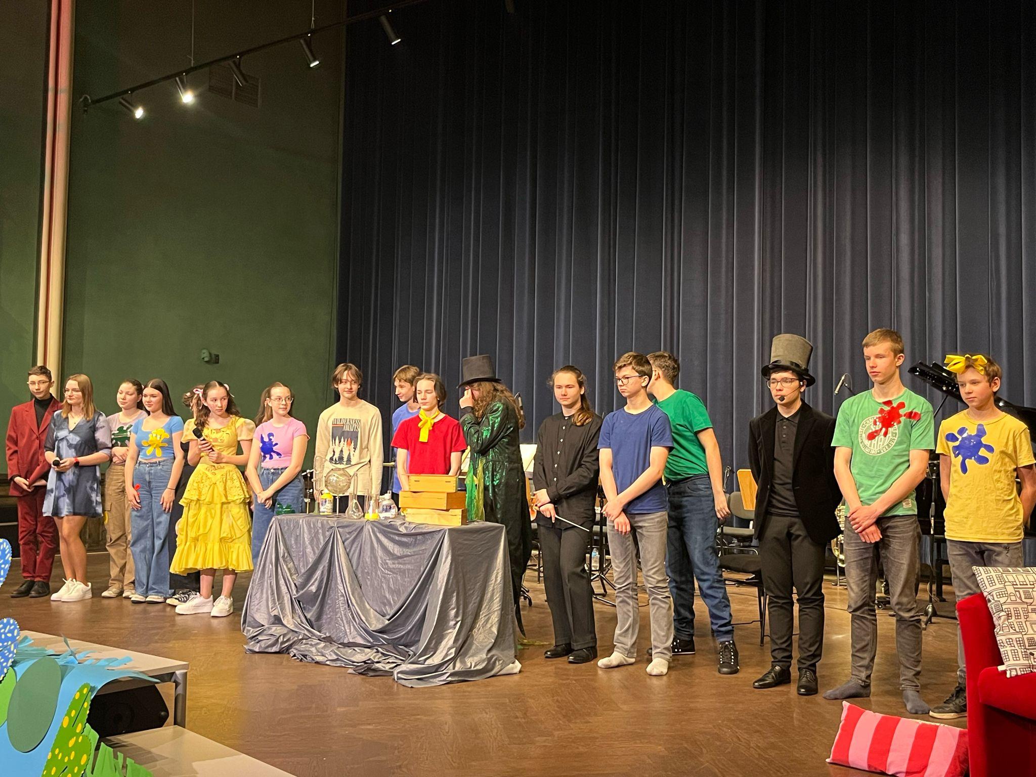 Przedstawienie zostało wystawione w Sali koncertowej naszej szkoły w bajkowej scenerii.