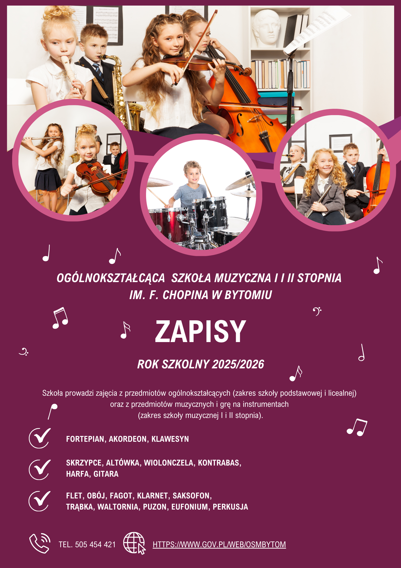 Nie czekaj! Zapisz się już teraz i rozpocznij swoją muzyczną przygodę w Ogólnokształcącej Szkole Muzycznej I i II stopnia im. F. Chopina w Bytomiu!