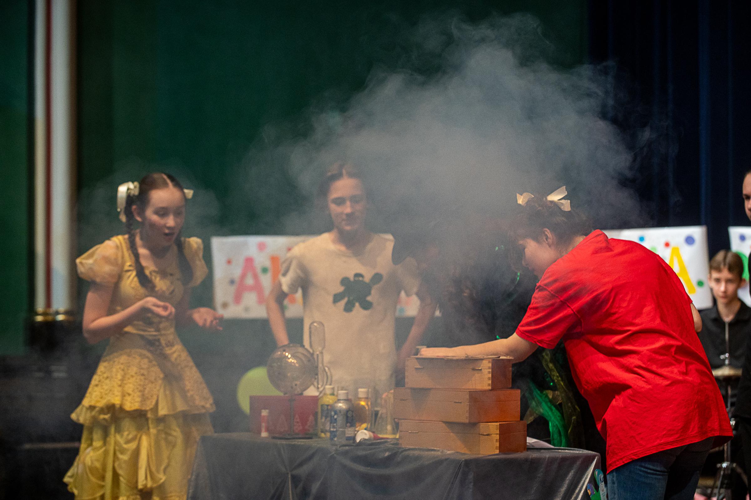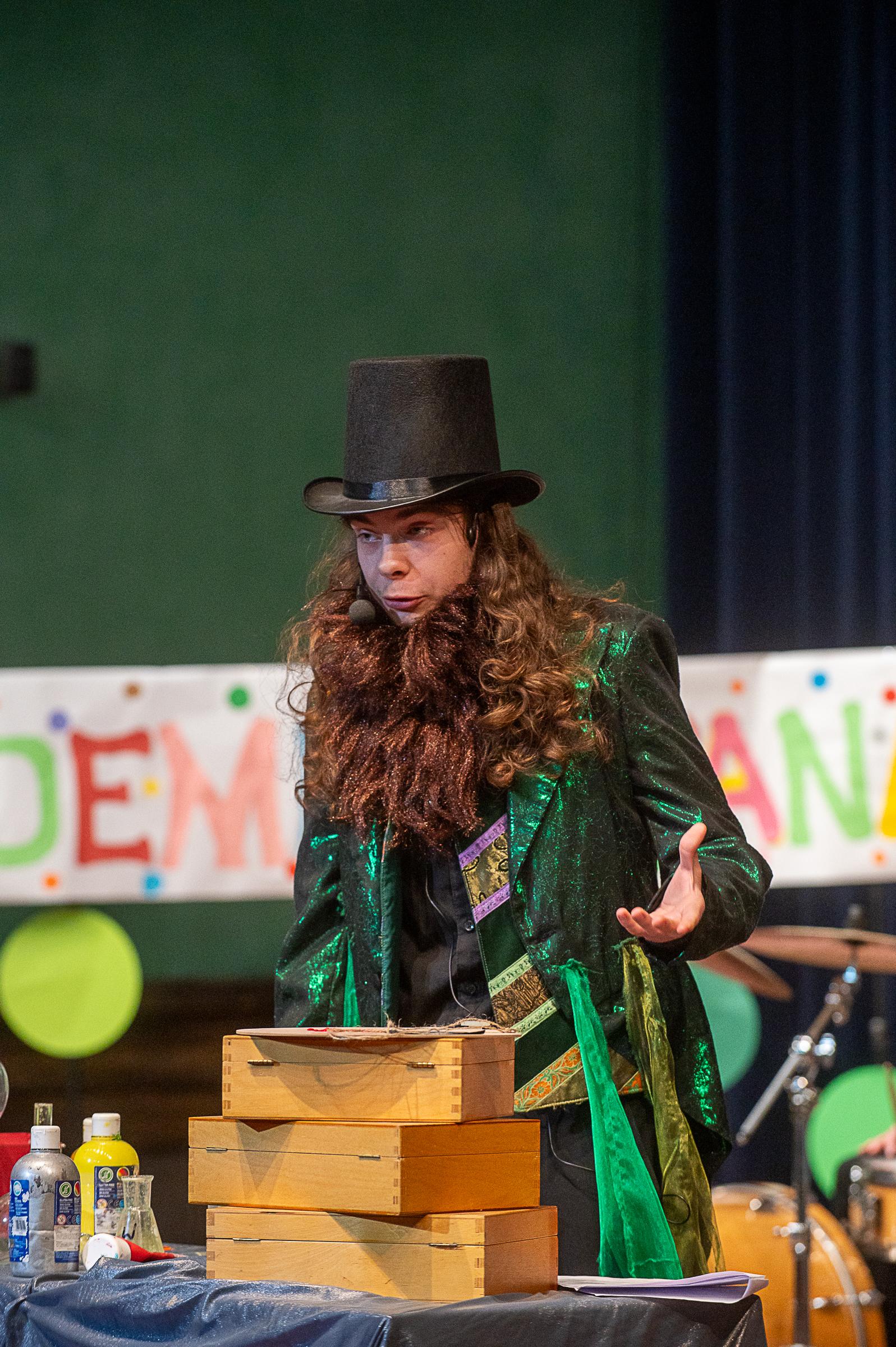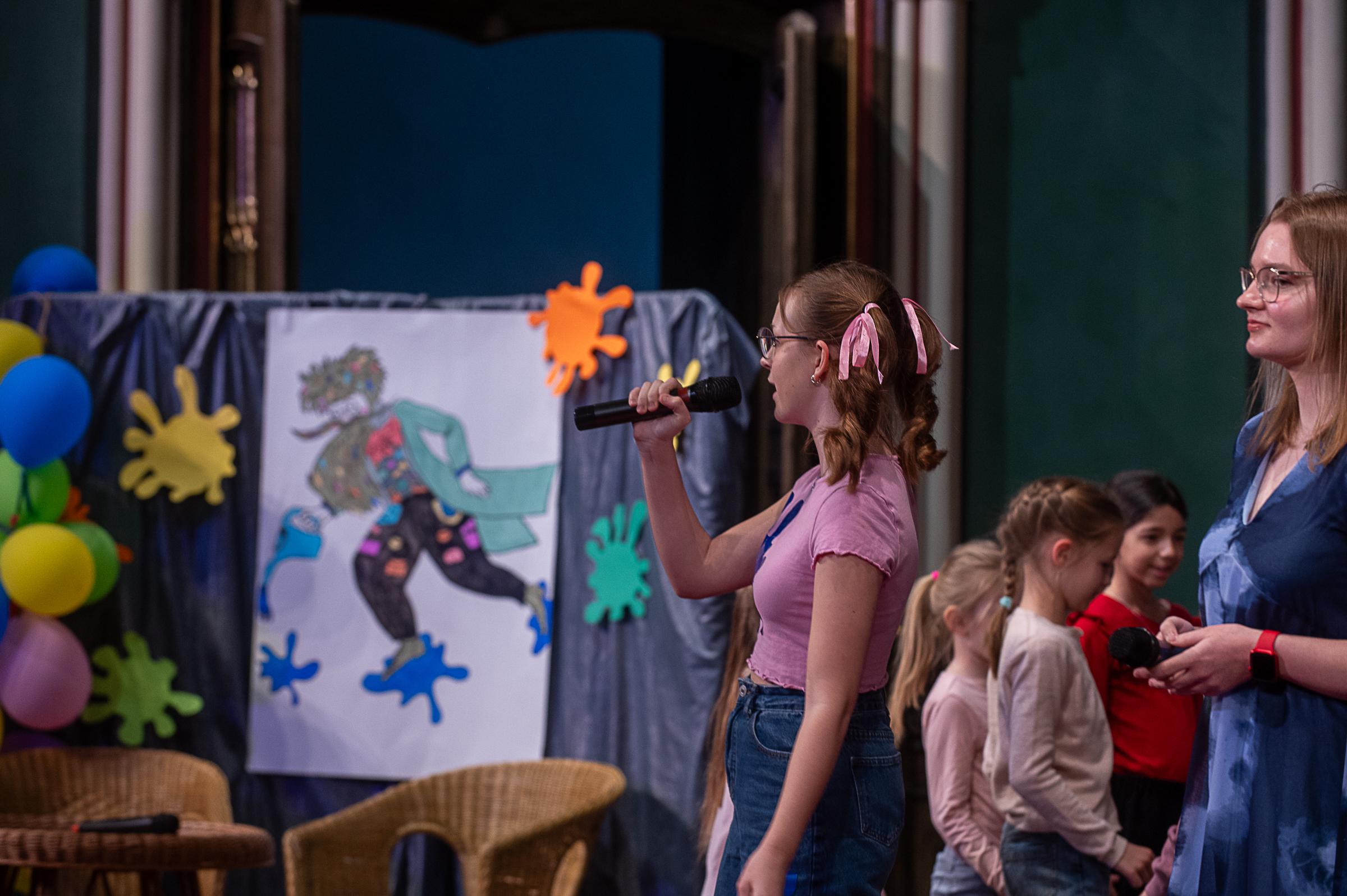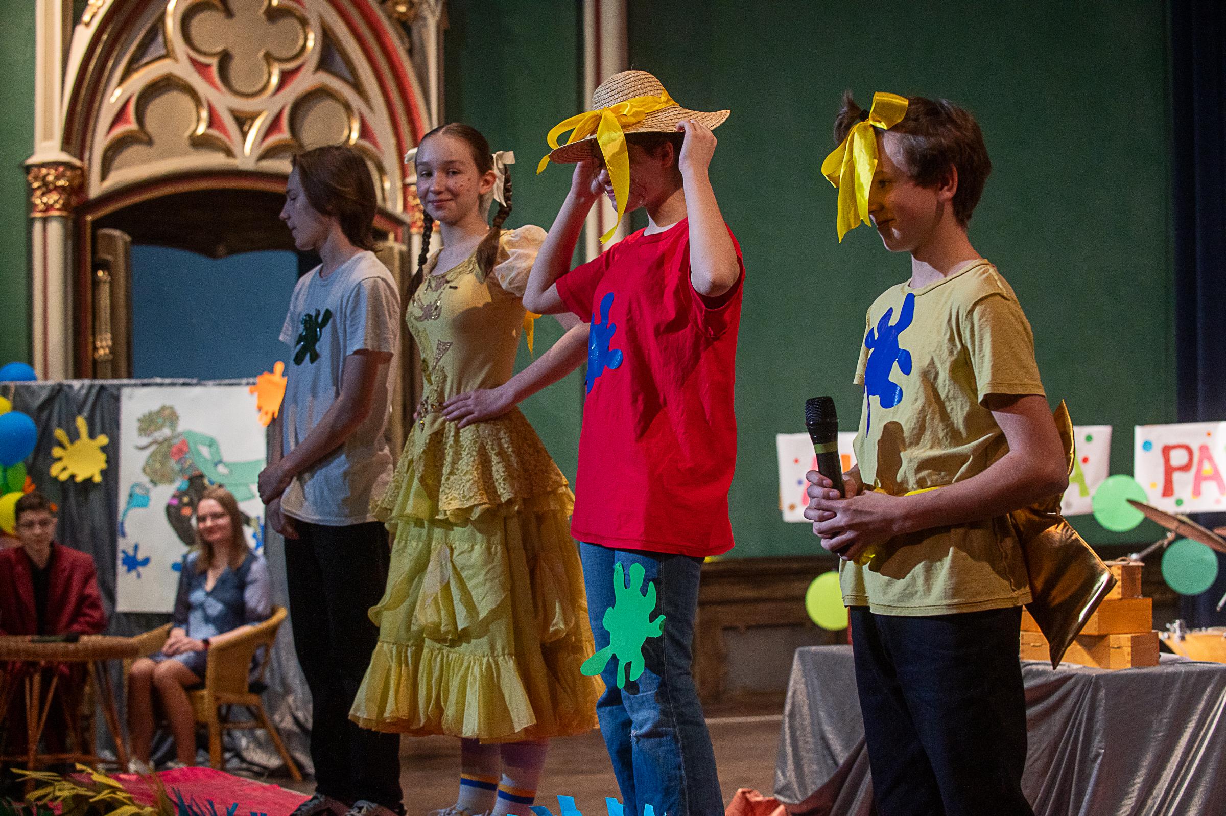Kolejnym punktem programu była muzyczna bajka pt. Akademia Pana Kleksa. Przedstawienie przygotowali uczniowie klasy IIIA/II stopnia pod kierunkiem p. Barbary Wadowskiej i przy aranżacyjnym wsparciu p. Anny Siemińskiej i p. Łukasza Szmajducha. Na scenie zobaczyliśmy niezwykłe eksperymenty, piękną dekorację i kostiumy. Było mnóstwo muzyki i wspaniała gra aktorska odtwórców głównych ról – Małgosi Szmajduch i Feliksa Misiorka. Wszystkim gościom przedstawienie bardzo się spodobało i nagrodzone zostało wielkimi oklaskami.