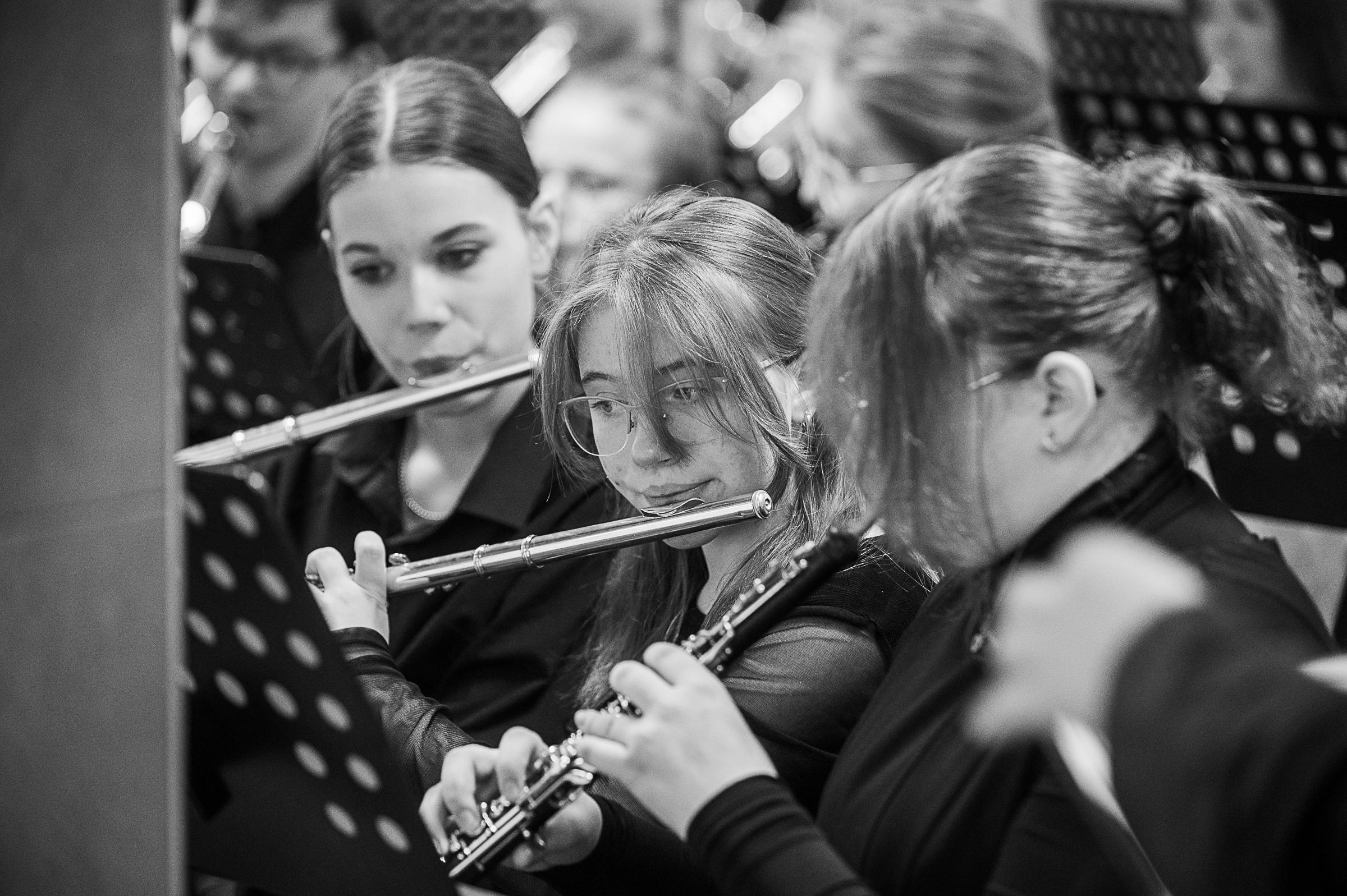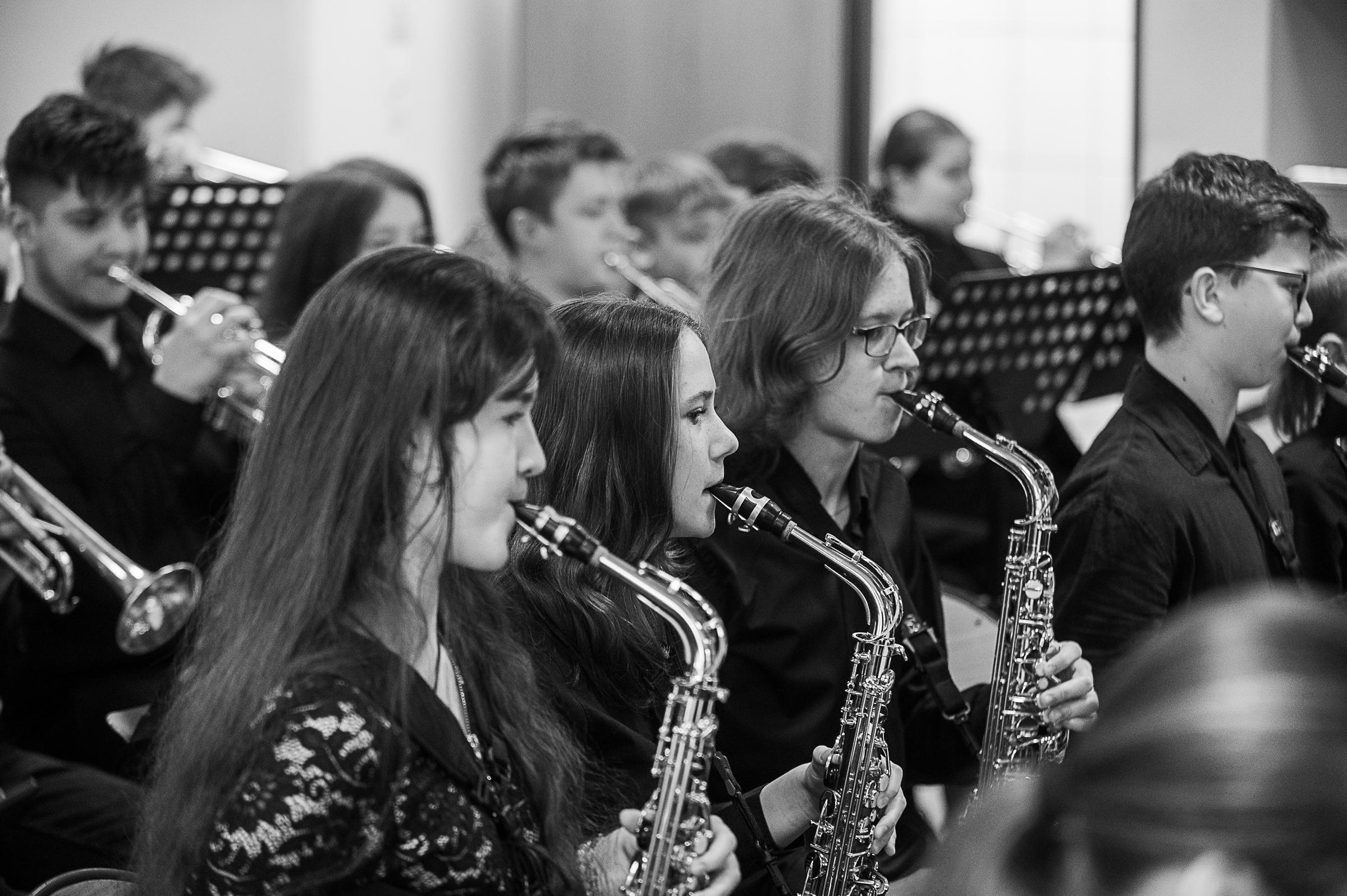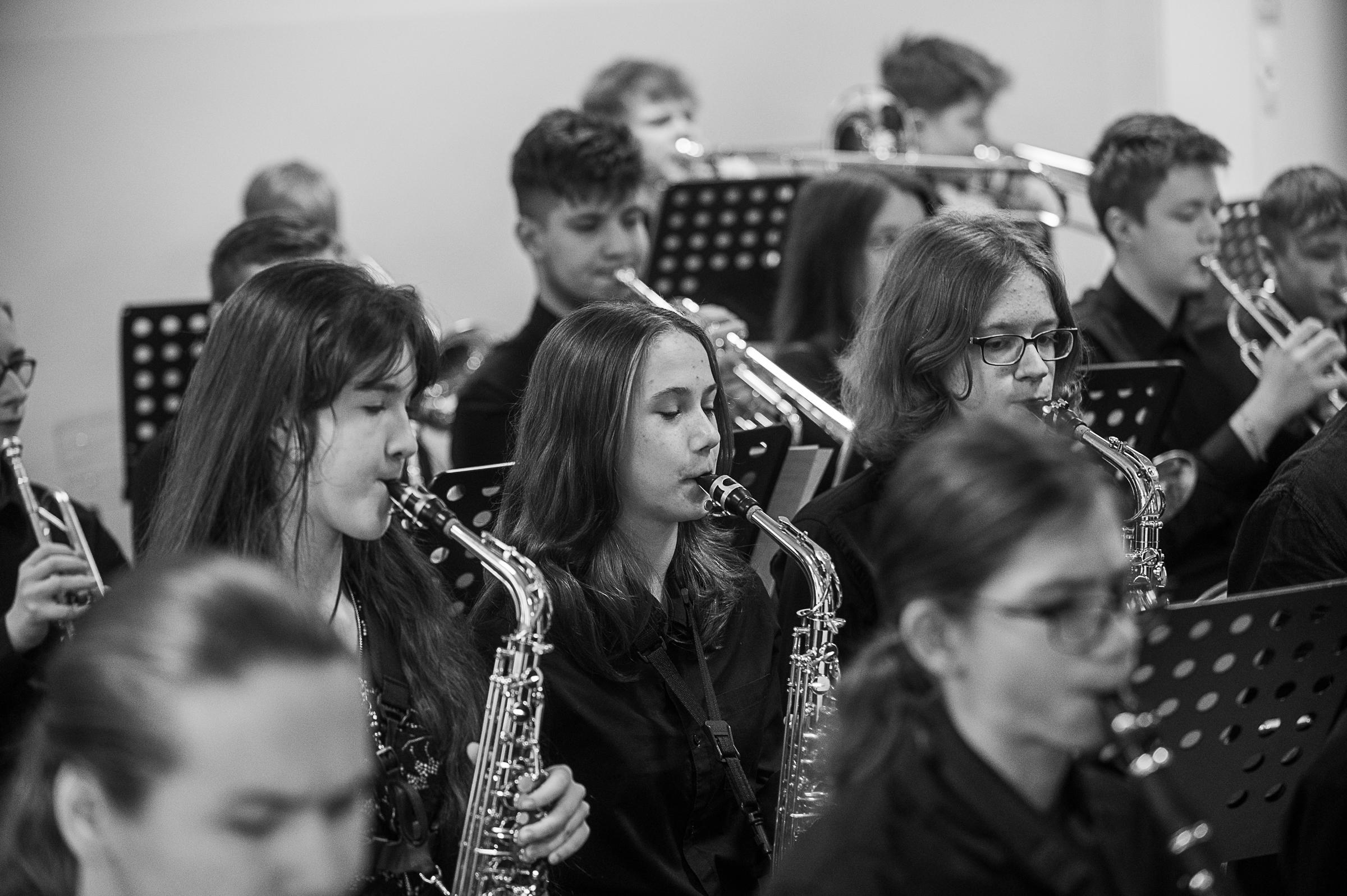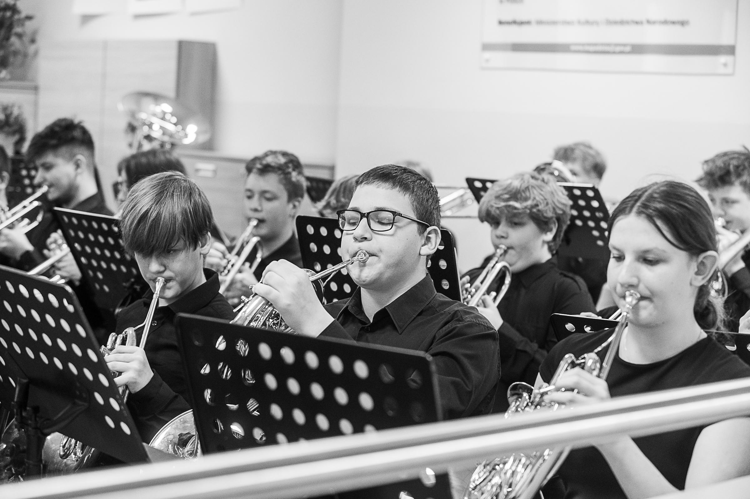W sobotę 20 kwietnia dźwięki instrumentów dętych zaprosiły gości do wizyty w naszej szkole. Niezwykłe wydarzenie otworzył występ orkiestry dętej pod kierownictwem p. Artura Kulki, która zaprezentowała krótki program muzyczny. Instrumentalistom towarzyszyły solistki Julia i Natalia Kulka.