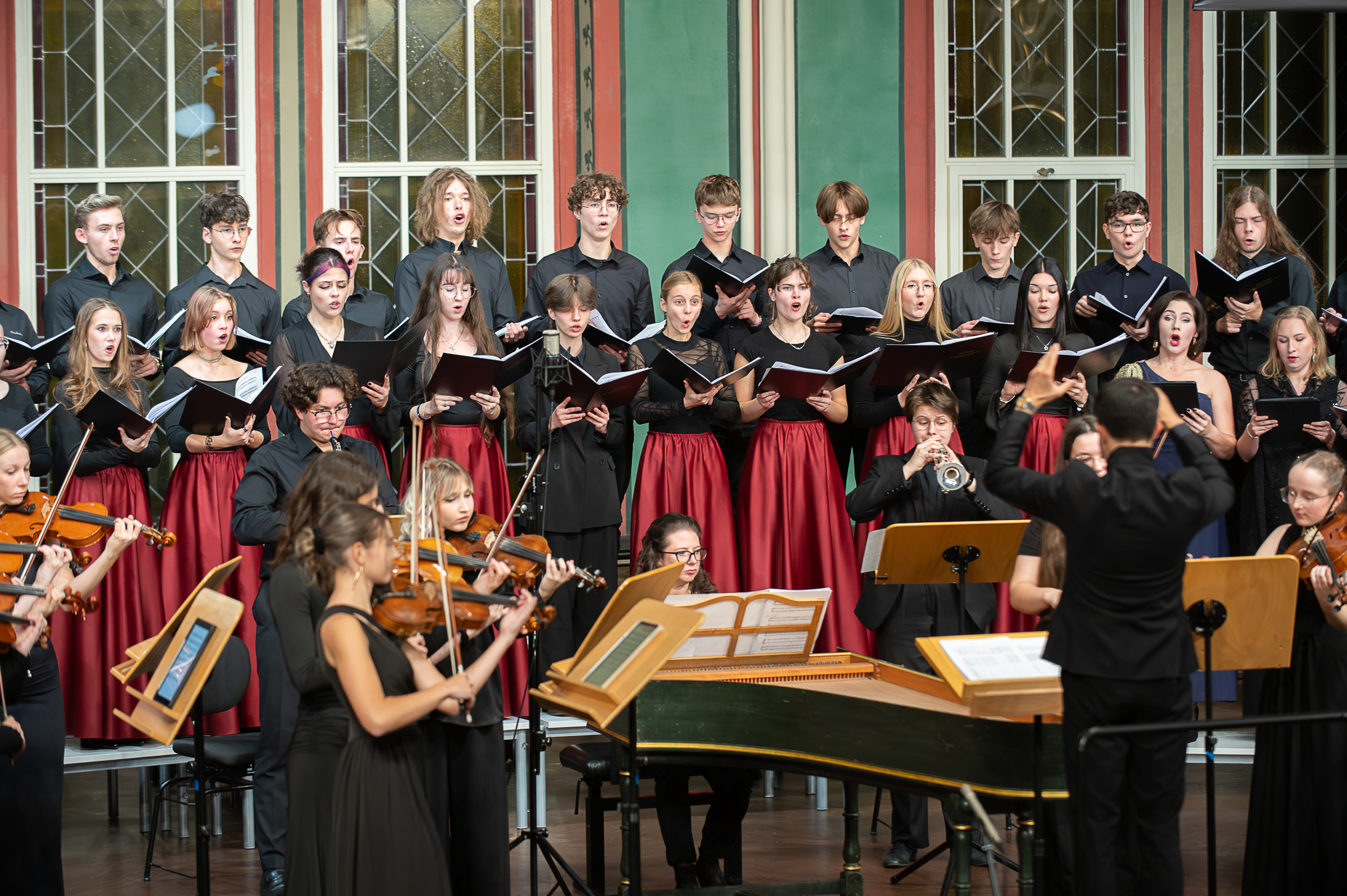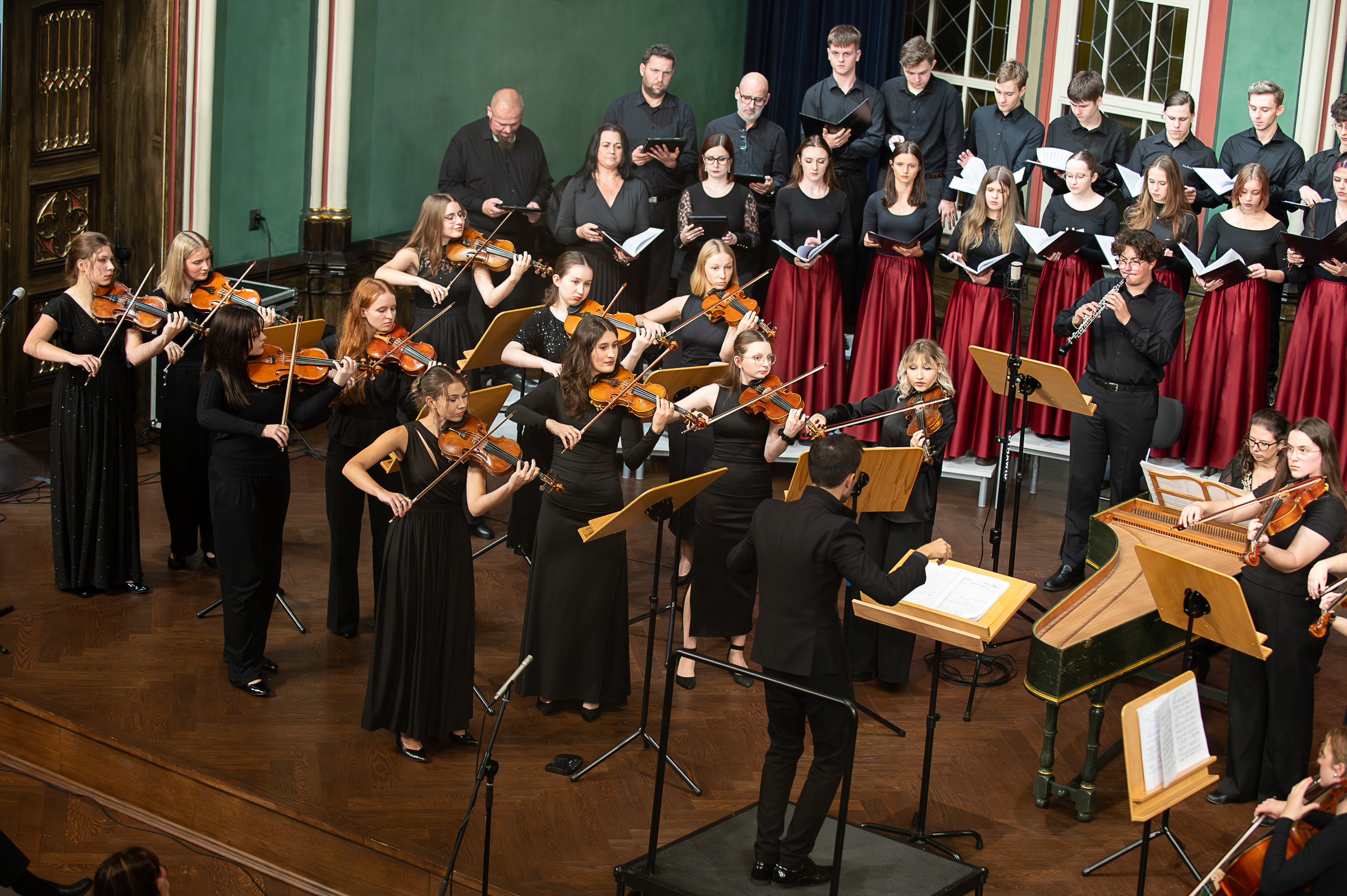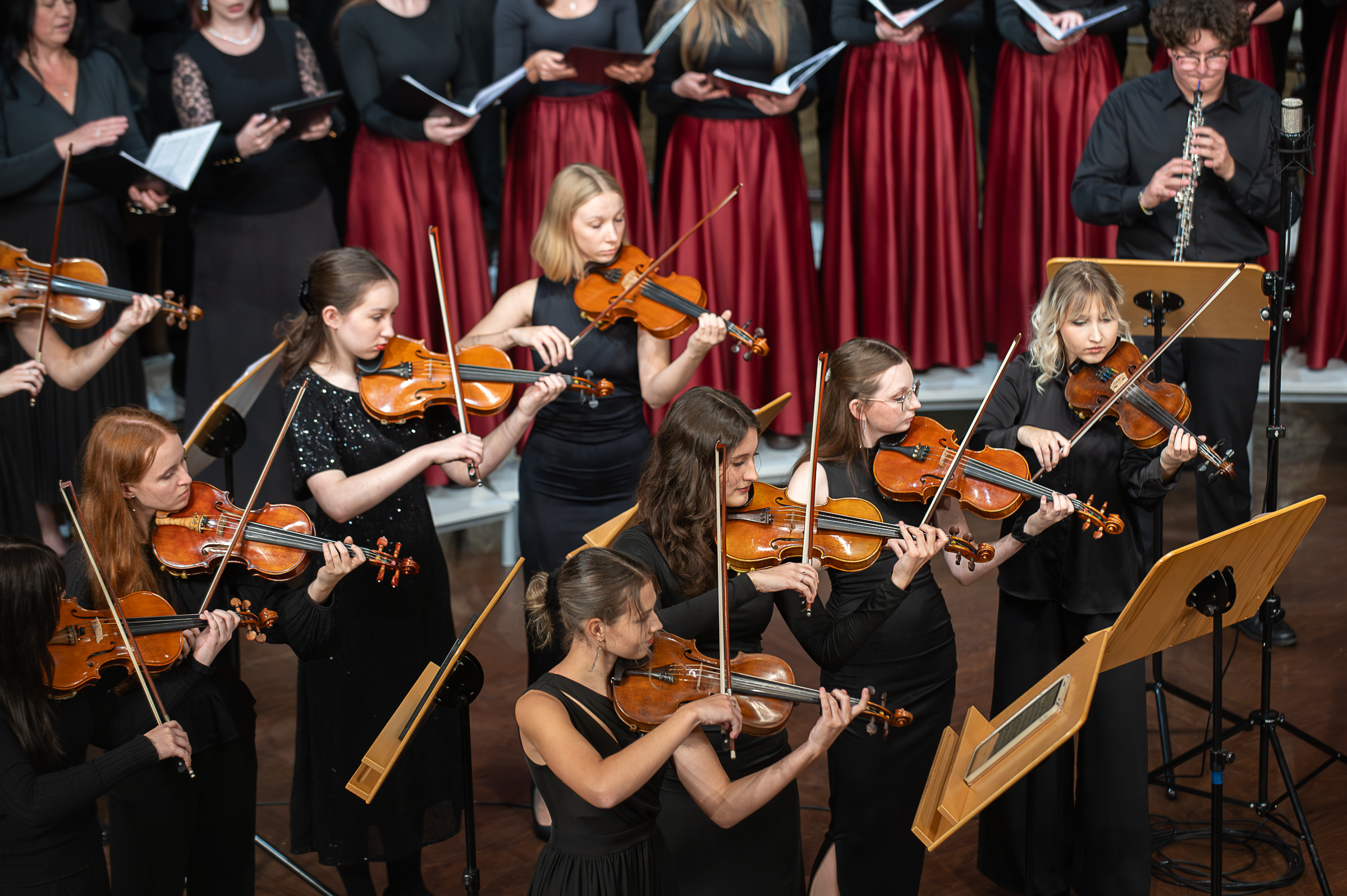 W obu utworach orkiestrę wzbogaciły występy nauczycieli i absolwentów szkoły. W partii klawesynu zaprezentowała się Barbara Pakura, a partie instrumentalne zrealizowali również: Karol Goryl i Emilia Maciuła. Partie solowe w utworze Vivaldiego wykonali uczniowie: Dobrawa Słota (trąbka) i Piotr Cieśla (obój). Orkiestrę poprowadził Filip Huget, a chór przygotowała Agnieszka Piasecka-Orlow. Słowo o muzyce wygłosiła, a koncert poprowadziła Aleksandra Roterman.