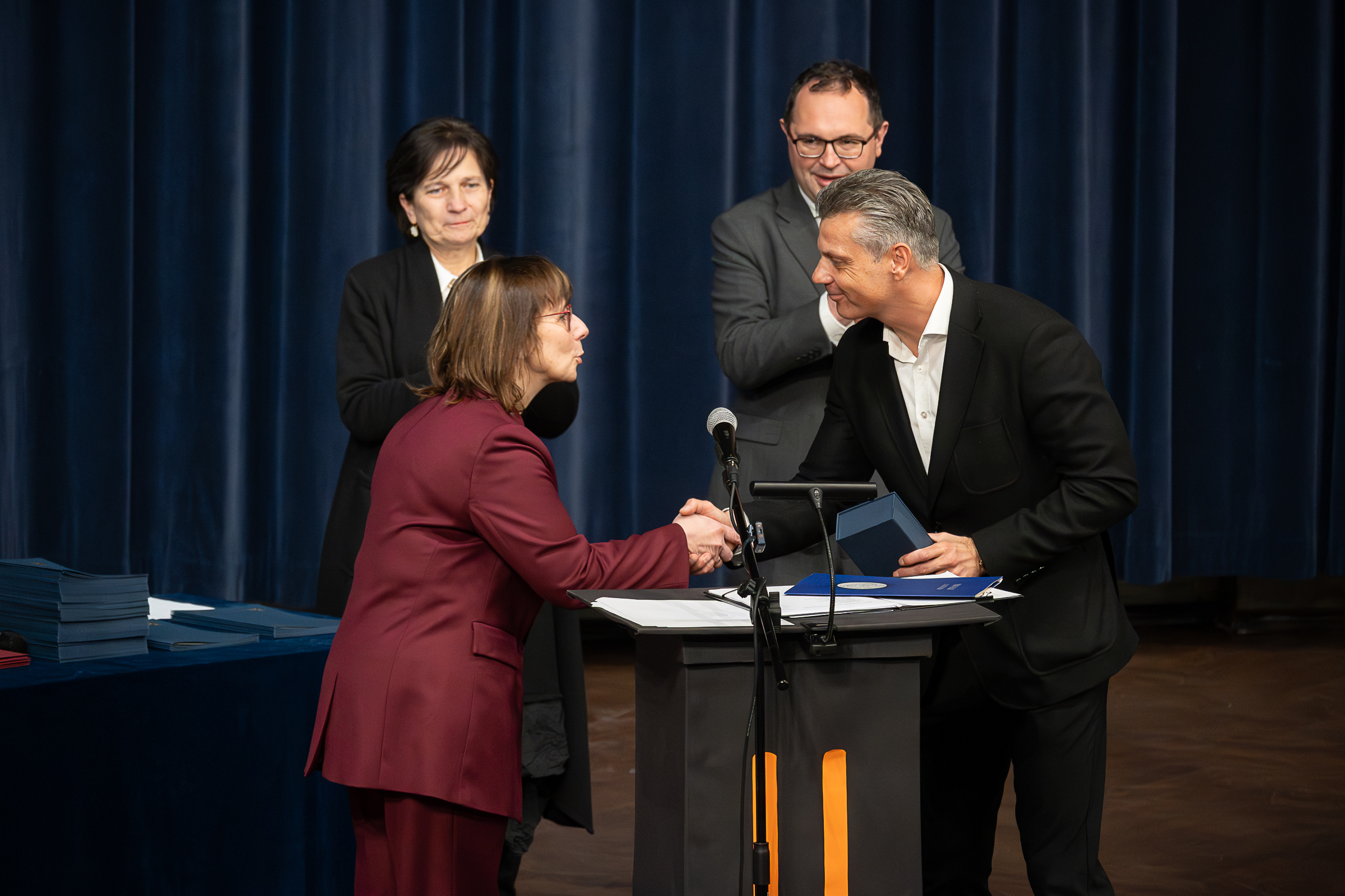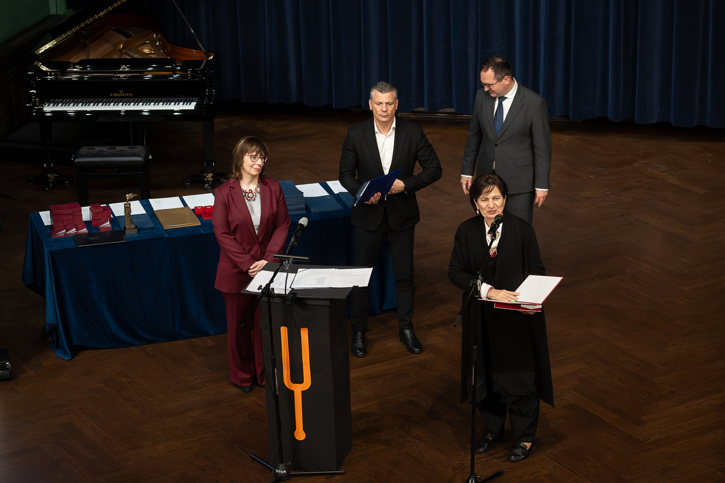 W imieniu Prezydenta RP, II Wicewojewoda Śląski Michał Koparski wręczył zasłużonym pedagogom Medale za Długoletnią Służbę. Nagrodzeni pedagodzy są związani z edukacją i szkołą od wielu już lat, a ich wkład w rozwój młodych muzyków jest ogromy.