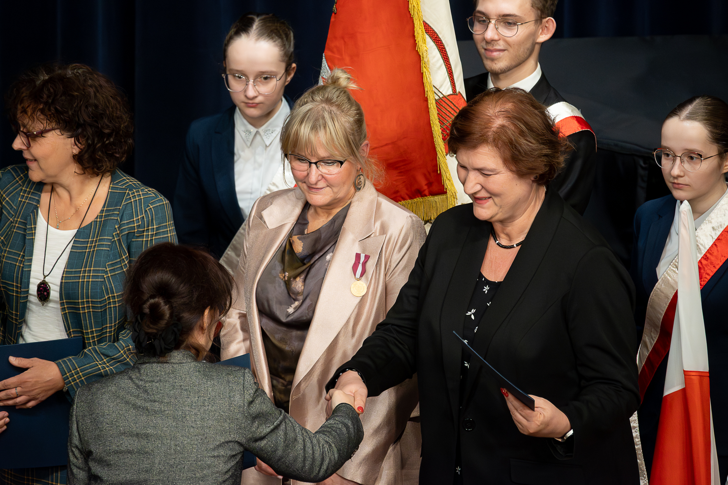 Podczas uroczystości wręczono pracownikom szkoły odznaczenia i nagrody – uhonorowano zarówno nauczycieli, jak i przedstawicieli administracji oraz obsługi. Ich wieloletnia praca, oddanie i profesjonalizm zostały nagrodzone licznymi wyróżnieniami.