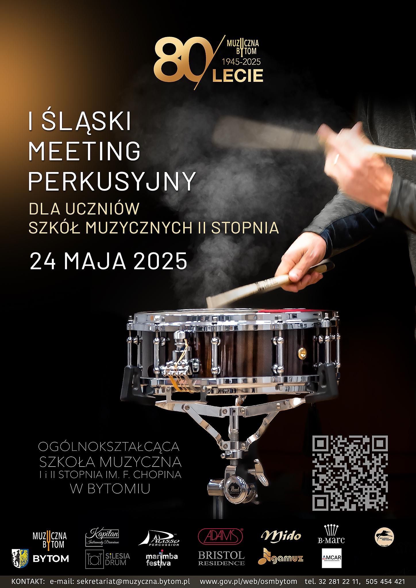 Ze względu na duże zainteresowanie wydarzeniem, organizatorzy postanowili zmienić zasięg I Śląskiego Meetingu Perkusyjnego na OGÓLNOPOLSKI. Zapraszamy do udziału uczniów klas perkusji z całego kraju. Meeting odbędzie się 24 maja 2025 r. w sali koncertowej Ogólnokształcącej Szkoły Muzycznej I i II stopnia im. F. Chopina w Bytomiu.