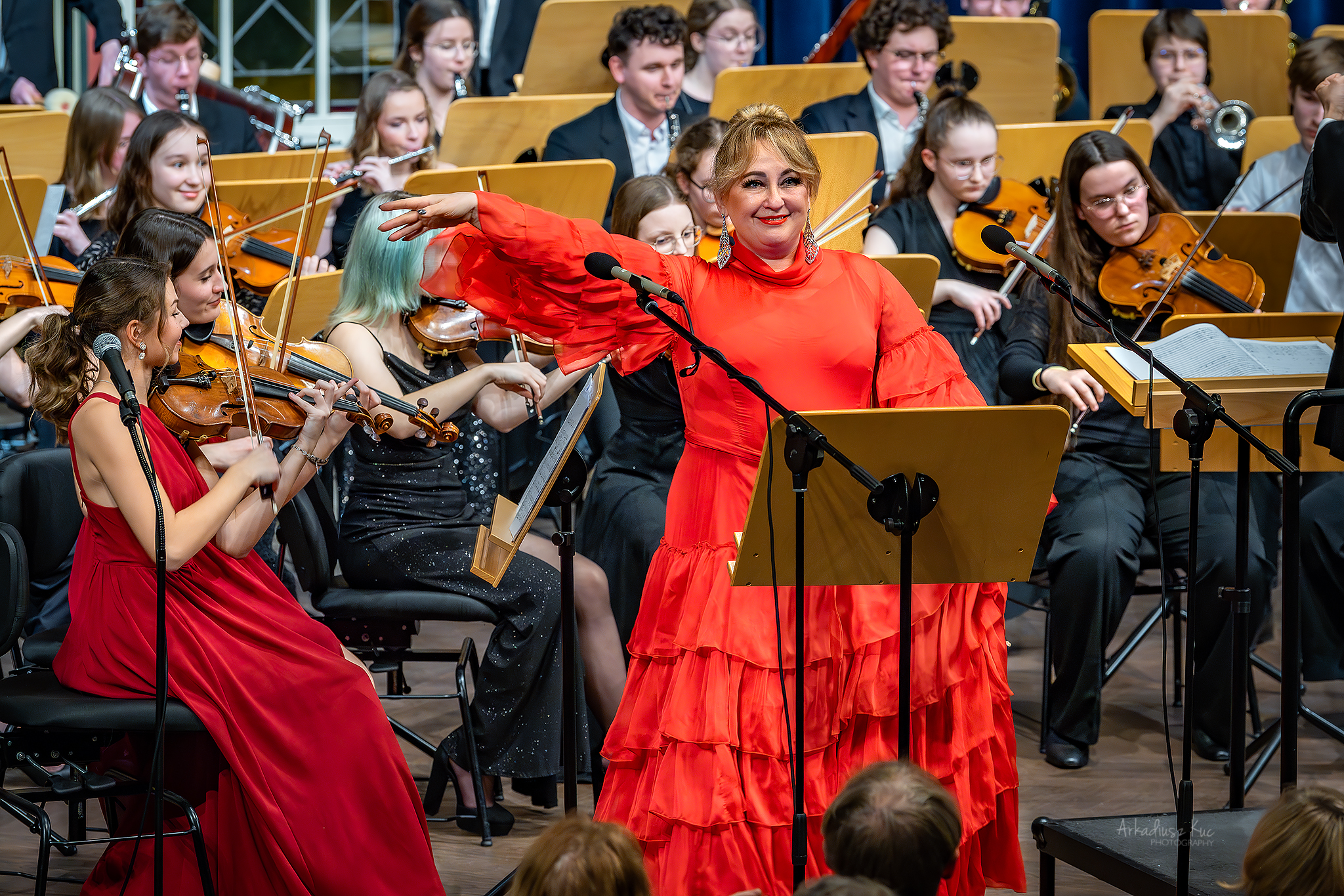 Wielkie podziękowania składamy pani Magdalenie Białeckiej, która poprowadziła koncert w sposób profesjonalny. Nie możemy zapomieć o naszych absolwentach, którzy wsparli orkiestrę: Annie Banaś, Aleksandrze Gajeckiej-Antosiewicz, Barbarze Pakurze, Emilu Trepce i Wiktorii Zorychcie. Ich zaangażowanie i wsparcie były nieocenione.