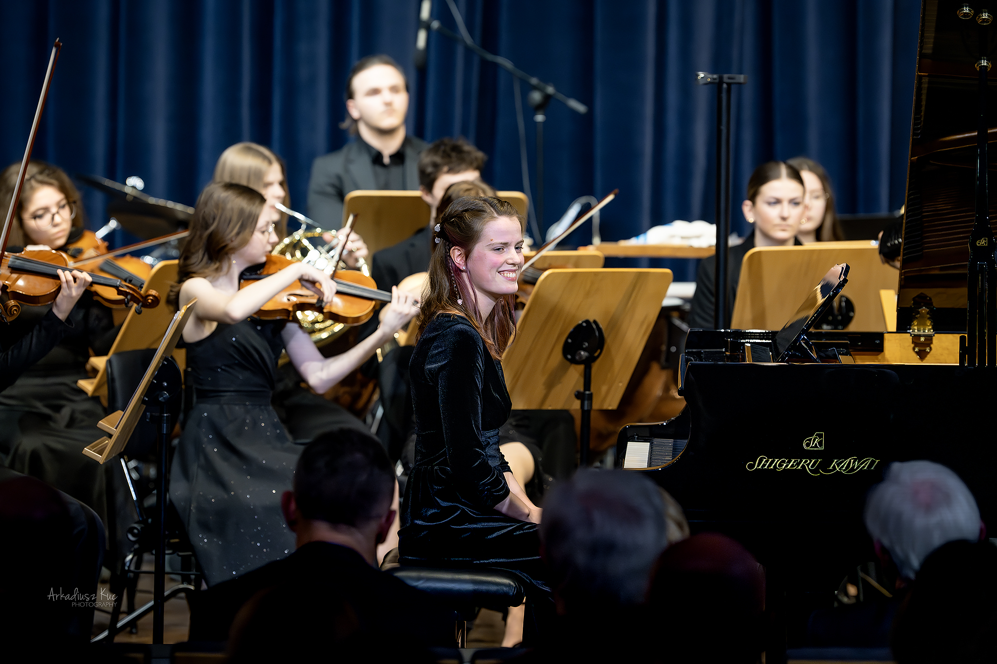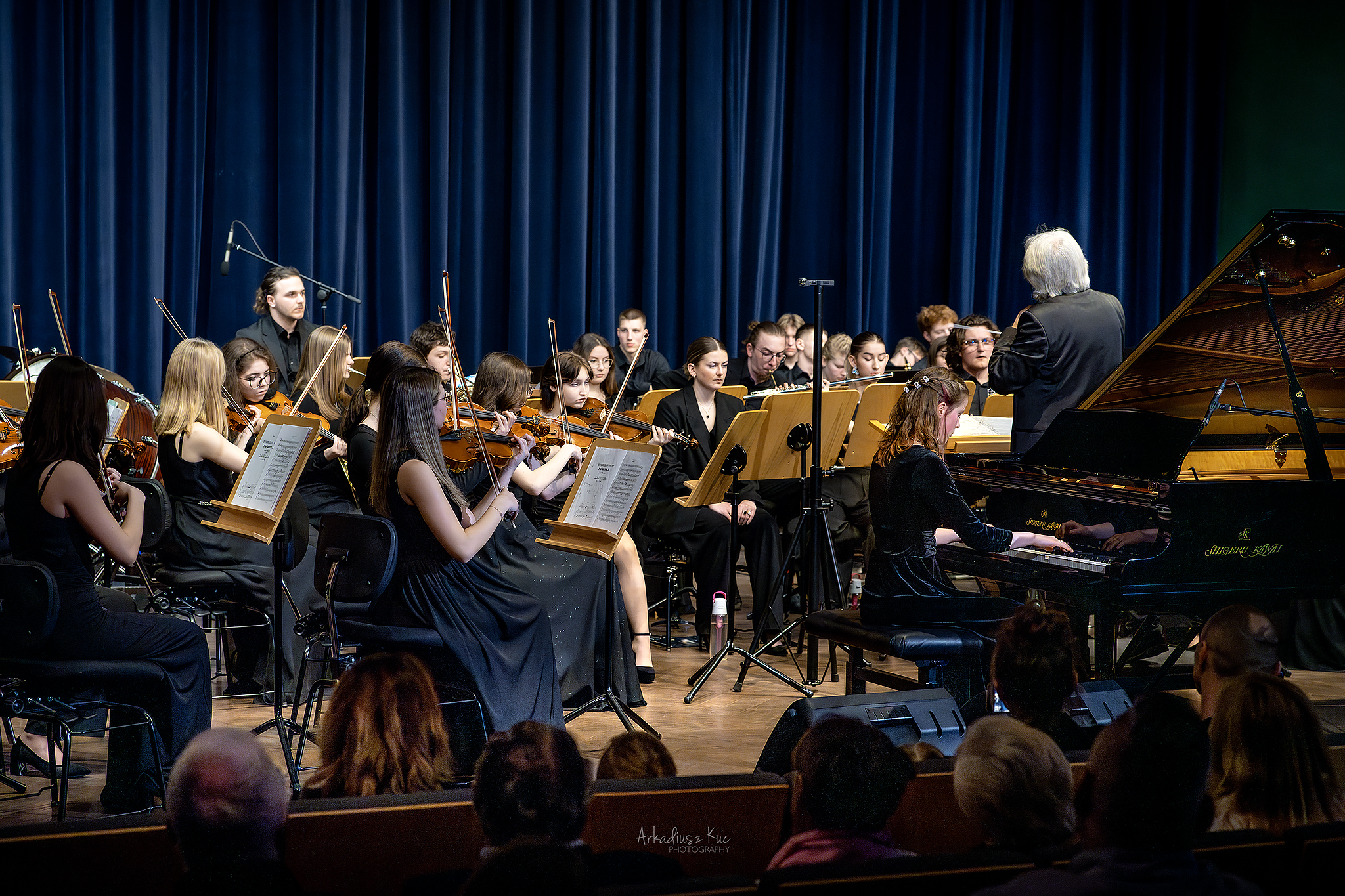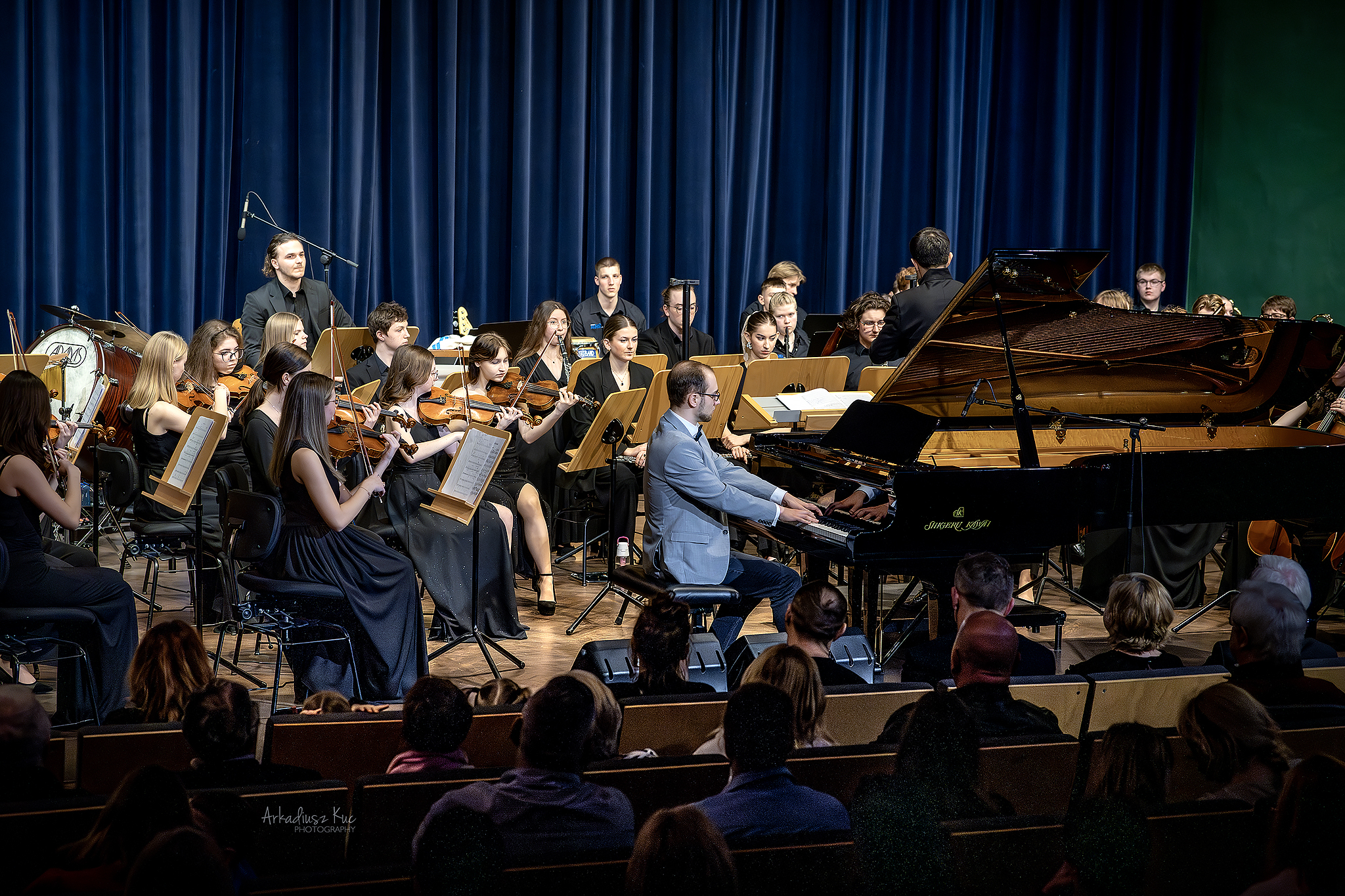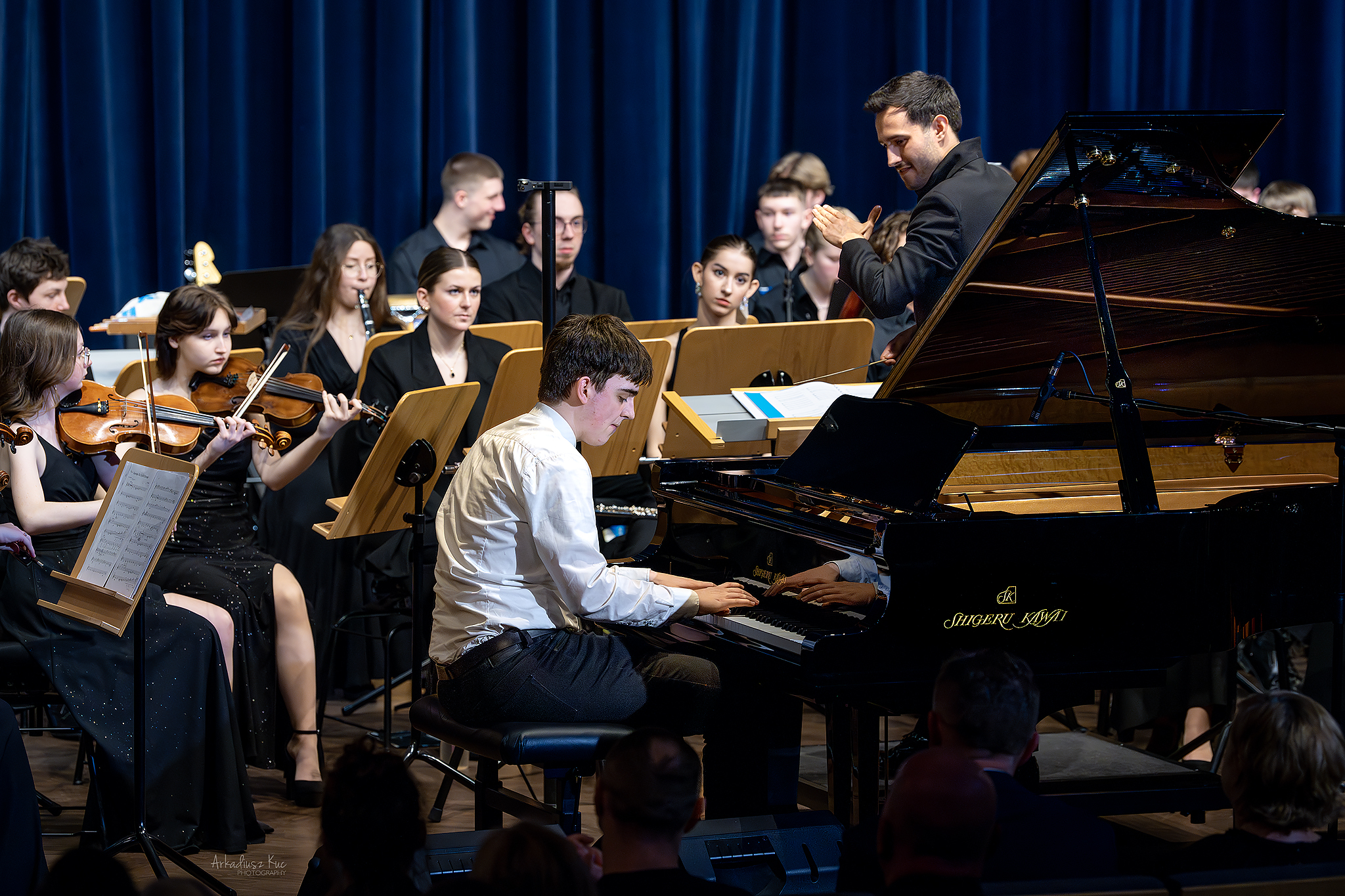 Na piątkowym koncercie zabrzmiały kompozycje z repertuaru muzyki poważnej jak Preludium cis moll S. Rachmaninowa, Impromptu Es dur F. Schuberta oraz II cz. Koncertu fortepianowego A dur W. A. Mozarta. Solistami byli uczniowie prywatnej szkoły muzycznej z Erkelenz uczący się pod kierunkiem J. Paczyny, który był jednym z inicjatorów projektu. Na scenie zabrzmiały również standardy jazzowe w wykonaniu Big Bandu z Cusanus Gymnasium. Naszą szkołę reprezentowali Natalia Łyszczkowska z klasy wiolonczeli p. Beaty Krzanowskiej w brawurowo wykonanej Fantazji węgierskiej D. Poppera, trio jazzowe w składzie: Michał Korzeń – fortepian, Kacper Korzeń – kontrabas, gitara basowa oraz Wojciech Kaczmarek – perkusja. Gościnnie wystąpił na ksylofonie uczeń klasy perkusji p. Wojciecha Herzyka - Jakub Strzałka. Całości dopełniła Polska Młodzieżowa Orkiestra Symfoniczna pod dyrekcją Filipa Hugeta. Koncert spotkał się z entuzjastycznym przyjęciem odbiorców liczenie zgromadzonych w sali koncertowej naszej szkoły.
