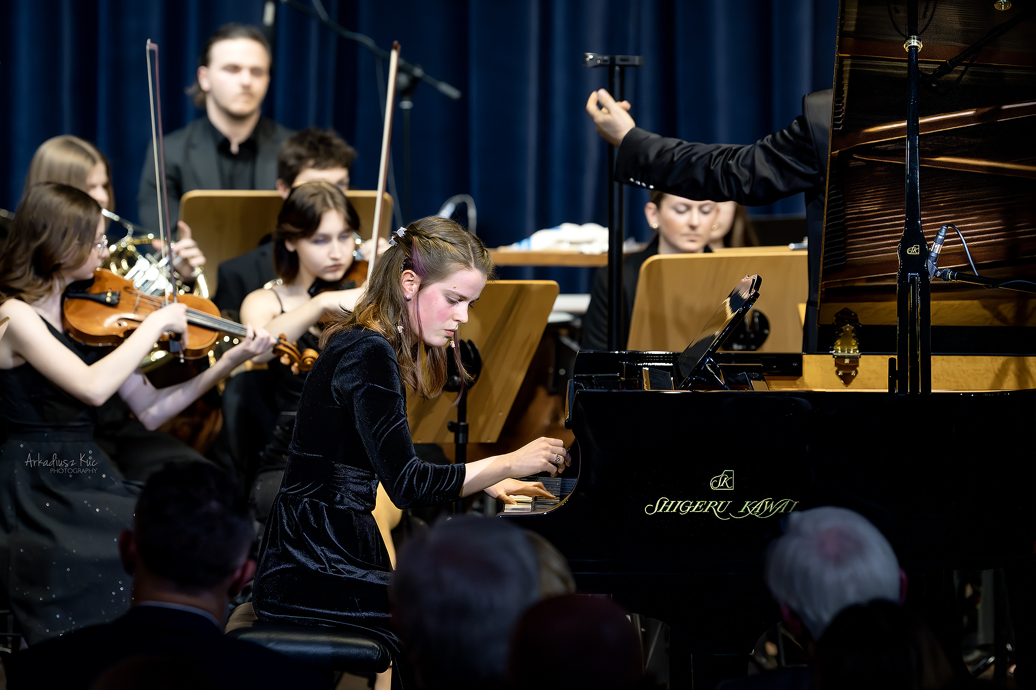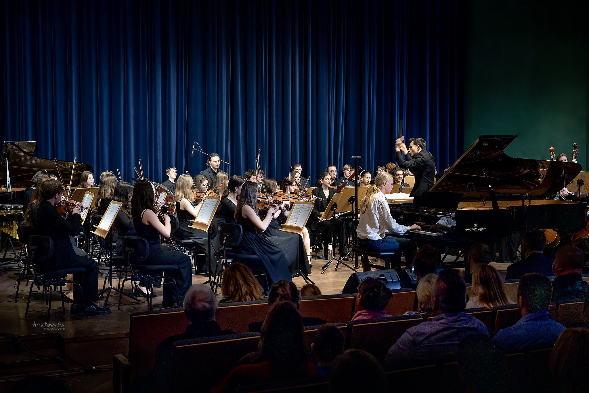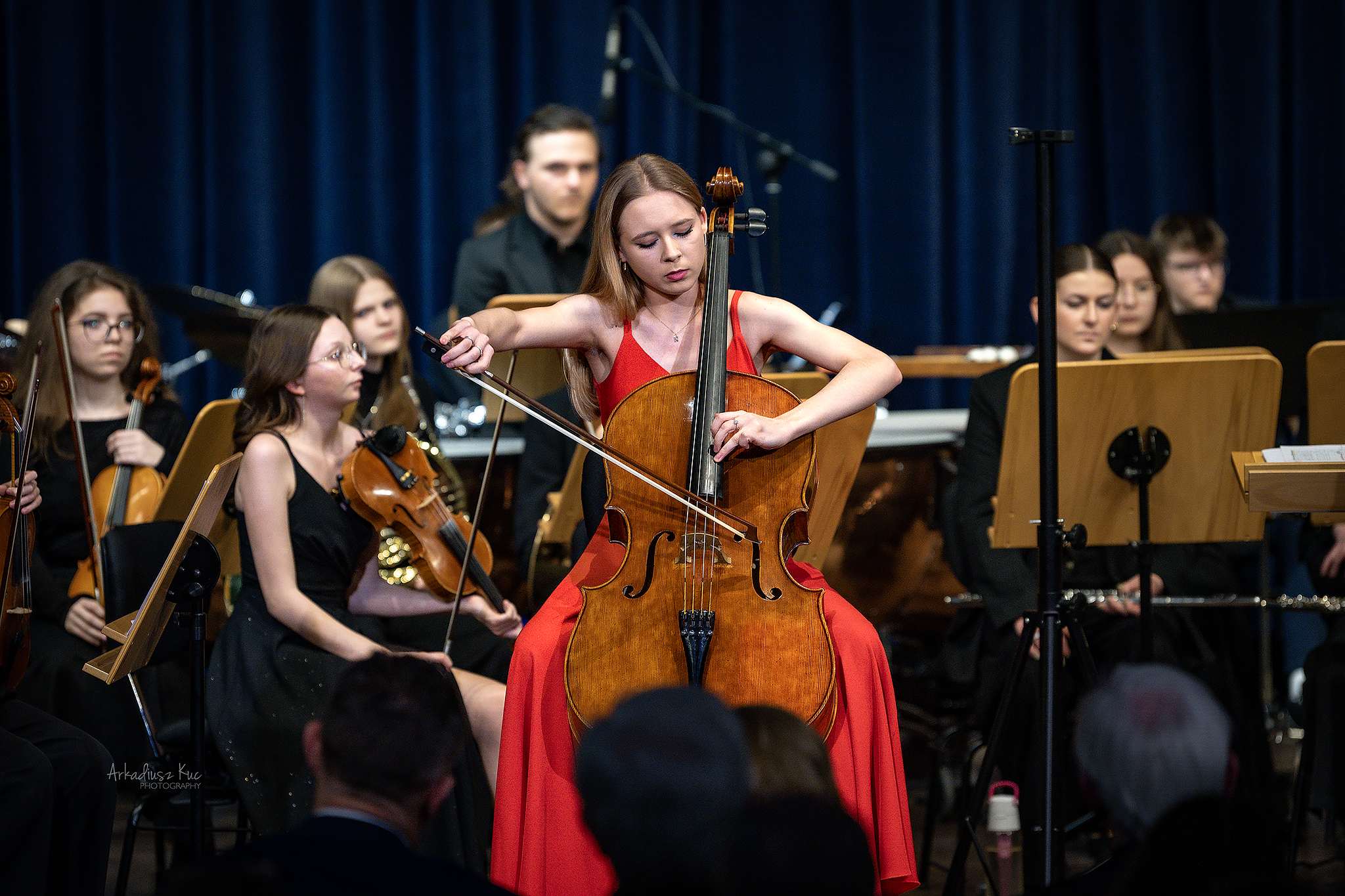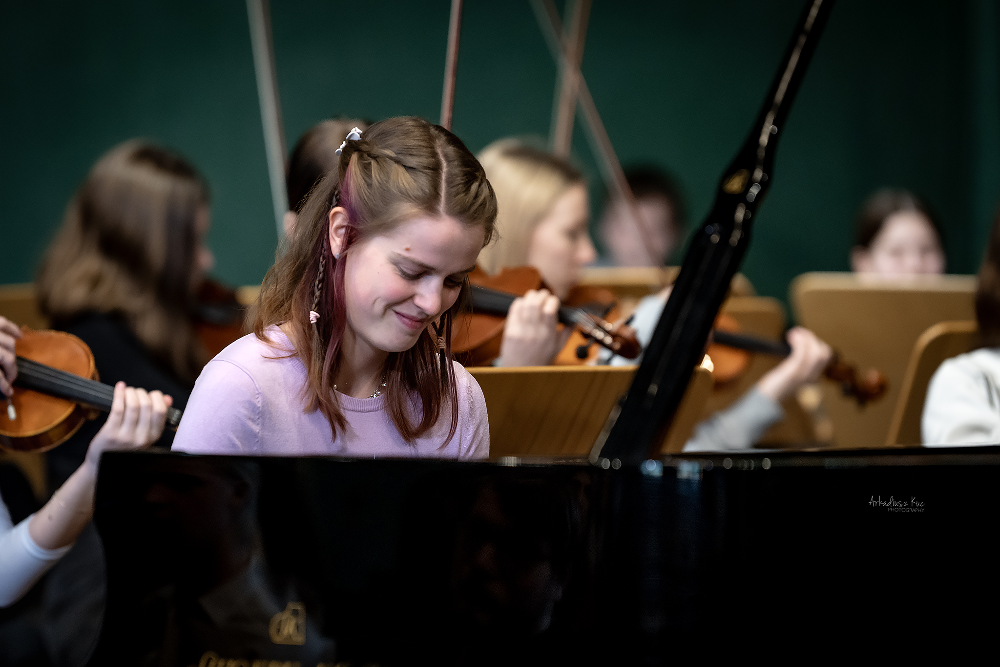 Na piątkowym koncercie zabrzmiały kompozycje z repertuaru muzyki poważnej jak Preludium cis moll S. Rachmaninowa, Impromptu Es dur F. Schuberta oraz II cz. Koncertu fortepianowego A dur W. A. Mozarta. Solistami byli uczniowie prywatnej szkoły muzycznej z Erkelenz uczący się pod kierunkiem J. Paczyny, który był jednym z inicjatorów projektu. Na scenie zabrzmiały również standardy jazzowe w wykonaniu Big Bandu z Cusanus Gymnasium. Naszą szkołę reprezentowali Natalia Łyszczkowska z klasy wiolonczeli p. Beaty Krzanowskiej w brawurowo wykonanej Fantazji węgierskiej D. Poppera, trio jazzowe w składzie: Michał Korzeń – fortepian, Kacper Korzeń – kontrabas, gitara basowa oraz Wojciech Kaczmarek – perkusja. Gościnnie wystąpił na ksylofonie uczeń klasy perkusji p. Wojciecha Herzyka - Jakub Strzałka. Całości dopełniła Polska Młodzieżowa Orkiestra Symfoniczna pod dyrekcją Filipa Hugeta. Koncert spotkał się z entuzjastycznym przyjęciem odbiorców liczenie zgromadzonych w sali koncertowej naszej szkoły.