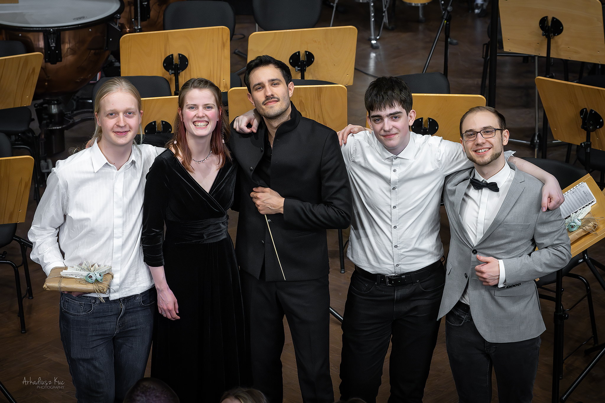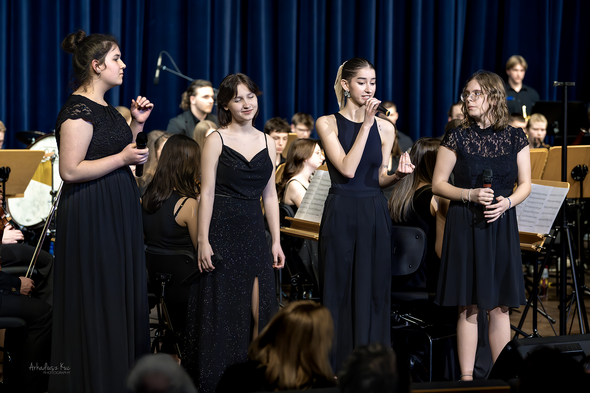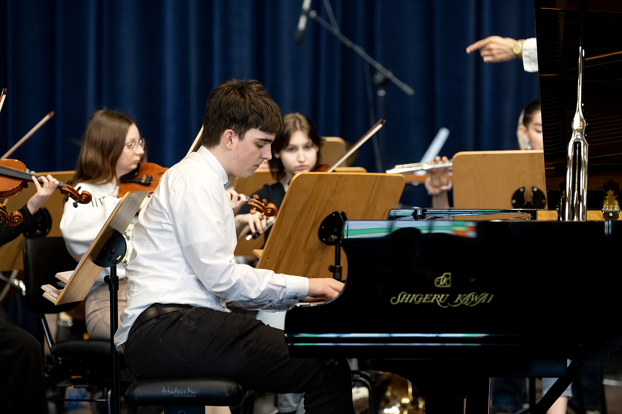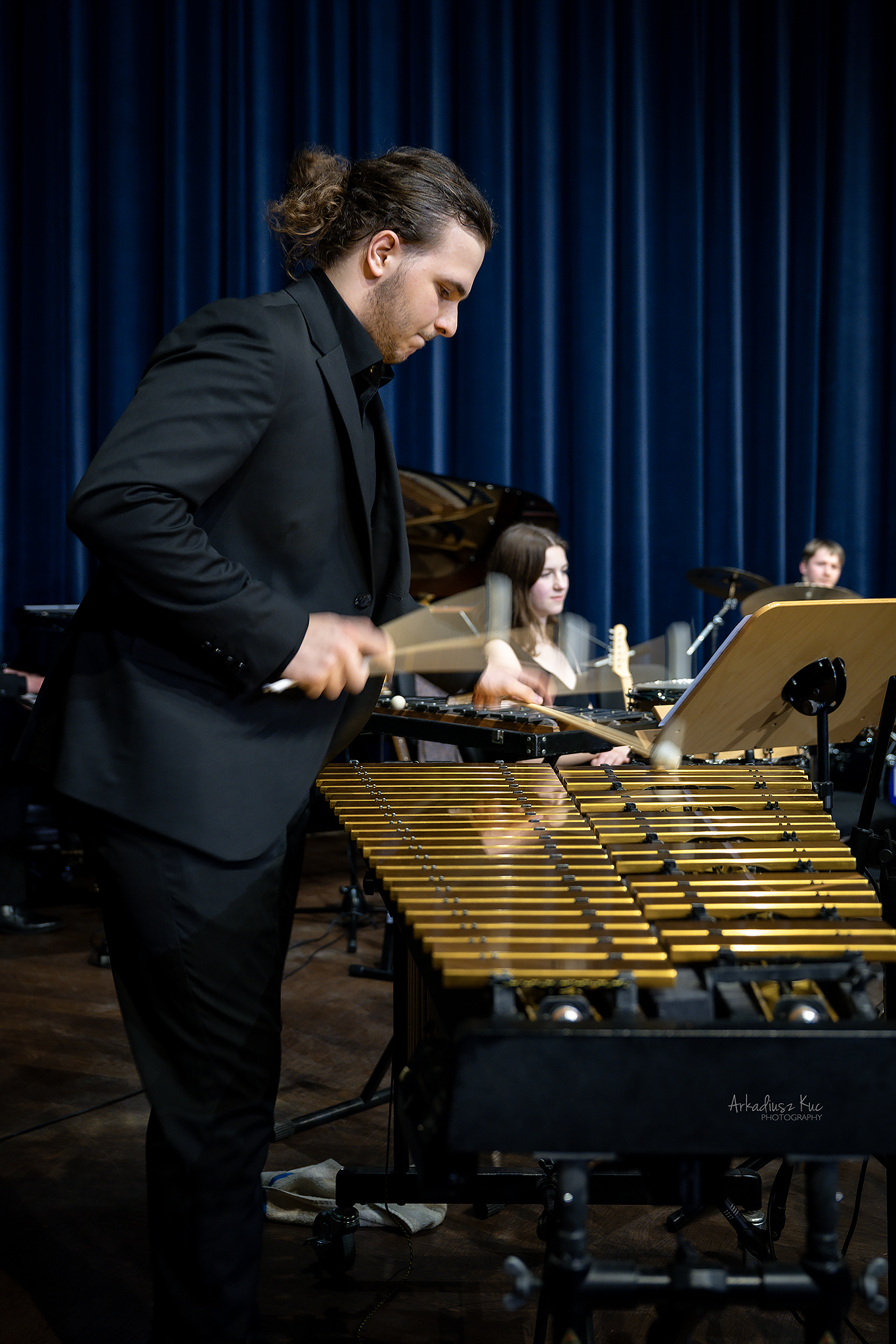Na piątkowym koncercie zabrzmiały kompozycje z repertuaru muzyki poważnej jak Preludium cis moll S. Rachmaninowa, Impromptu Es dur F. Schuberta oraz II cz. Koncertu fortepianowego A dur W. A. Mozarta. Solistami byli uczniowie prywatnej szkoły muzycznej z Erkelenz uczący się pod kierunkiem J. Paczyny, który był jednym z inicjatorów projektu. Na scenie zabrzmiały również standardy jazzowe w wykonaniu Big Bandu z Cusanus Gymnasium. Naszą szkołę reprezentowali Natalia Łyszczkowska z klasy wiolonczeli p. Beaty Krzanowskiej w brawurowo wykonanej Fantazji węgierskiej D. Poppera, trio jazzowe w składzie: Michał Korzeń – fortepian, Kacper Korzeń – kontrabas, gitara basowa oraz Wojciech Kaczmarek – perkusja. Gościnnie wystąpił na ksylofonie uczeń klasy perkusji p. Wojciecha Herzyka - Jakub Strzałka. Całości dopełniła Polska Młodzieżowa Orkiestra Symfoniczna pod dyrekcją Filipa Hugeta. Koncert spotkał się z entuzjastycznym przyjęciem odbiorców liczenie zgromadzonych w sali koncertowej naszej szkoły.