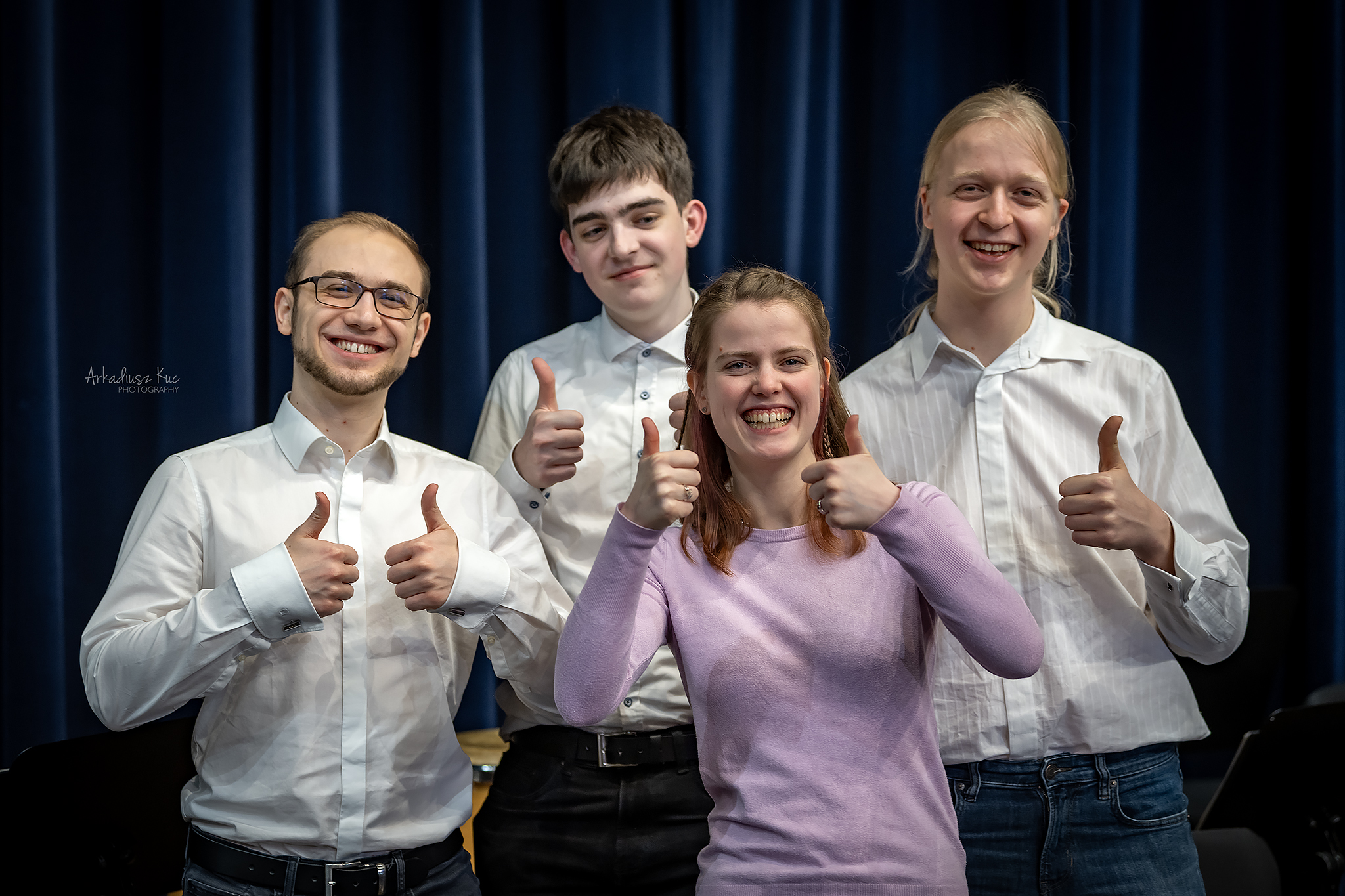 W piątek 15 marca 2024 r. w sali koncertowej Ogólnokształcącej Szkoły Muzycznej w Bytomiu odbył się koncert wieńczący wymianę młodzieży z bytomskiej szkoły oraz Cusanus Gymnasium i Kreismusikschule Heinsberg und des Musik- Ateliers G &J. Paczyna w Niemczech. Projekt ten został sfinansowany przez Polsko-Niemiecką Współpracę Młodzieży oraz stowarzyszenie Pro Musica Erkelenz e.V. Ze strony polskiej w kosztach partycypowała Rada Rodziców przy OSM w Bytomiu. Założeniem nawiązanej po latach przerwy współpracy, było pozyskanie kontaktów z niemieckimi rówieśnikami, podnoszenie kompetencji językowych oraz wspólne, przynoszące wiele radości, muzykowanie. Podczas pobytu polskiej młodzieży w Erkelenz opiekę nad uczniami pełniły rodziny niemieckiego miasteczka. Pozwoliło to naszym uczniom na poznanie miejscowych zwyczajów, pokosztowanie specjałów lokalnej kuchni oraz nawiązanie bliskich znajomości. Oprócz wspólnych prób do koncertu uczniowie bytomskiej szkoły zwiedzali Katedrę w Aachen, skarbiec Karola Wielkiego, starówkę w Dusseldorfie i inne zabytki architektury. Podczas rewizyty nasi niemieccy goście zostali oprowadzeni po mieście oraz zwiedzili nowo wyremontowany gmach Opery Śląskiej.
