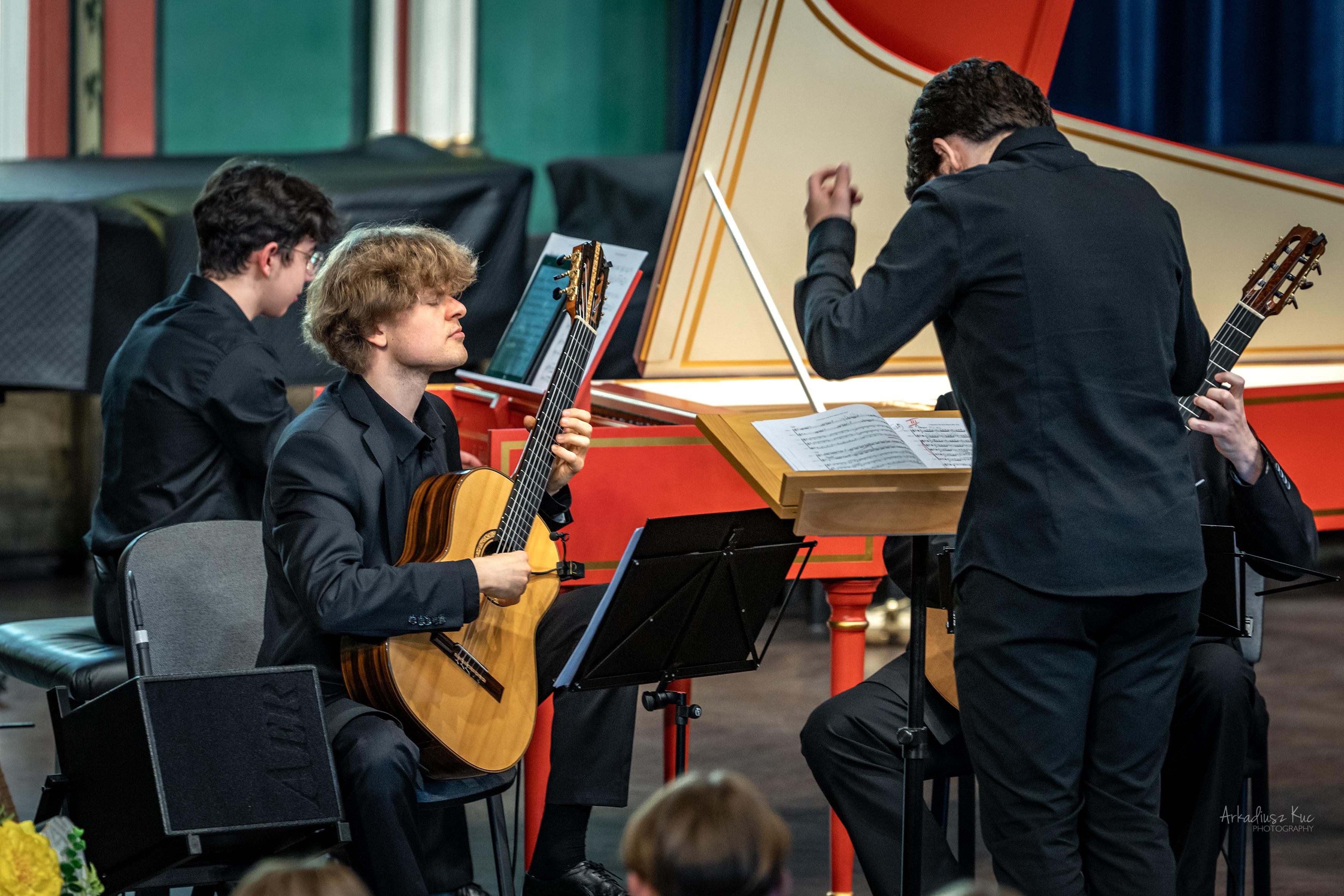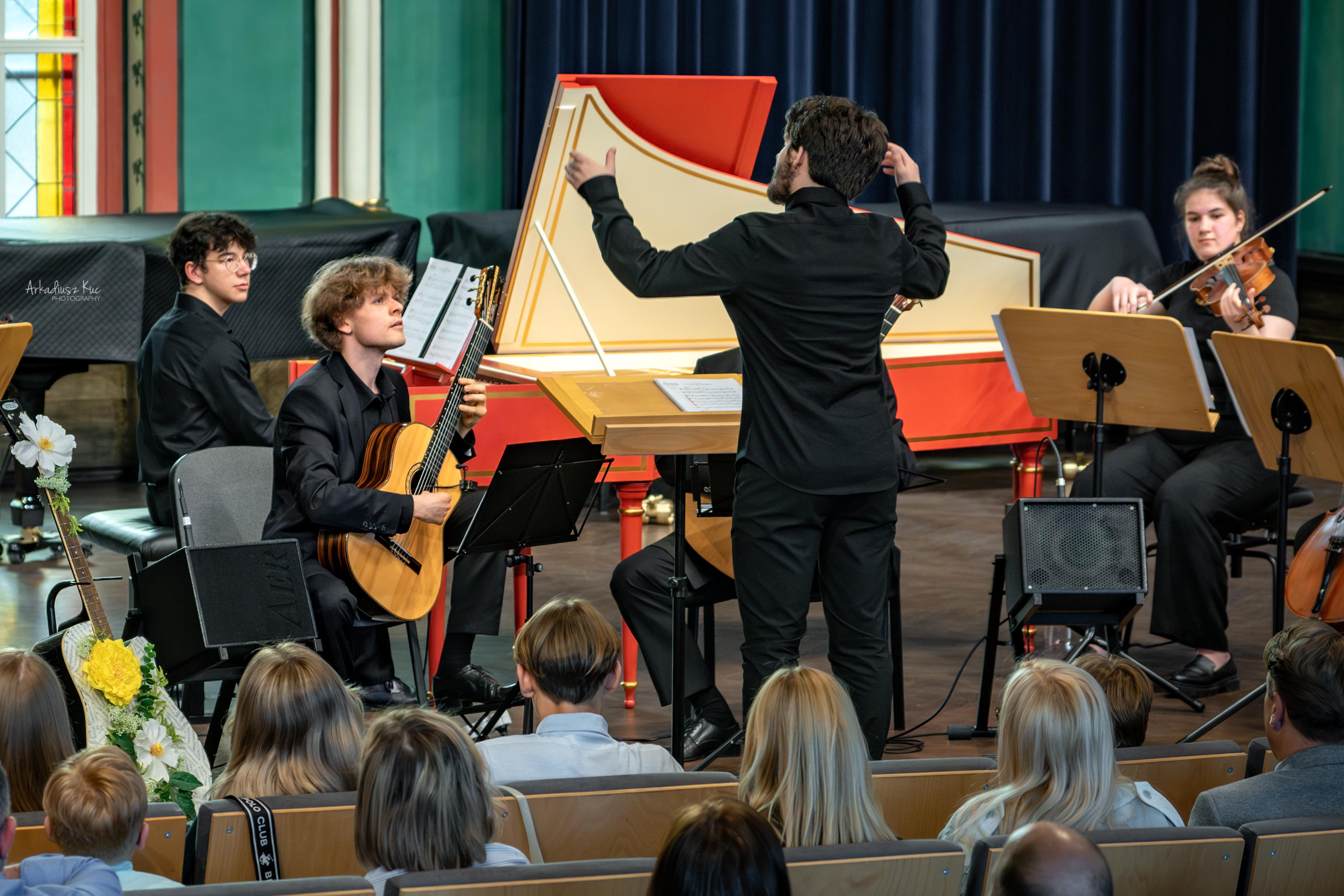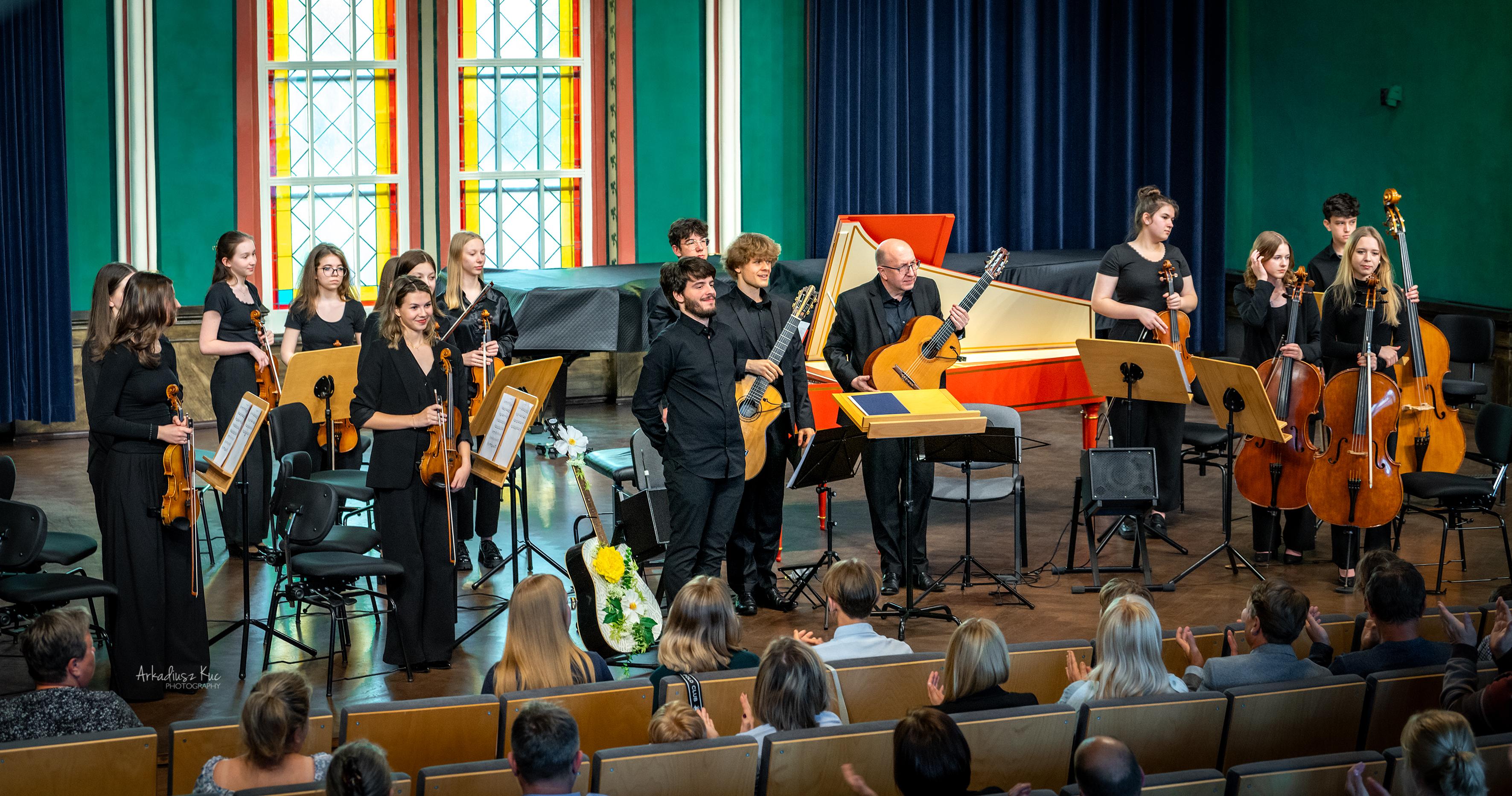 Gitarzystom towarzyszyła Polska Młodzieżowa Orkiestra Symfoniczna, tym razem w składzie kameralnym pod batutą p. Macieja Szczurowskiego, a przygotowana przez p. Filipa Huget. Partię klawesynu wykonał Michał Korzeń z klasy prof. Beaty Bilińskiej.
