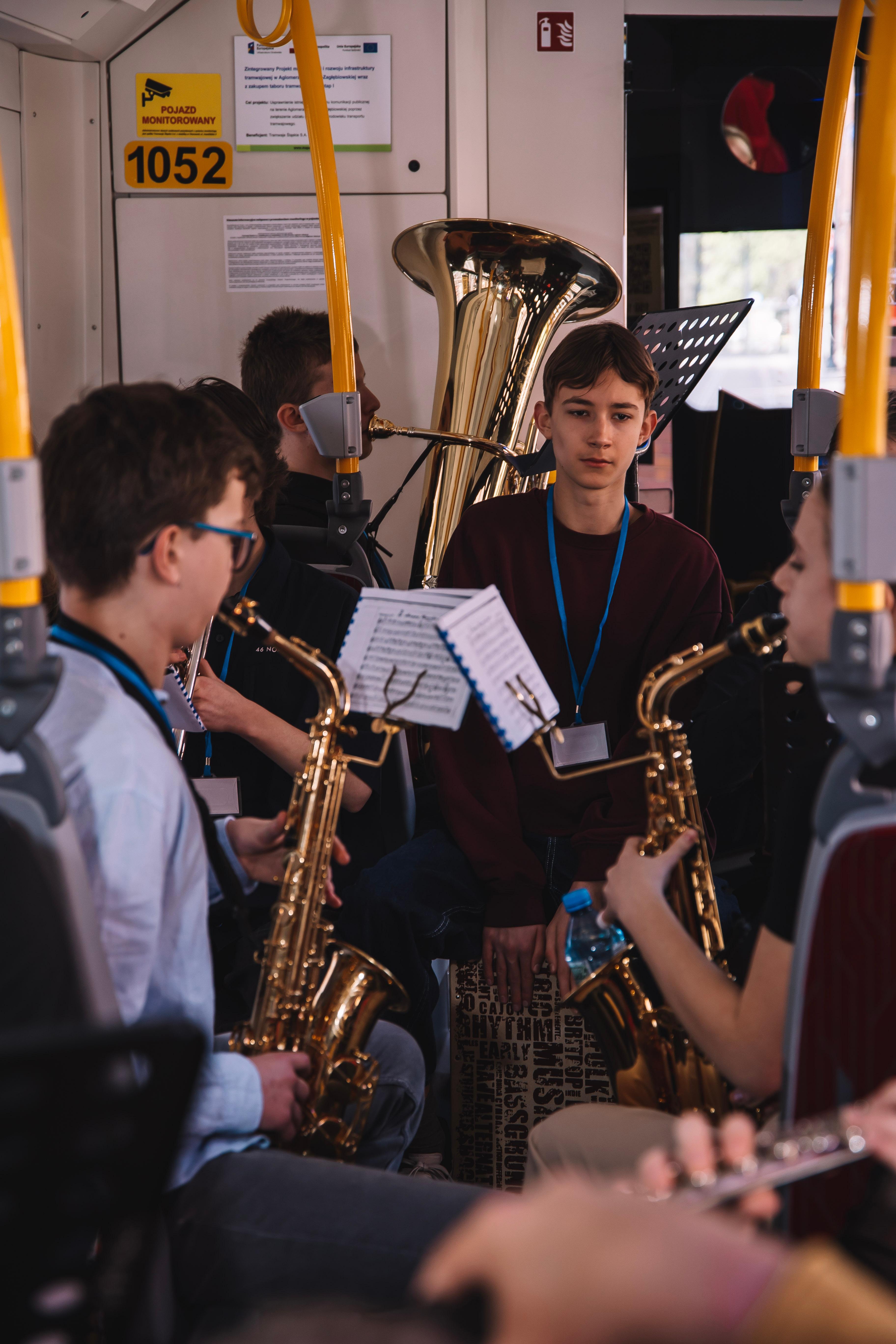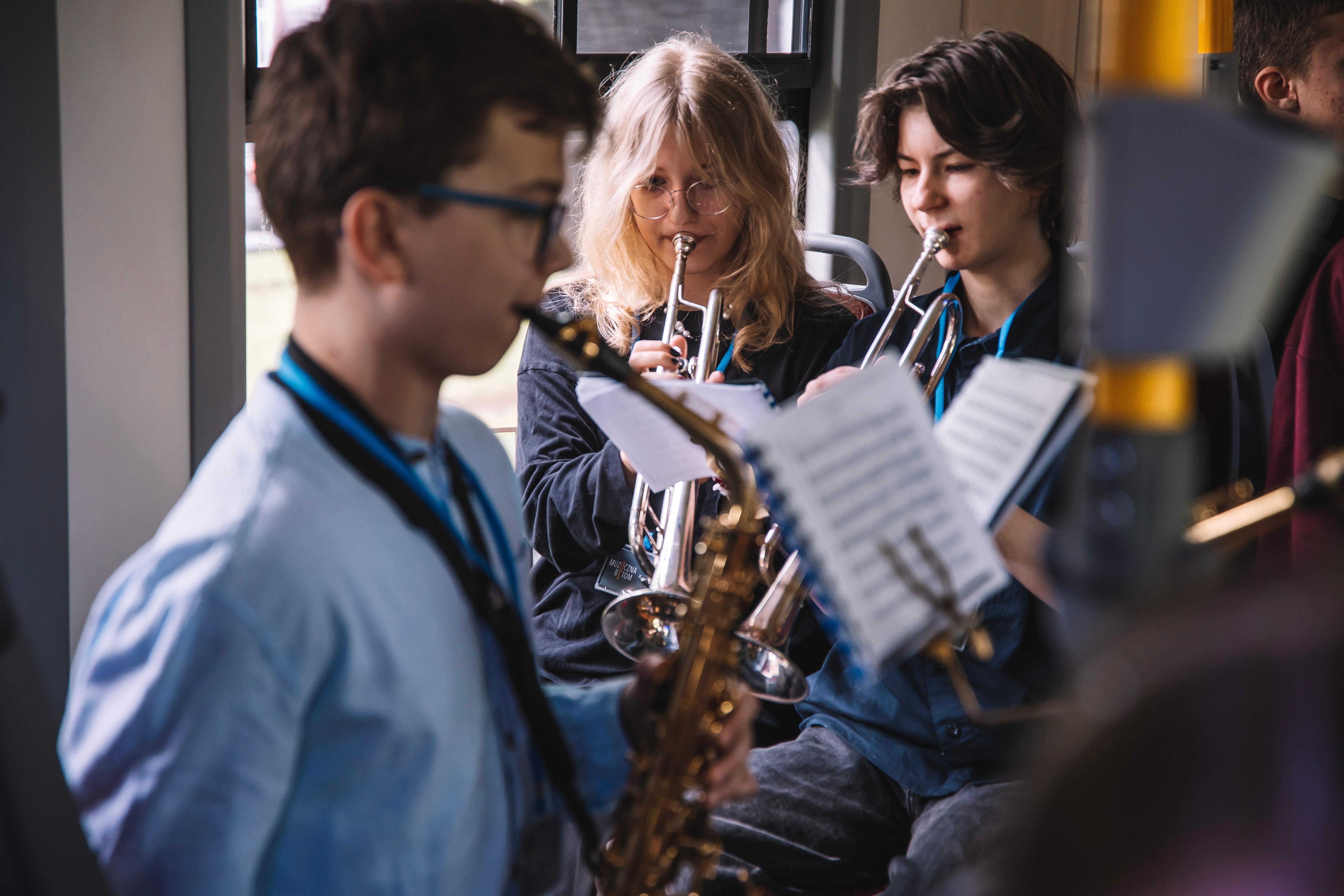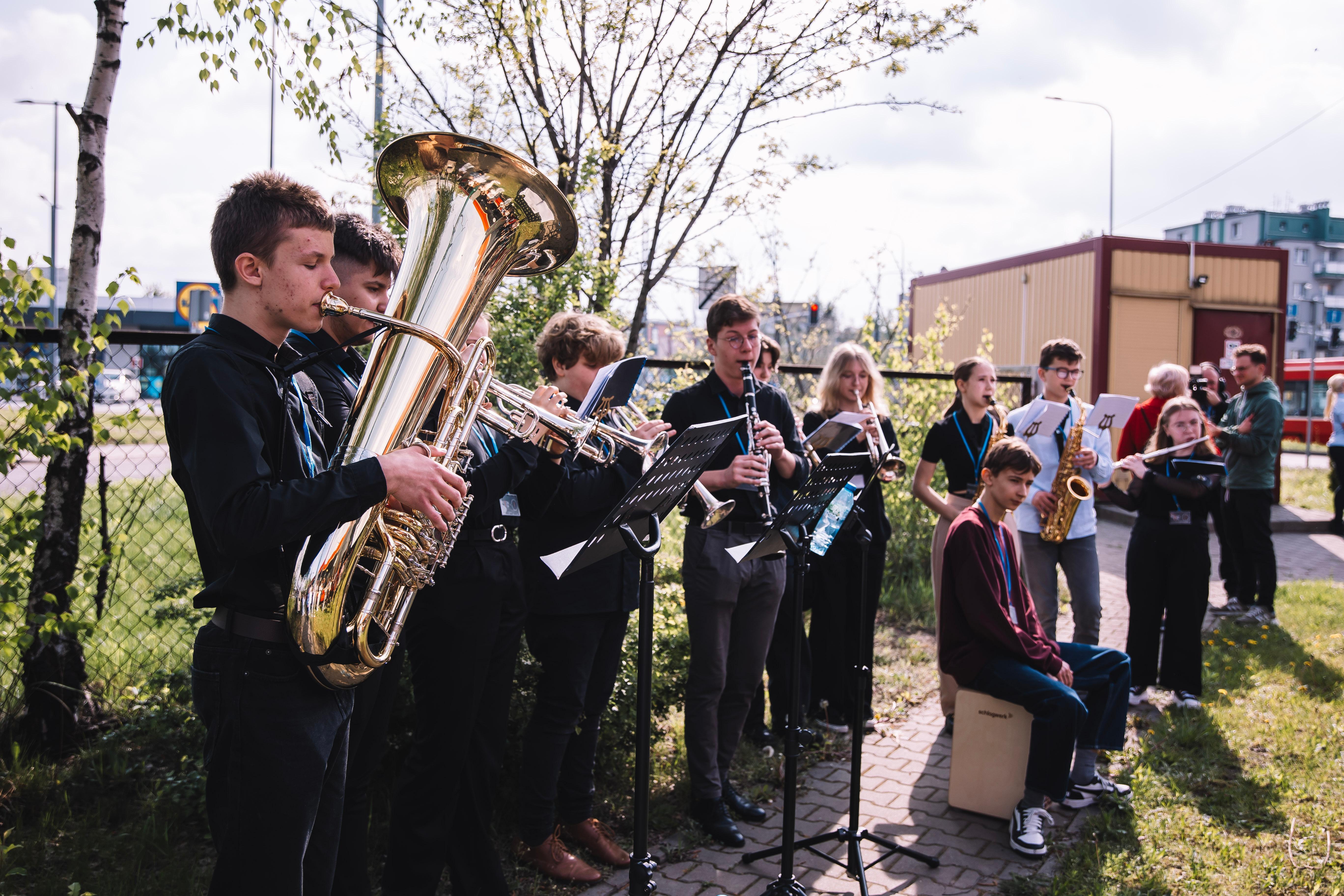 W sobotę już po raz drugi uczniowie naszej szkoły zorganizowali niecodzienny koncert. W trasę wyruszył specjalny wagon, ozdobiony logo szkoły. Kursowaliśmy z placu Sikorskiego wzdłuż ulicy Wrocławskiej. Zespół młodych muzyków, uczniów klas instrumentów dętych, umilał mieszkańcom Bytomia czas podróży tramwajem. Wraz z instrumentalistami zaprezentowały się wokalistki. Mogliśmy usłyszeć wykonania znanych, lubianych, przyjemnych dla uszu piosenek i melodii. Koncert wpisał się w tegoroczne obchody 770-lecia miasta Bytomia. Współorganizatorem przedsięwzięcia było stowarzyszenie MyBytomianie. Mieszkańcom Bytomia spodobał się pomysł i nagradzali naszych artystów brawami. Dla naszej młodzieży była to niewątpliwie kolejna okazja do zaprezentowania swoich umiejętności i podzielenia się z mieszkańcami Bytomia tym, co stanowi codzienność muzycznego życia.