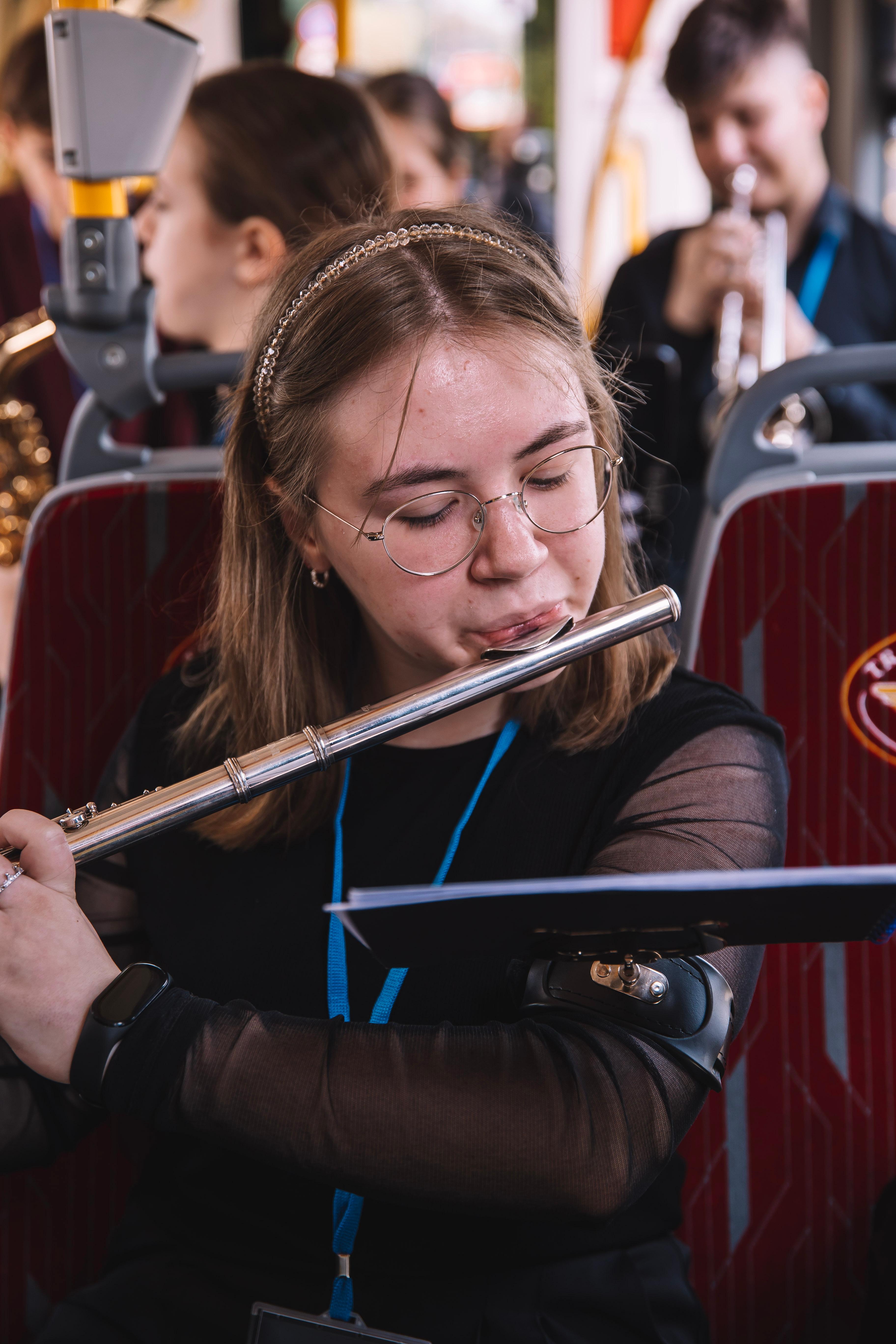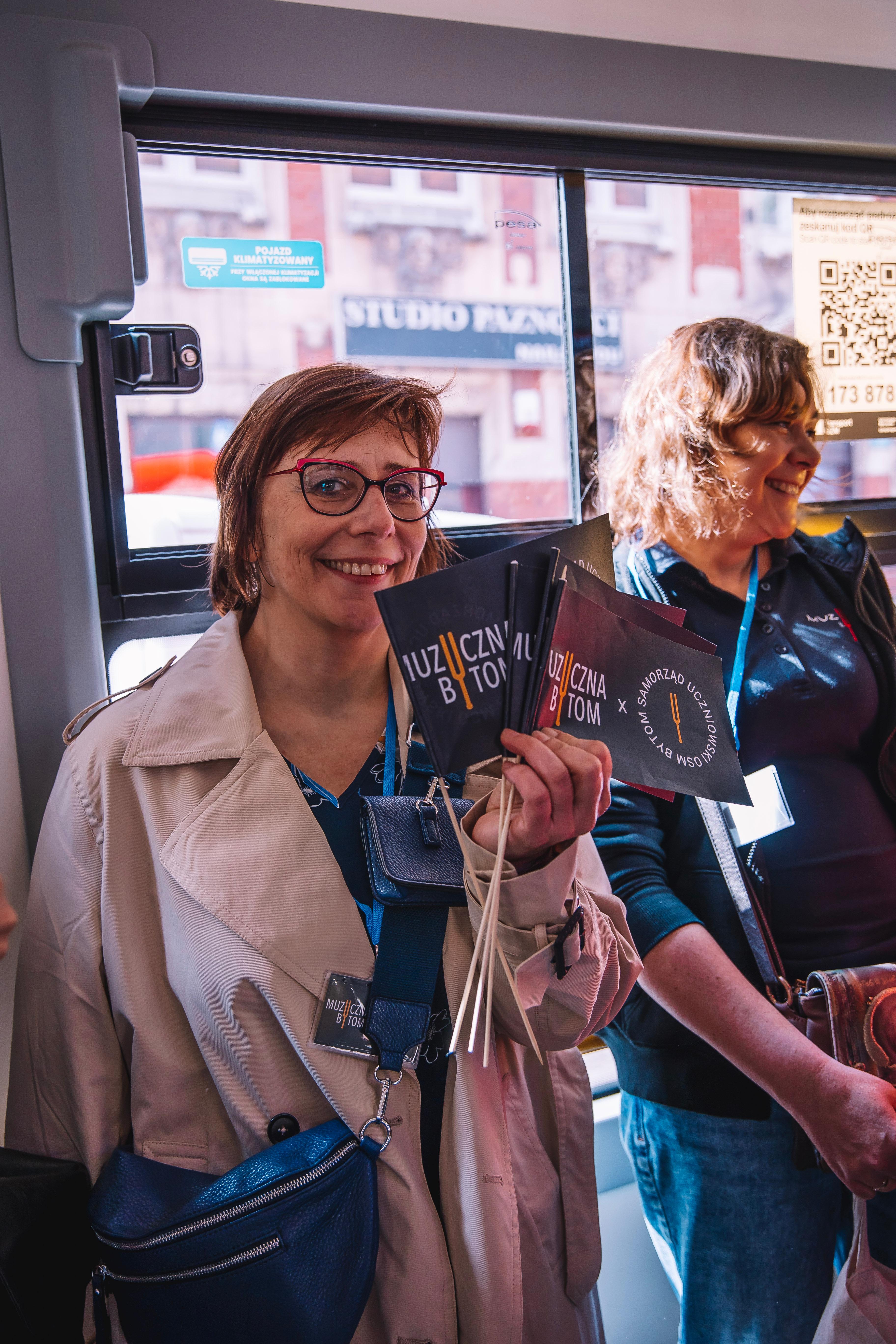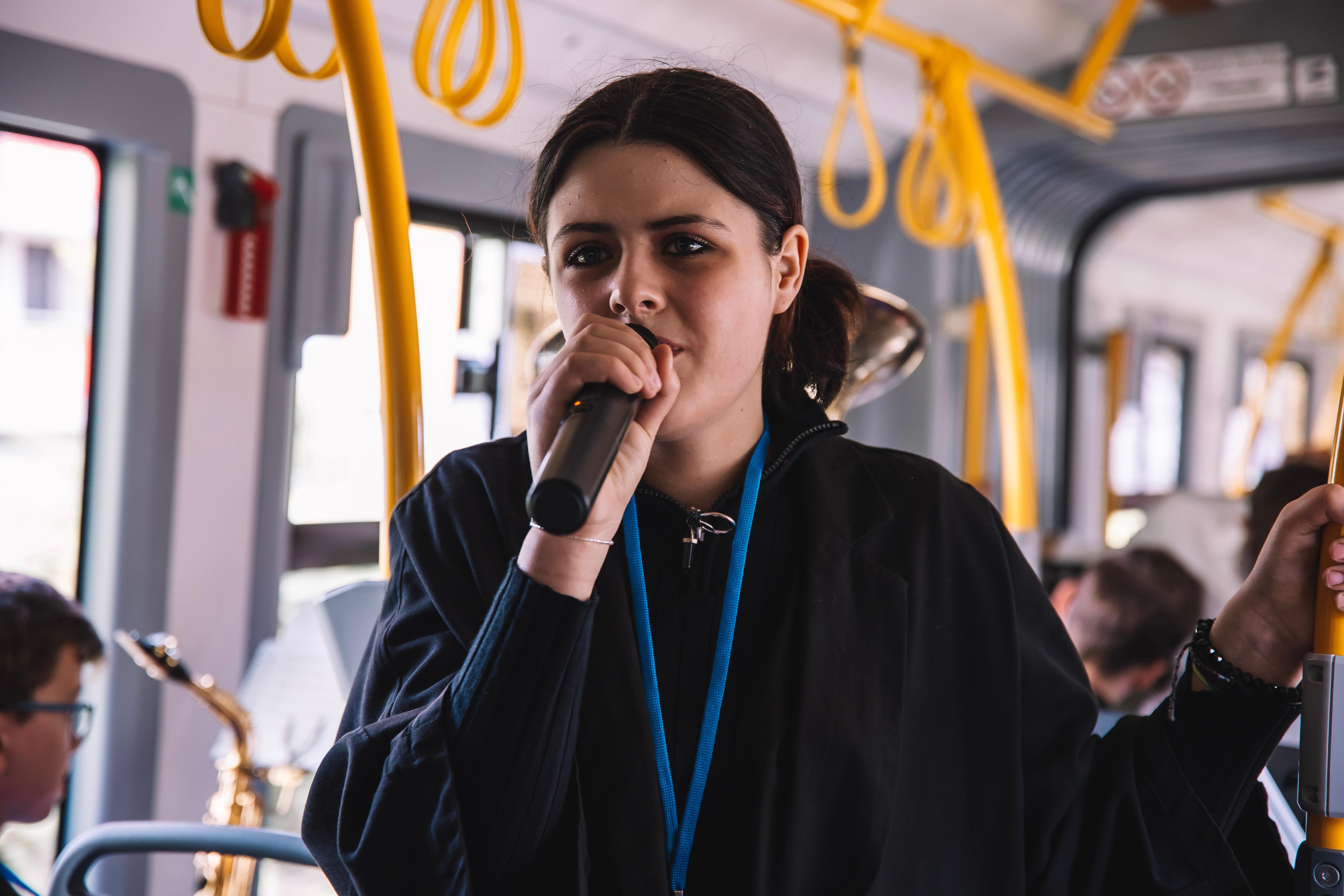 W sobotę już po raz drugi uczniowie naszej szkoły zorganizowali niecodzienny koncert. W trasę wyruszył specjalny wagon, ozdobiony logo szkoły. Kursowaliśmy z placu Sikorskiego wzdłuż ulicy Wrocławskiej. Zespół młodych muzyków, uczniów klas instrumentów dętych, umilał mieszkańcom Bytomia czas podróży tramwajem. Wraz z instrumentalistami zaprezentowały się wokalistki. Mogliśmy usłyszeć wykonania znanych, lubianych, przyjemnych dla uszu piosenek i melodii. Koncert wpisał się w tegoroczne obchody 770-lecia miasta Bytomia. Współorganizatorem przedsięwzięcia było stowarzyszenie MyBytomianie. Mieszkańcom Bytomia spodobał się pomysł i nagradzali naszych artystów brawami. Dla naszej młodzieży była to niewątpliwie kolejna okazja do zaprezentowania swoich umiejętności i podzielenia się z mieszkańcami Bytomia tym, co stanowi codzienność muzycznego życia.