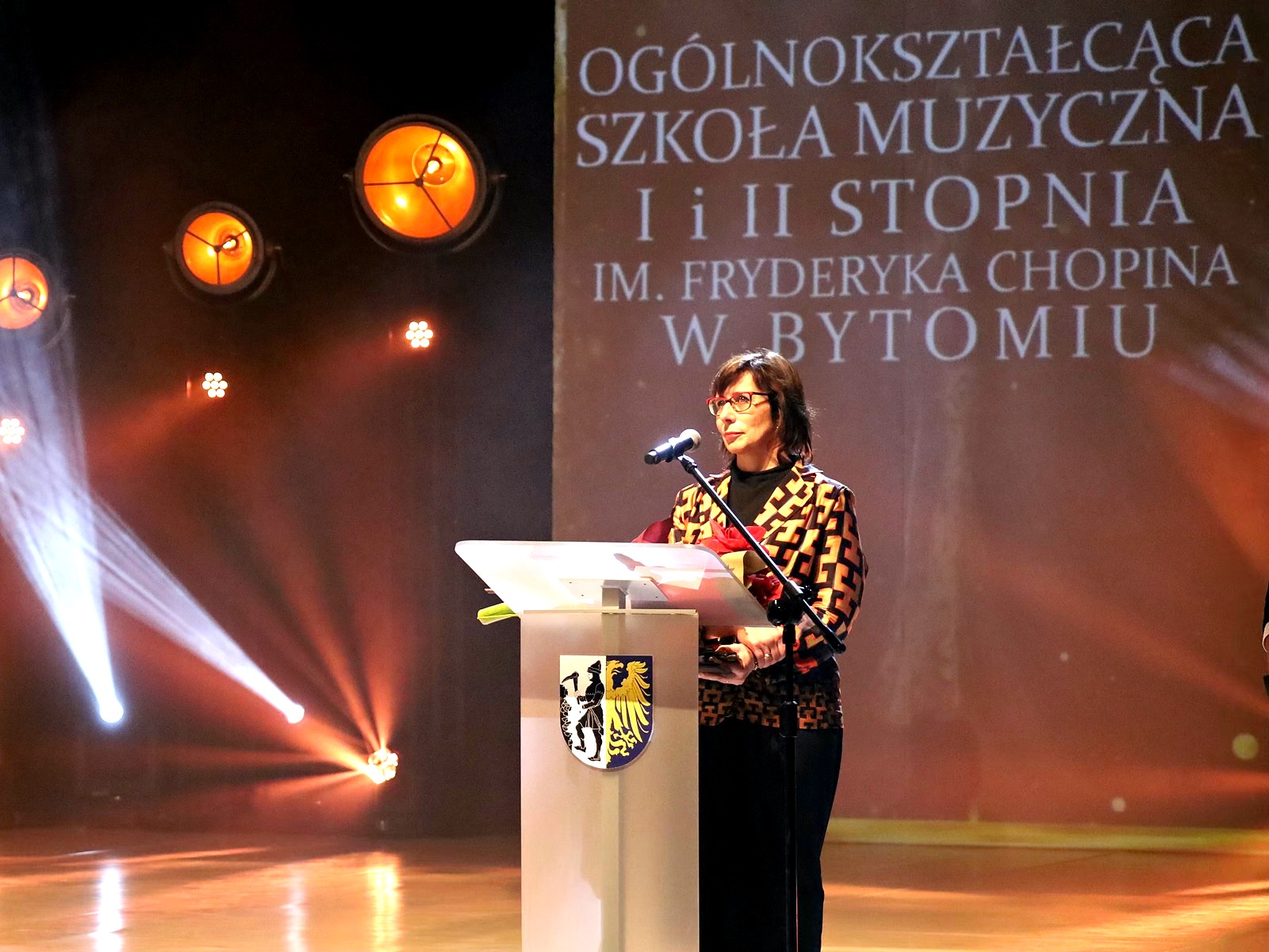 W piątkowy wieczór pani dyrektor Zuzanna Sucharowska odebrała Nagrodę Prezydenta Bytomia w dziedzinie kultury – MUZA 2025, przyznaną Ogólnokształcącej Szkole Muzycznej I i II stopnia im. F. Chopina w Bytomiu.
