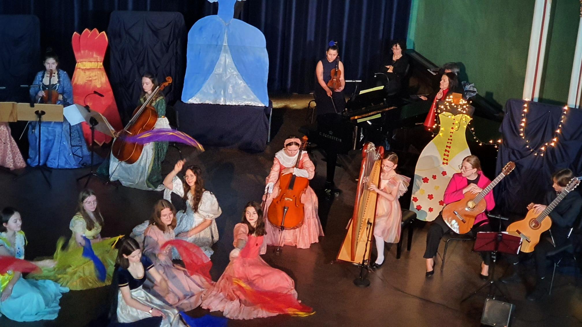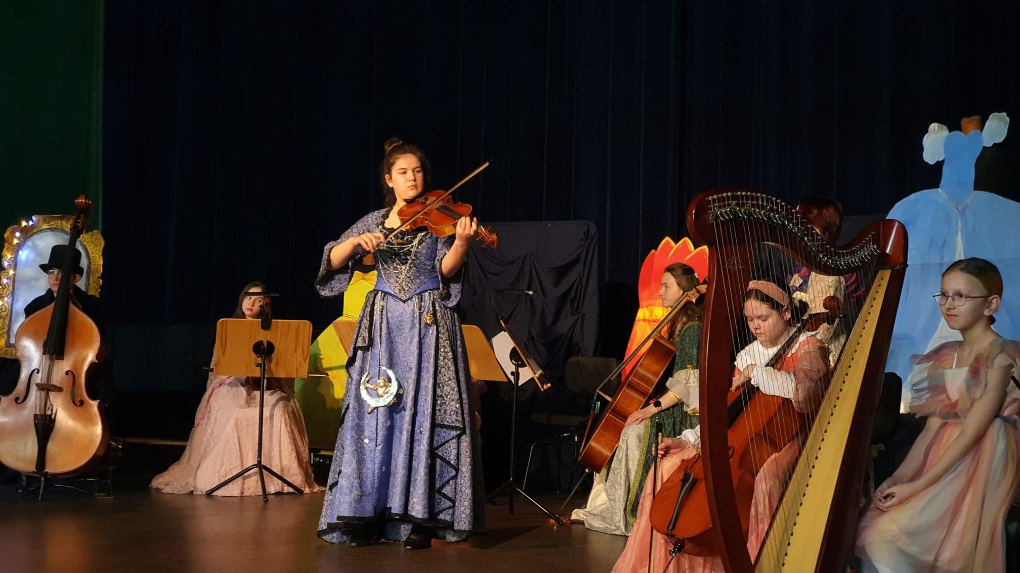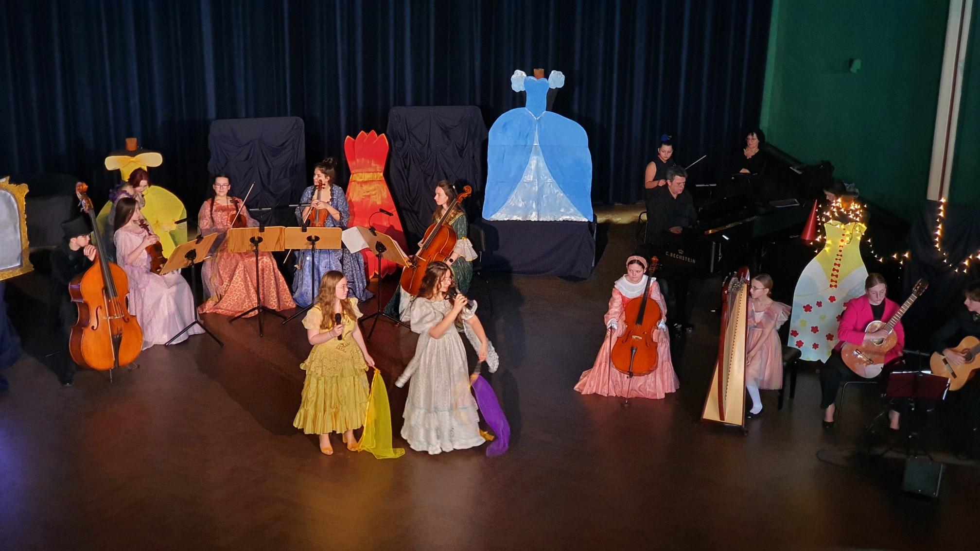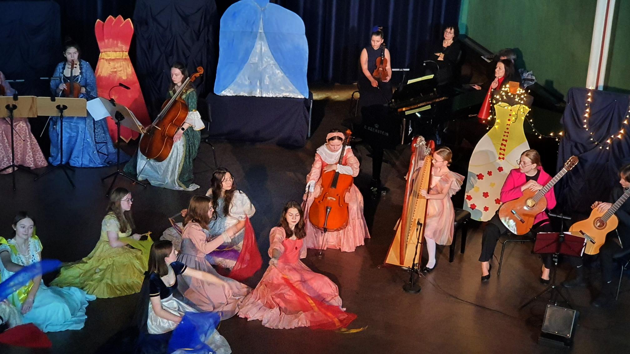 10 marca 2023 roku w naszej szkole odbyło się kolejne przedstawienie dla przedszkolaków z cyklu „Rodzinne spotkania z muzyką”. Tym razem prezentowała się sekcja instrumentów smyczkowych, gitary i harfy. Podczas koncertu Kasia Kołakowska wcieliła się w postać Wróżki Strunki i wprowadziła nas w świat baśni, w którym główną rolę odegrali młodzi muzycy. Zaprezentowane zostały następujące instrumenty: