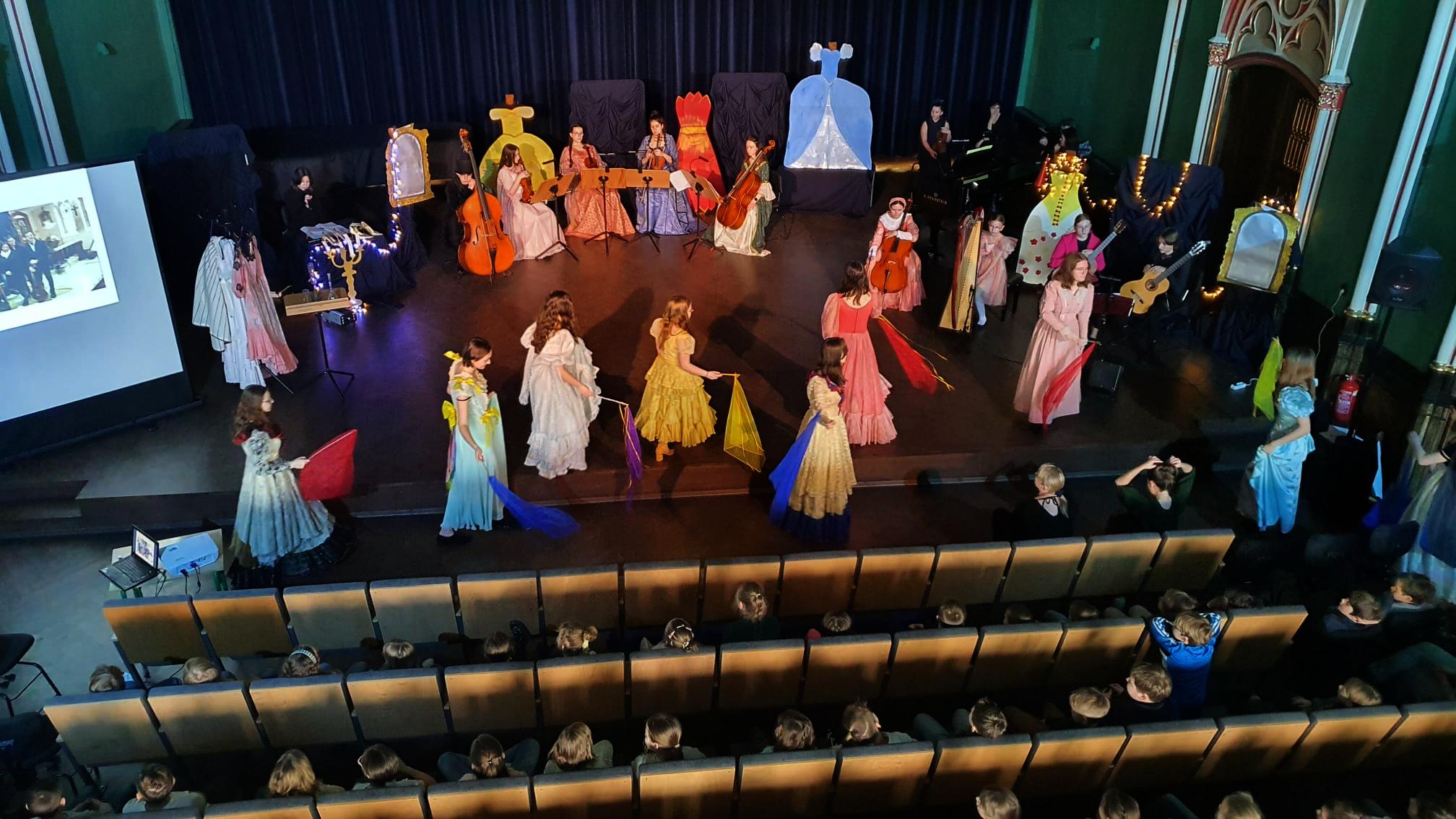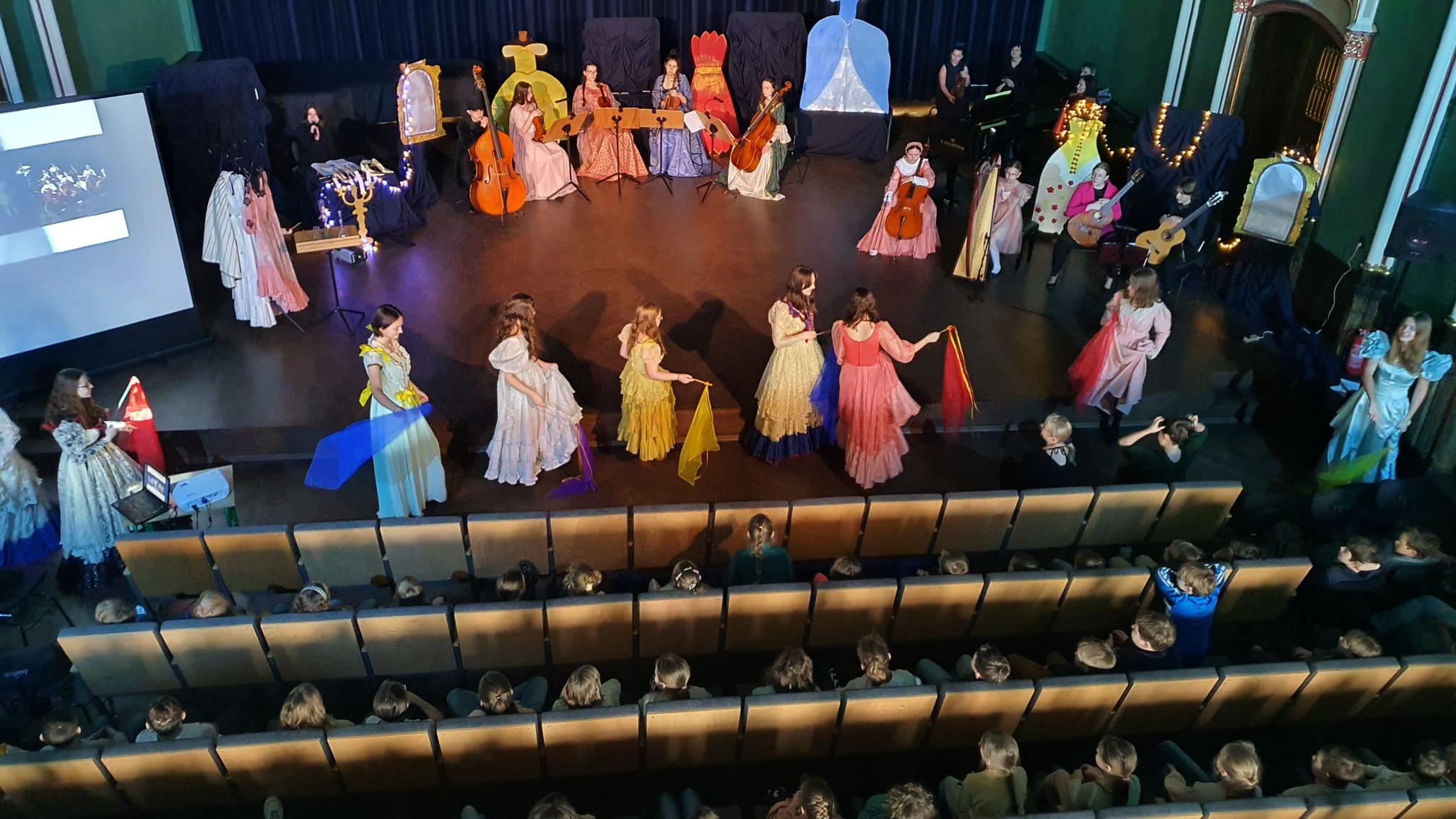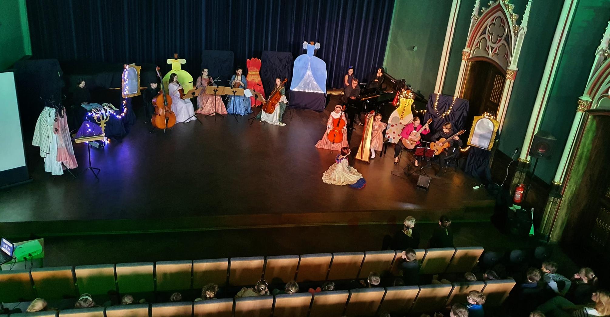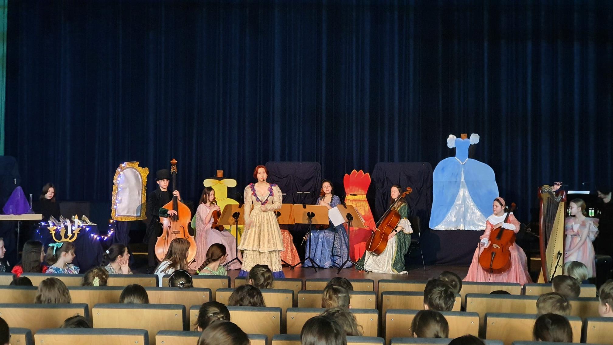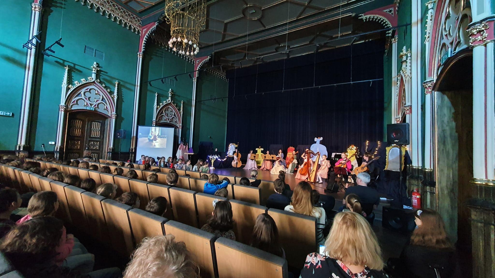 10 marca 2023 roku w naszej szkole odbyło się kolejne przedstawienie dla przedszkolaków z cyklu „Rodzinne spotkania z muzyką”. Tym razem prezentowała się sekcja instrumentów smyczkowych, gitary i harfy. Podczas koncertu Kasia Kołakowska wcieliła się w postać Wróżki Strunki i wprowadziła nas w świat baśni, w którym główną rolę odegrali młodzi muzycy. Zaprezentowane zostały następujące instrumenty: