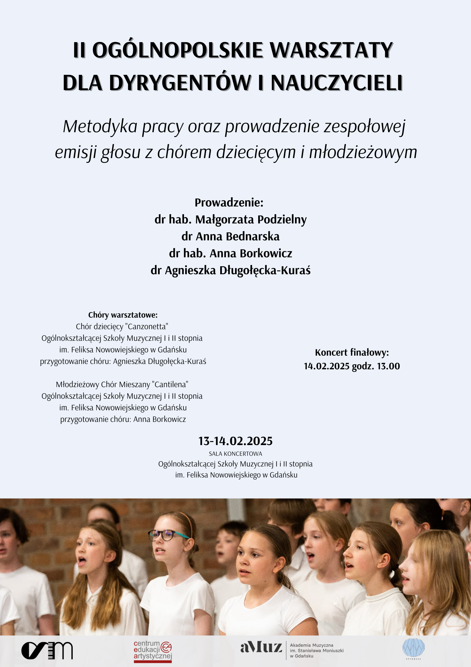 13.00 Uroczyste zakończenie warsztatów z prezentacją koncertową chórów, Sala Koncertowa Ogólnokształcącej Szkoły Muzycznej w Gdańsku