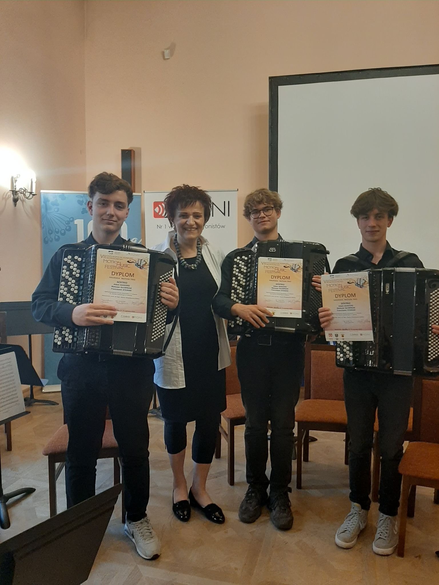 Uczniowie klasy akordeonu Pani prof. dr. hab. Elwiry Śliwkiewicz-Cisak w VII Ogólnopolskim Konkursie MOTION MUSIC FESTIVAL w Wieliczce w dniach 9 - 11 czerwca 2022 r. zdobyli: