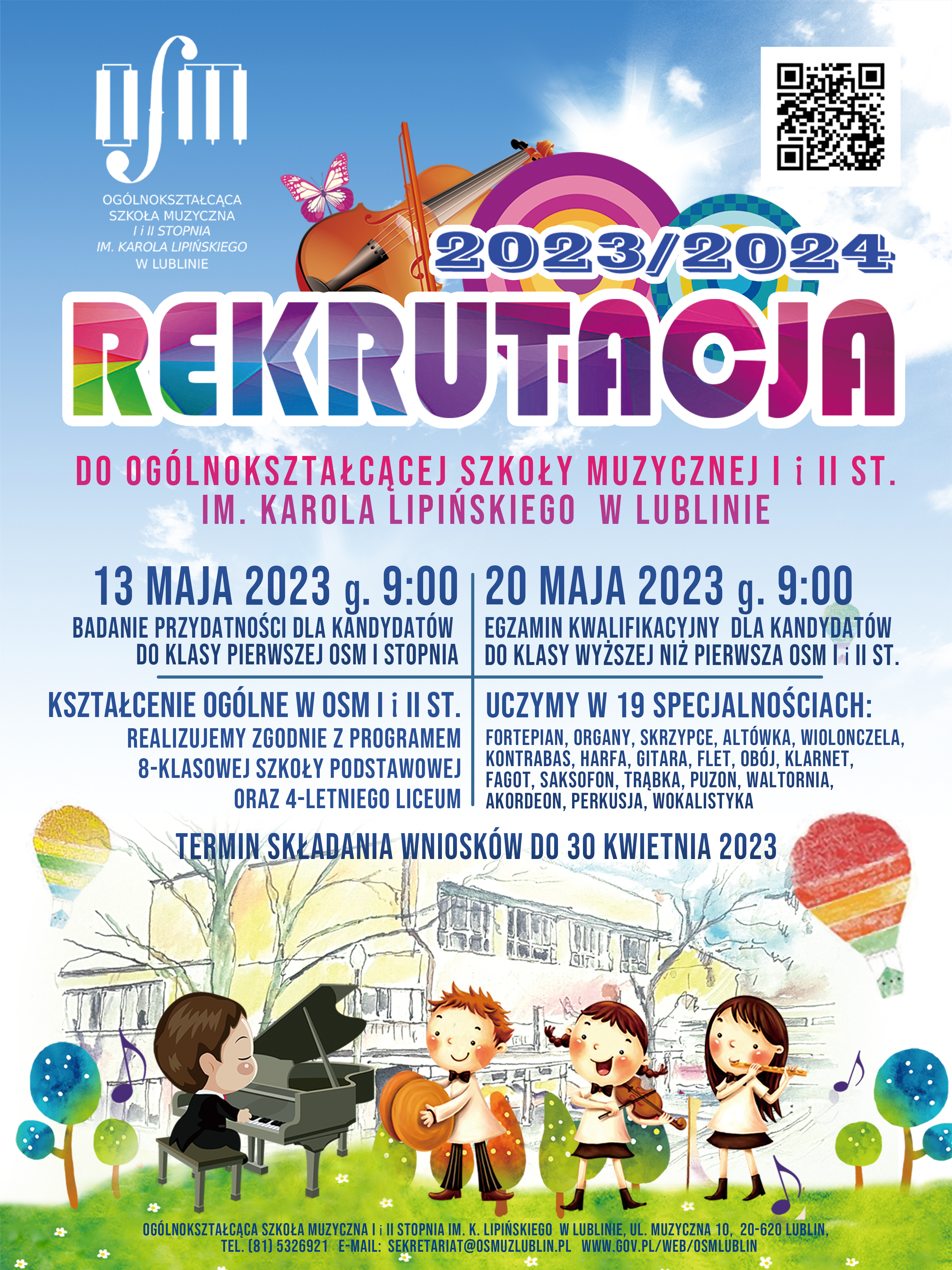 OSTATECZNY TERMIN ZŁOŻENIA WNIOSKÓW O PRZYJĘCIE DO SZKOŁY - do dnia 30 kwietnia 2023r