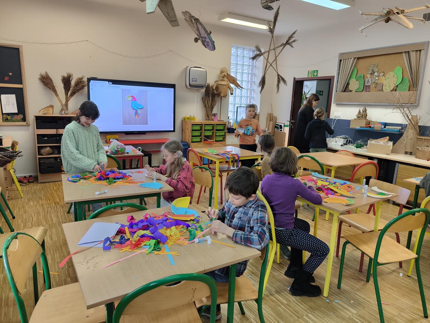 6 lutego uczniowie klasy 3b odwiedzili VII Ogród Jordanowski w Warszawie. Podczas warsztatów eko-plastycznych „Zwierzaki cudaki” powstały piękne i kolorowe papugi.