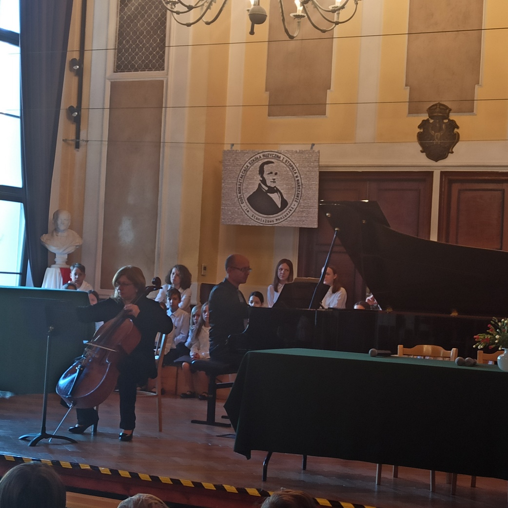 Na zakończenie uroczystości odbył się krótki koncert w wykonaniu pana Tomasza Januchty (fortepian) wraz z panią Justyną Kańską (wiolonczela).