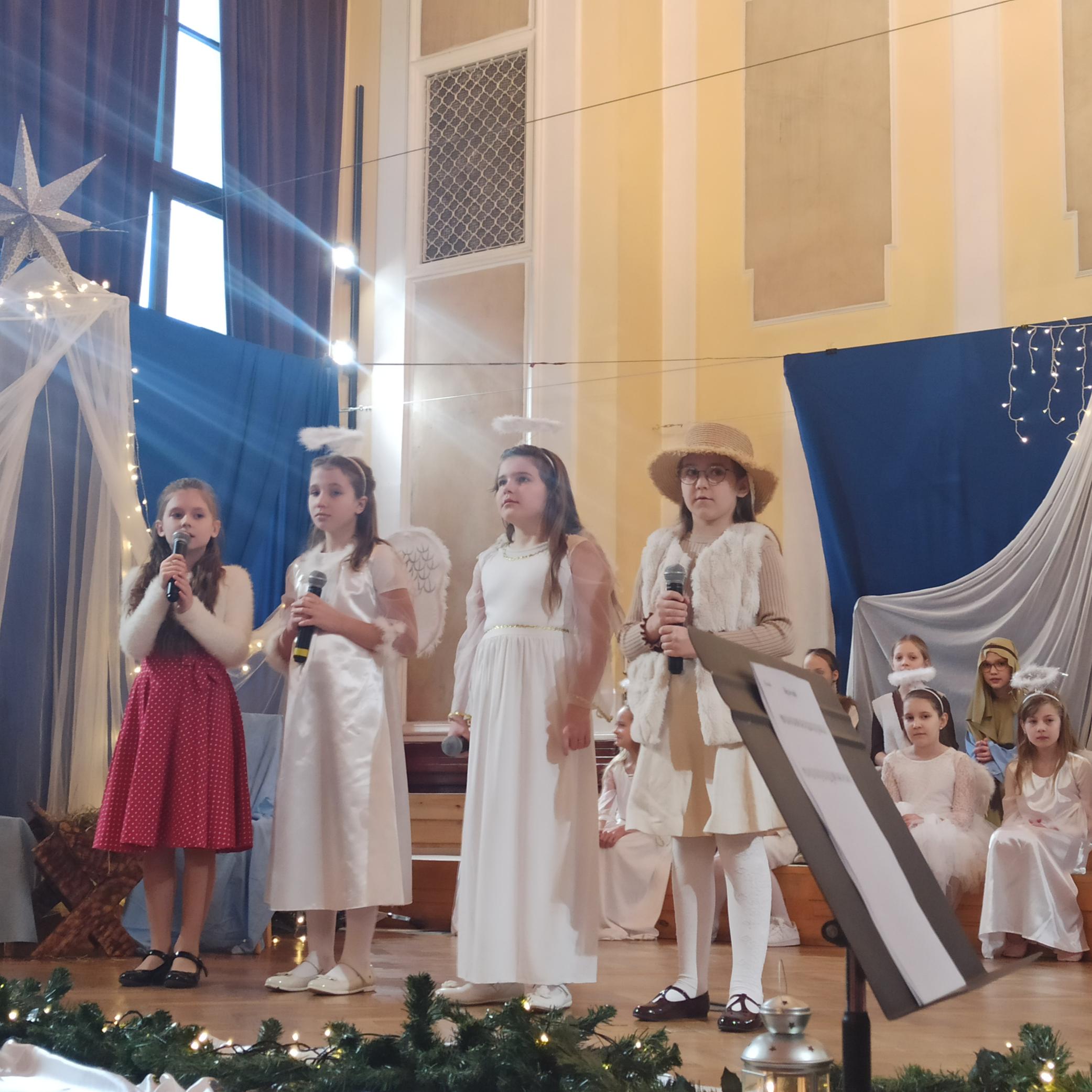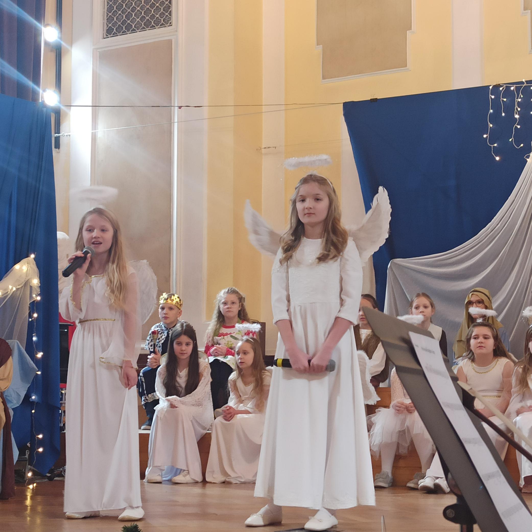 Mieliśmy możliwość ujrzeć sceny z narodzin Chrystusa, a także usłyszeć piękne kolędy i pastorałki. Podkład muzyczny do kolęd utworzyły dziewczynki z klasy 8. Orkiestra "dęciaków" dodatkowo uświetniła całą imprezę.