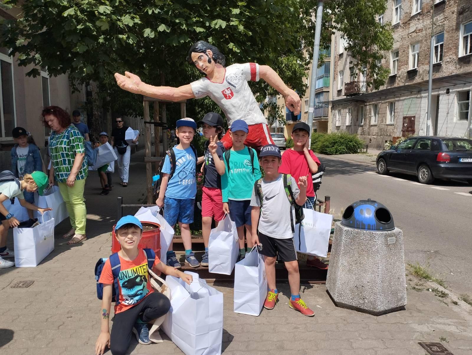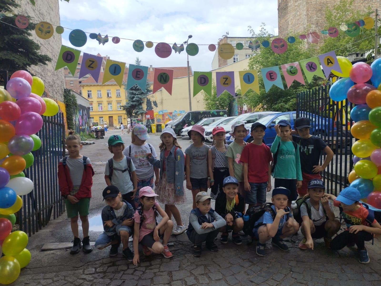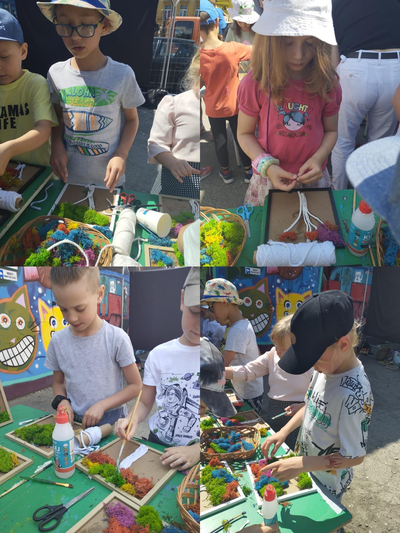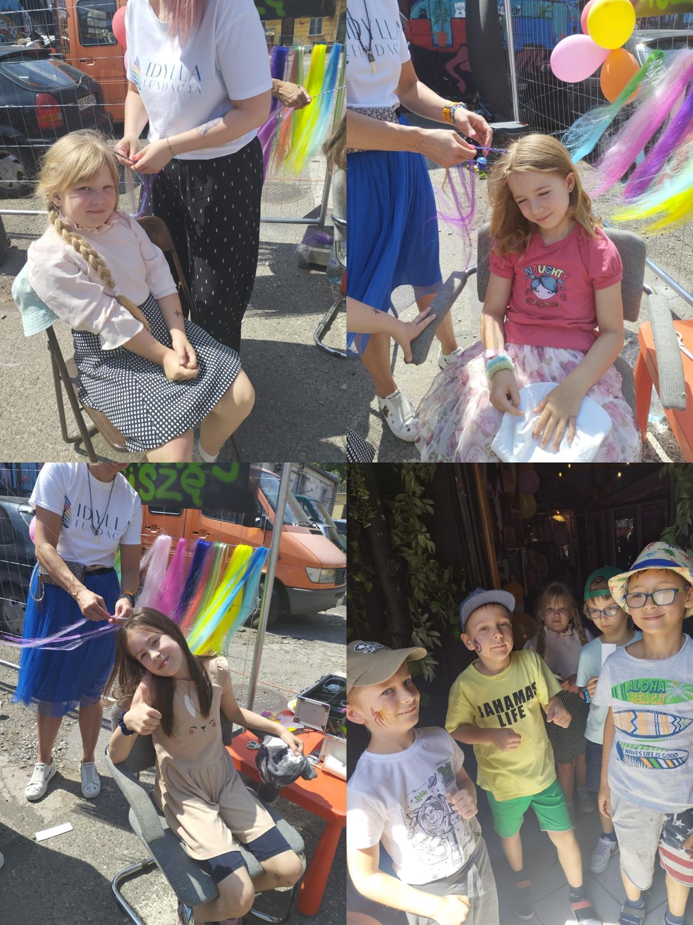 29 maja, z okazji Dnia Dziecka, klasy 1a i 1b wzięły udział w wycieczce do Stacji Praga przy ul. Zaokopowej 5. Dzieci miały okazję wziąć udział w kreatywnych warsztatach (malowanie eco-toreb, praca z kolorowym mchem). Było też plecenie warkoczyków, zabawy z nagrodami, wesołe animacje, poczęstunek, aktywne gry i zabawy.