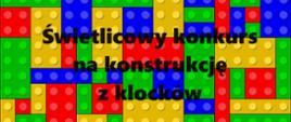 - Konkurs polega na wykonaniu dowolnej konstrukcji z wybranego przez siebie rodzaju klocków np. z lego, z klocków drewnianych czy z plastikowych.