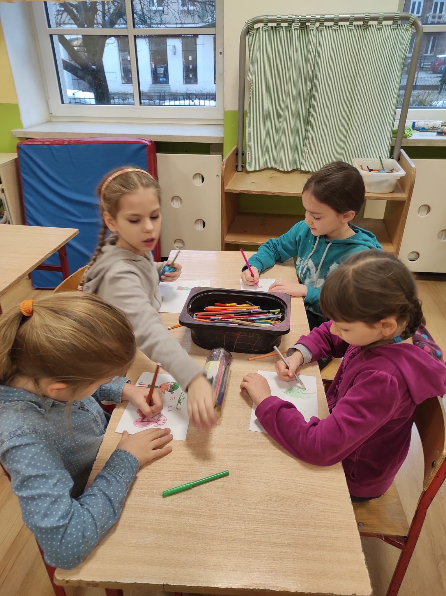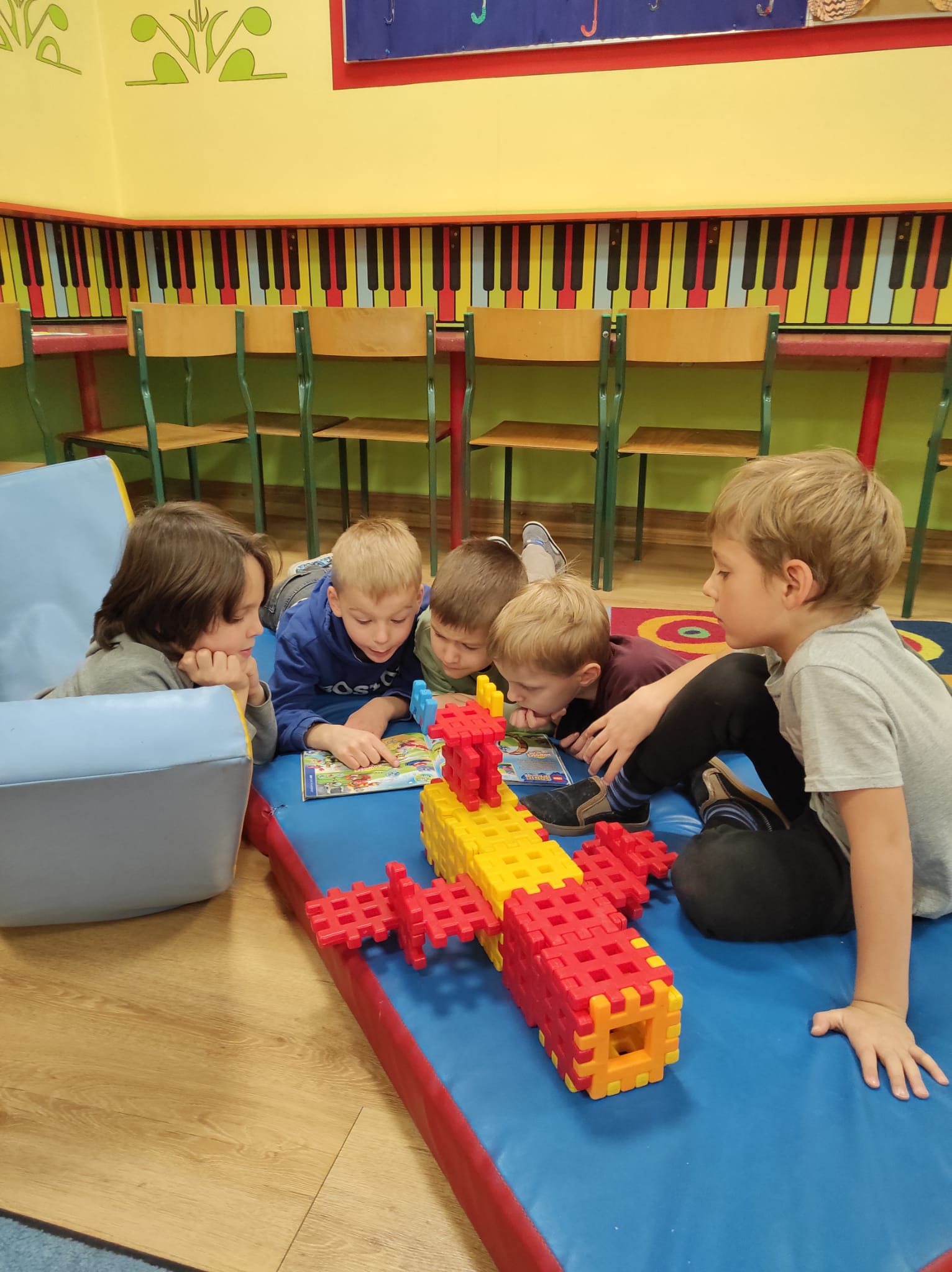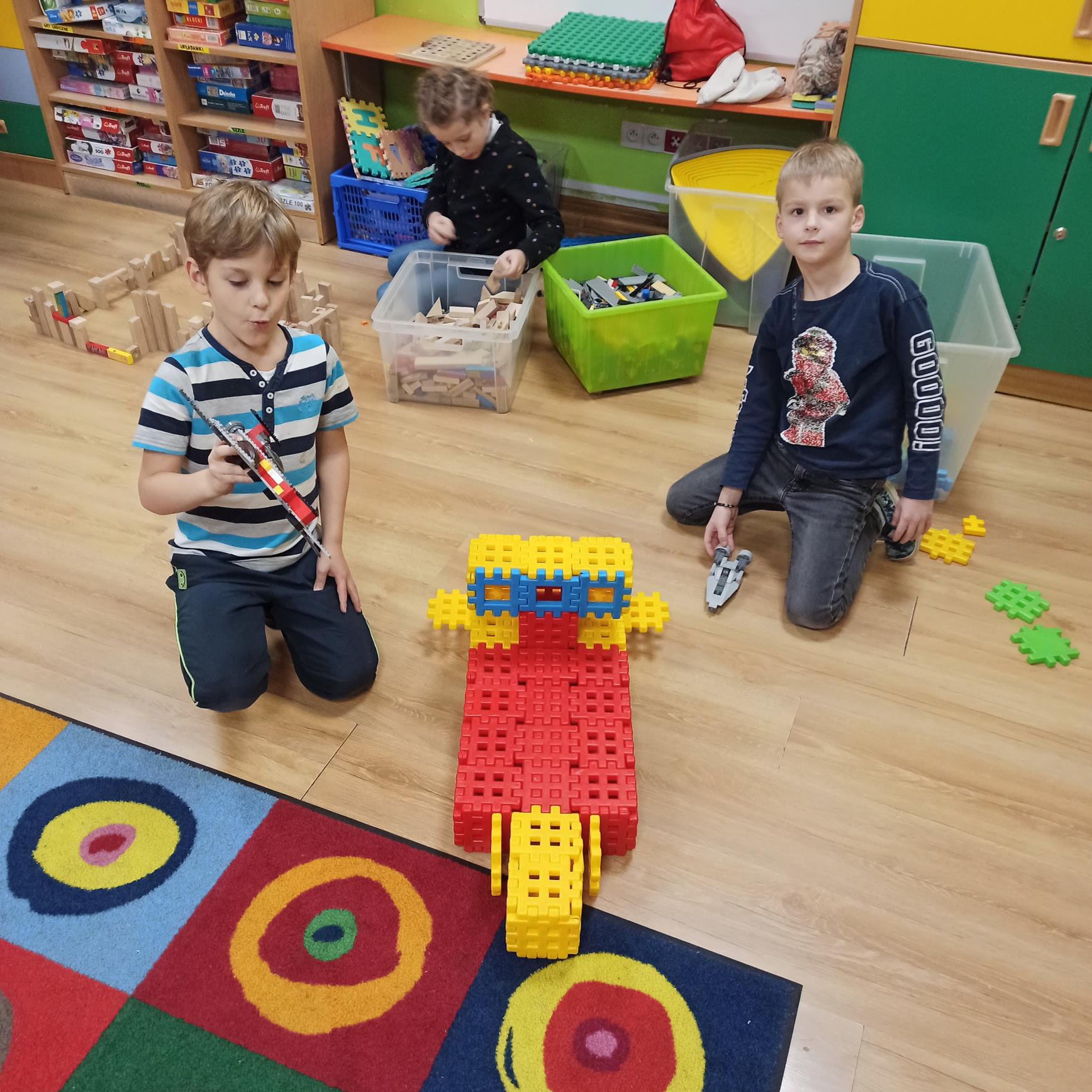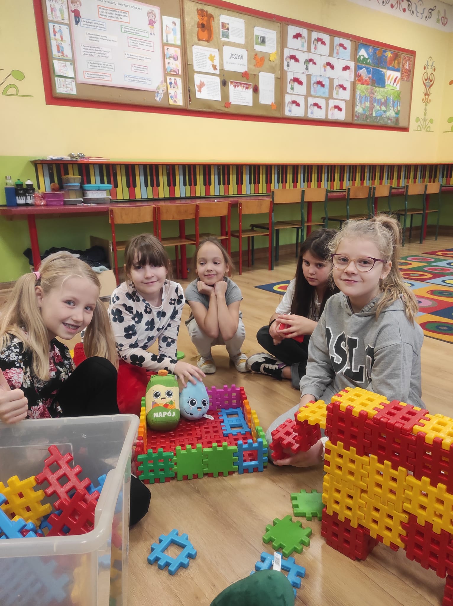 Listopad w świetlicy upłynął pod znakiem zorganizowanego w tym miesiącu konkursu na konstrukcję z klocków. Wykonano wiele wspaniałych i pomysłowych budowli. Nie zabrakło też akcentów patriotycznych z powodu obchodzonego w listopadzie Święta Niepodległości. Była też zwykła, codzienna zabawa, różnorakie zajęcia, a także pogadanki m.in o zmieniających się porach roku.