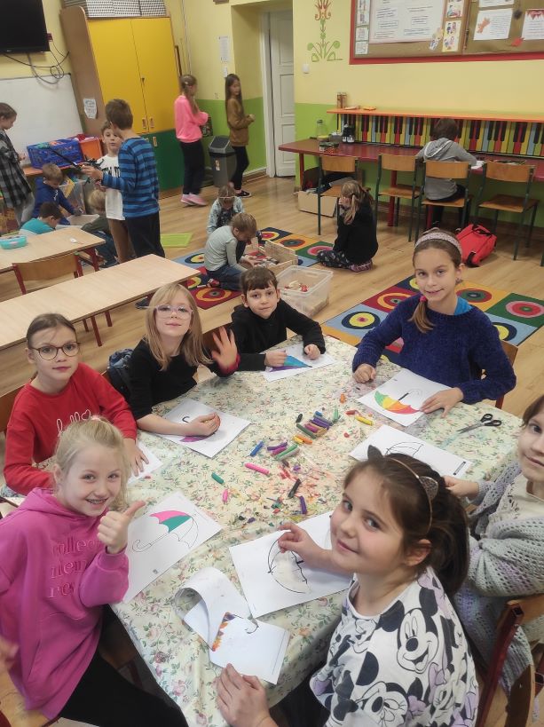Październik w świetlicy szkolnej obfitował w różnorodne zajęcia. Najchętnij dzieci wykonywały ciekawe prace plastyczne. Uczestniczyły też w zajęciach czytelniczych, ruchowych, komputerowych, zabawach umysłowych, pogadankach, zajęciach stolikowych i innych. Bardzo często też dzieci hartowały się na placu zabaw przy zabawach ruchowych na świeżym powietrzu.