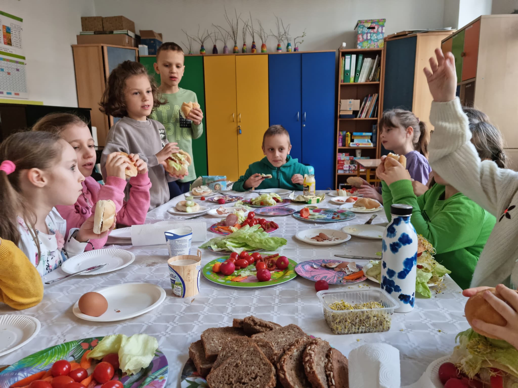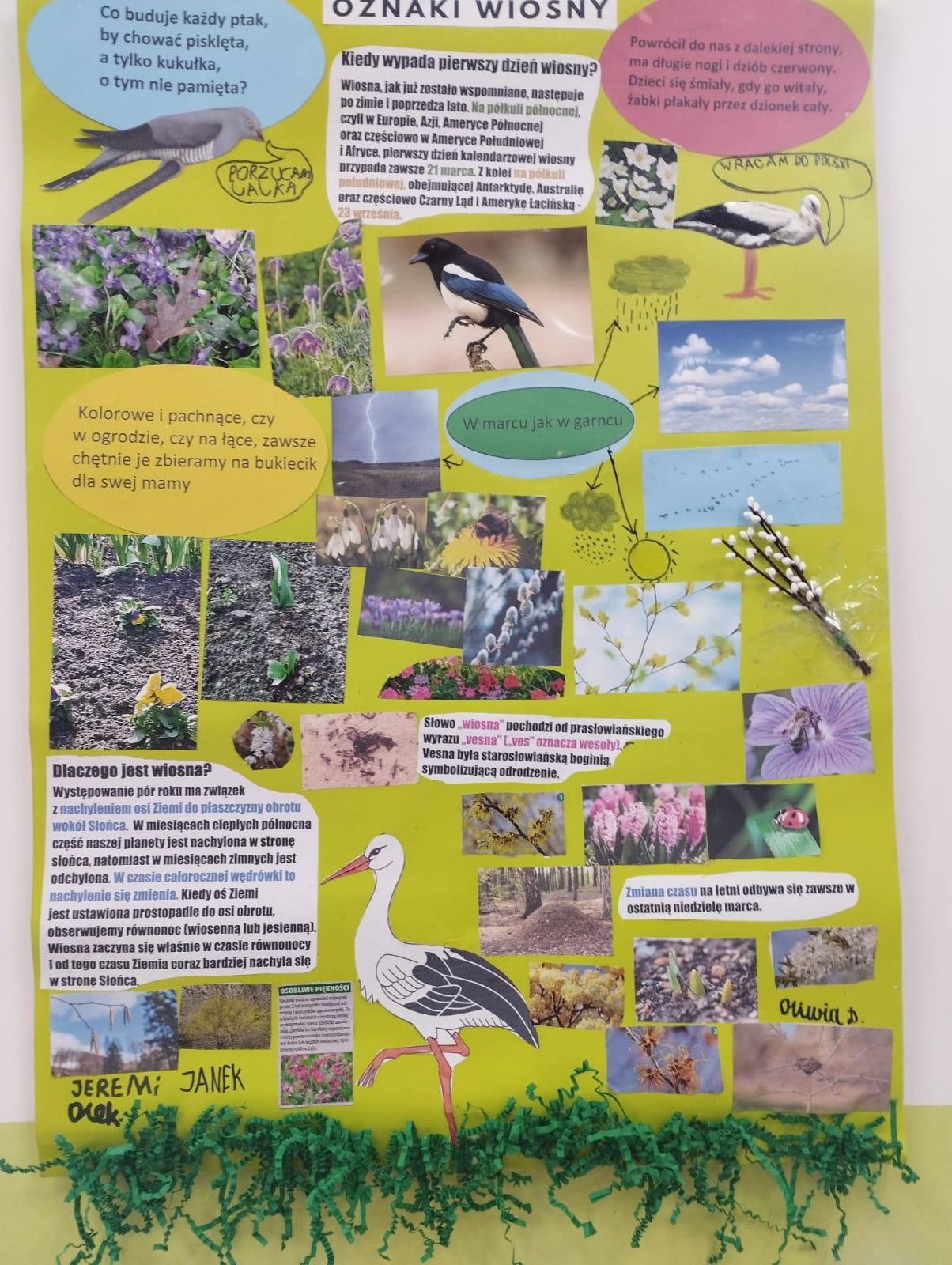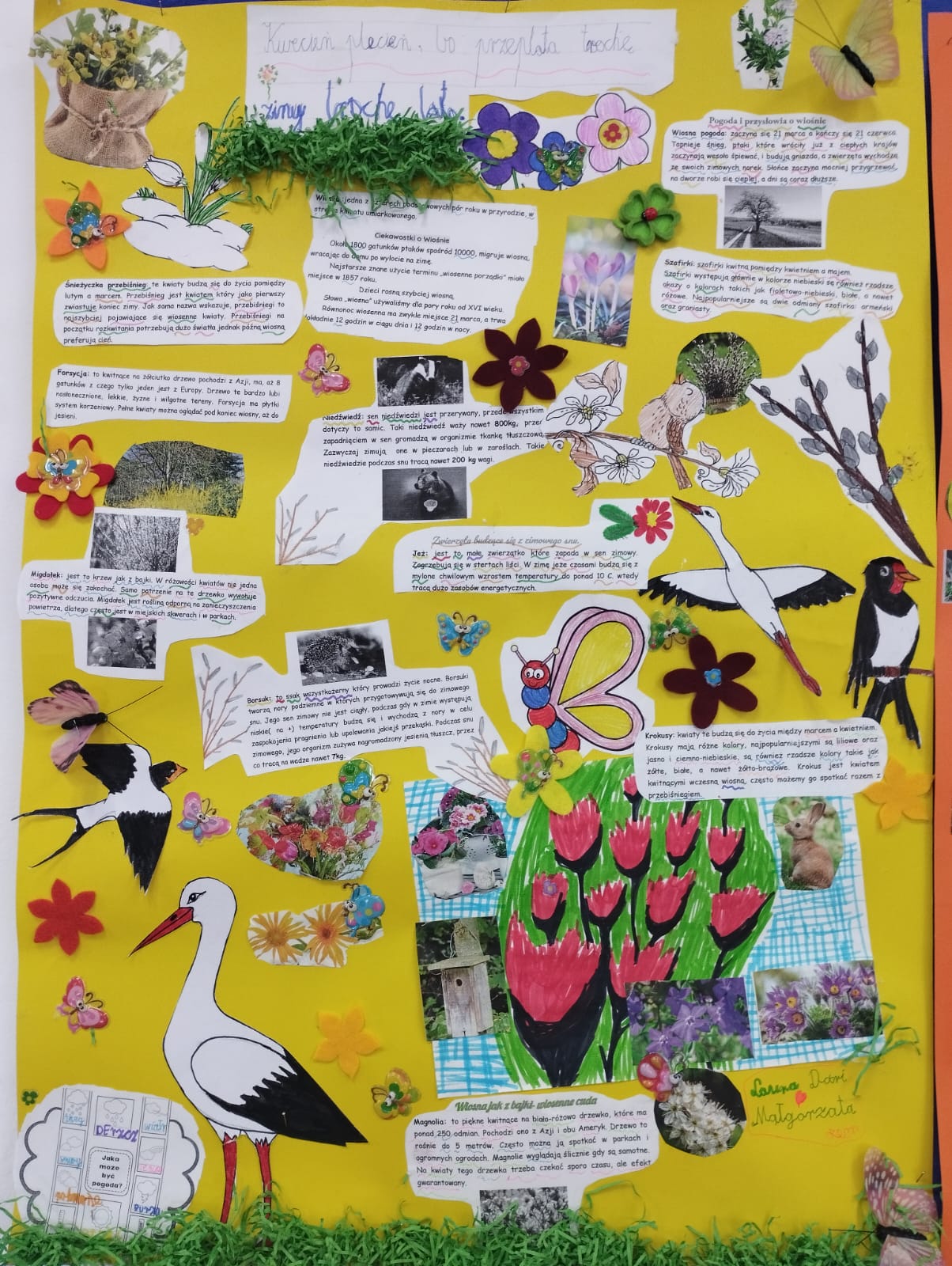 21 marca przywitaliśmy w naszej szkole wiosnę na wiele sposobów. Klasy młodsze powitały ją tańcem i śpiewem. Uczciły też jej przyjście konsumpcją kanapek z własanoręcznie wyhodowanym szczypiorkiem i rzeżuchą. Przygotowały też plakaty Atrybuty wiosny. Klasy trzecie wybrały się na wycieczkę w poszukiwaniu oznak wiosny.