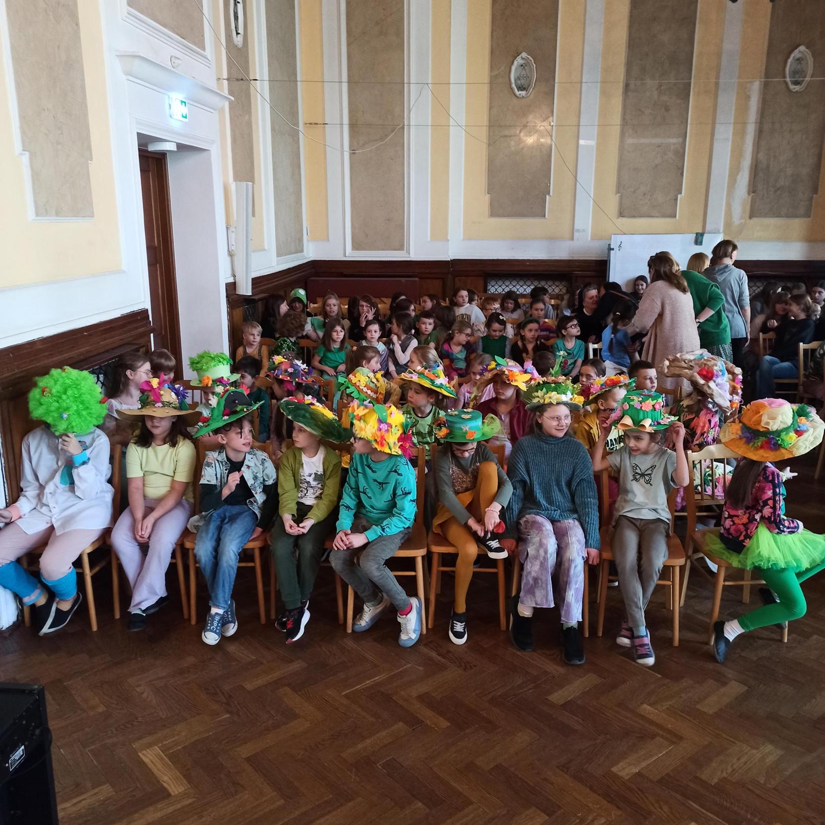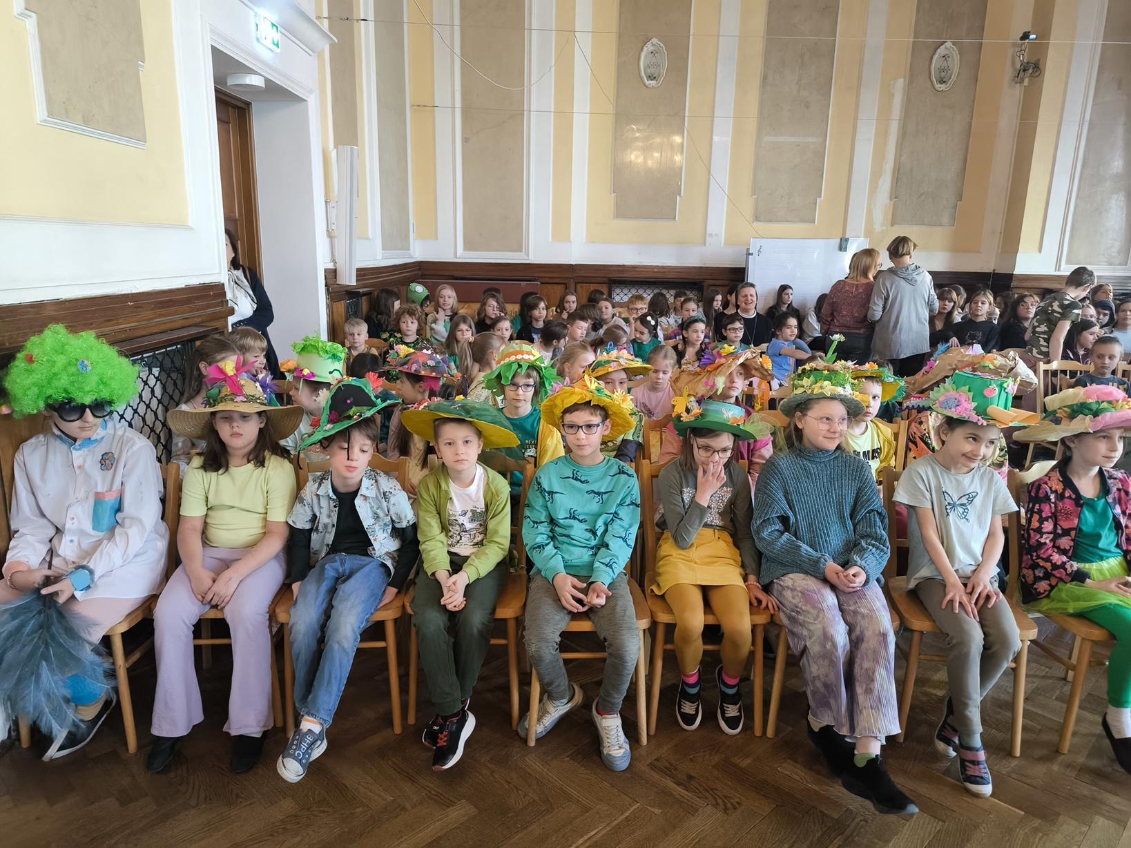 Obejrzeliśmy też pokaz wiosennych kapeluszy wykonanych na konkurs zorganizowany przez świetlicę szkolną.