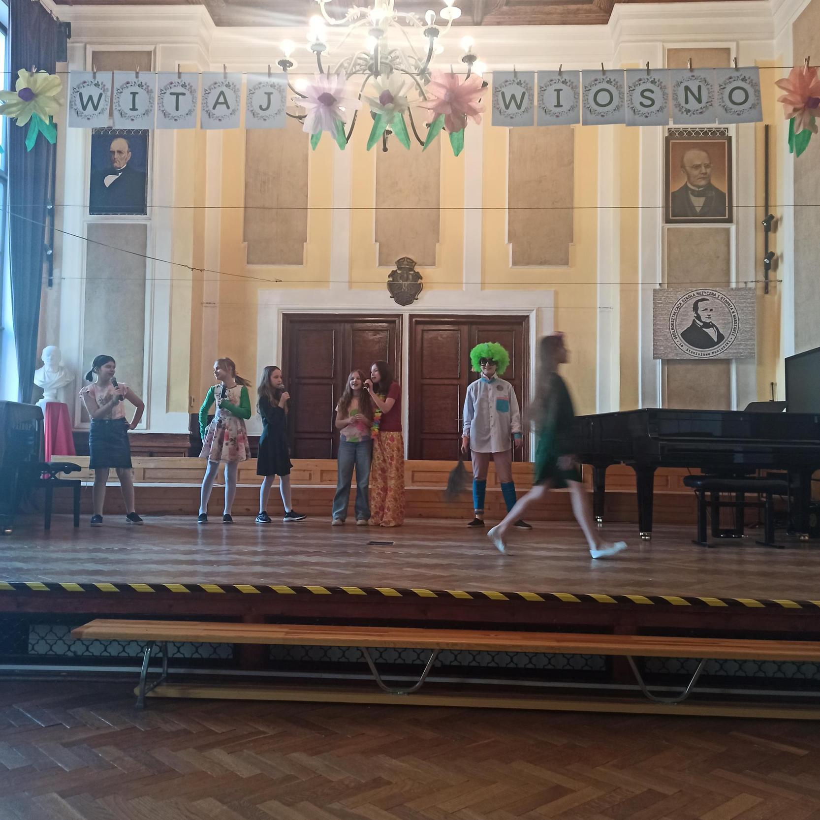 21 marca powitaliśmy w sali koncertowej wiosnę. Uroczystość z tej okazji przygotowały panie Jolanta Grochowska i Magdalena Stokowiec wraz z dziećmi z klasy 4 oraz ze świetlicy szkolnej.