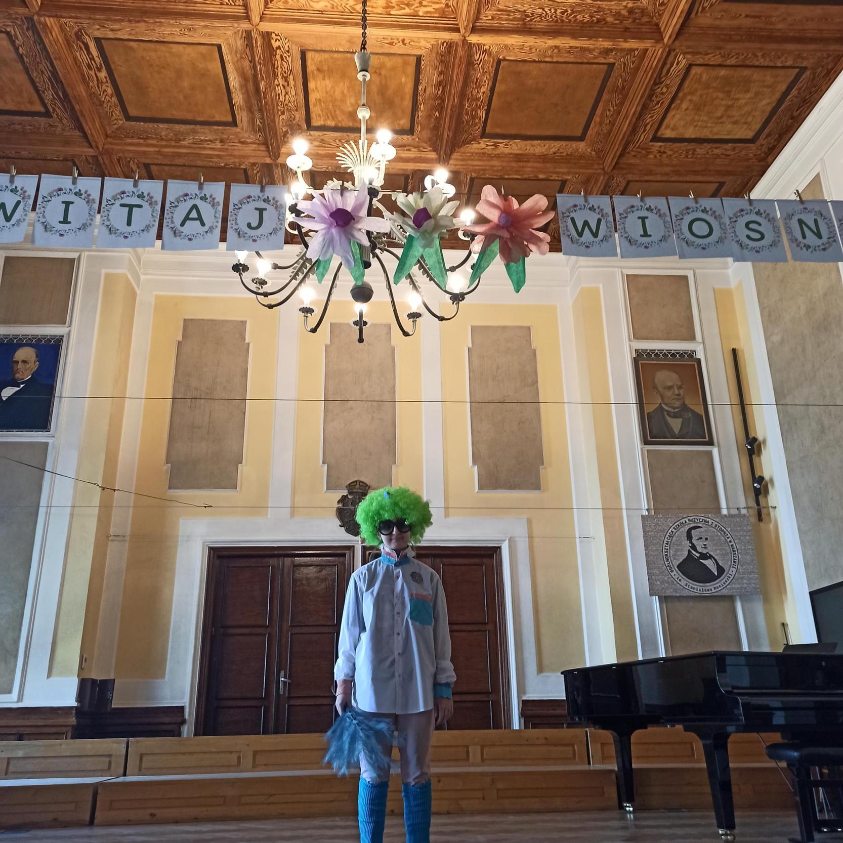 Wiosenna inscenizacja, pokaz mody (dla uczniów i nauczycieli), muzyczny akcent przygotowany przez panią Magdalenę Pulcyn wprowadził wszystkich w radośnie wiosenną atmosferę.