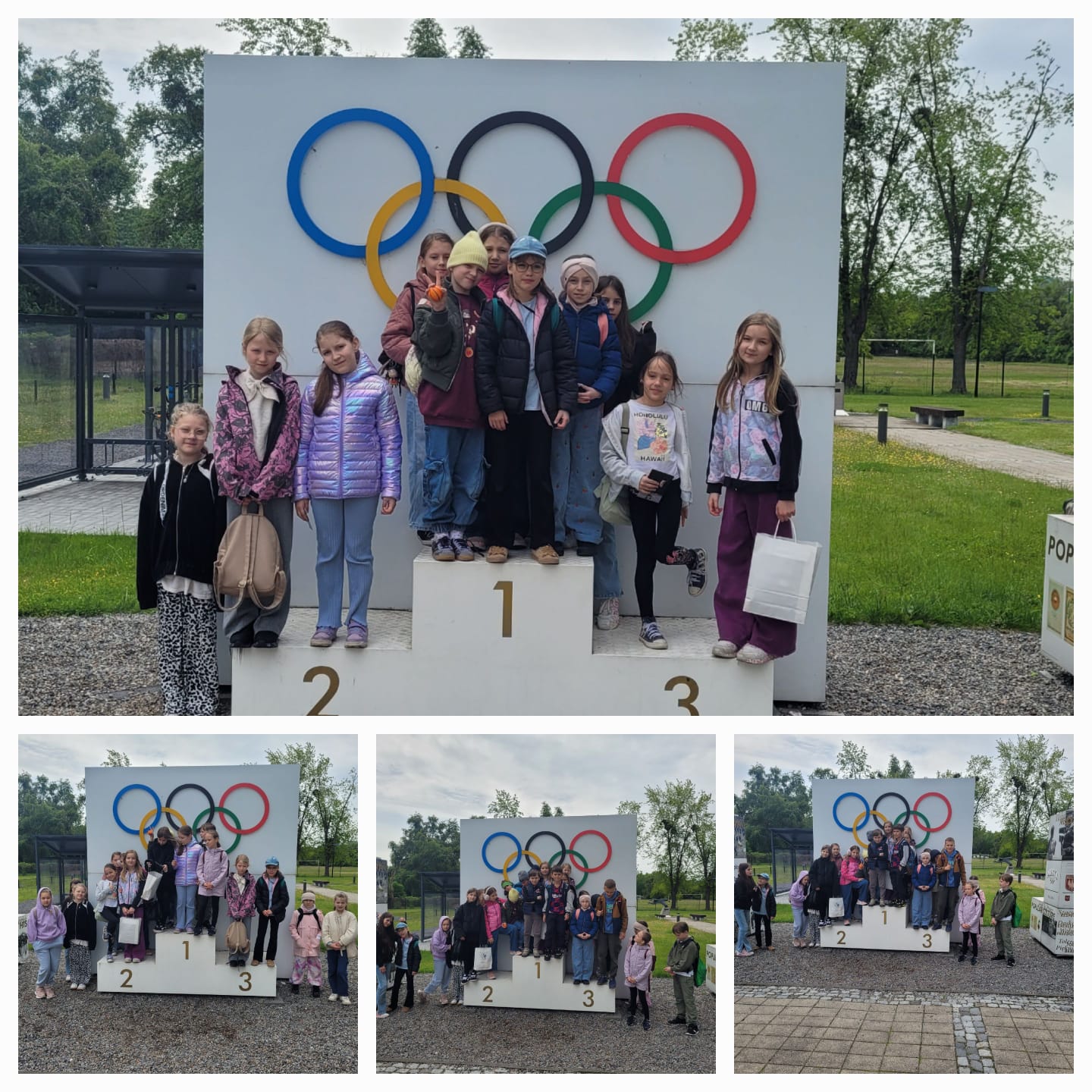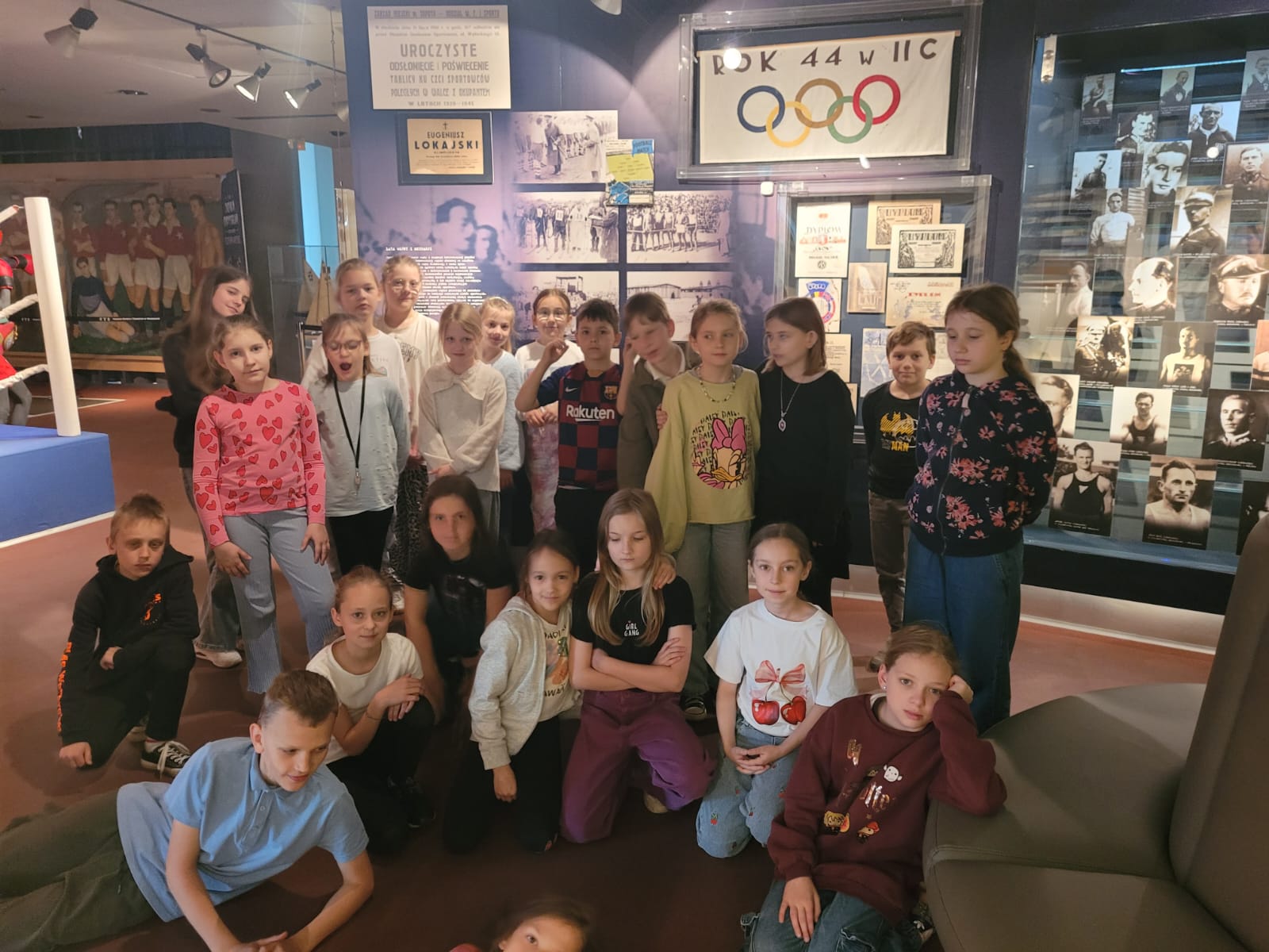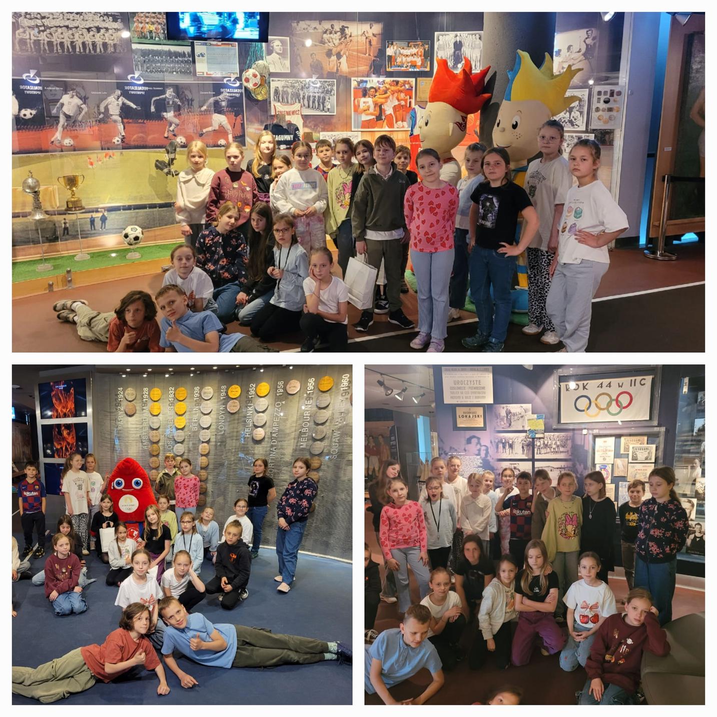 Podczas zwiedzania dzieci miały okazję poznać fascynującą historię igrzysk olimpijskich – zarówno tych starożytnych, jak i współczesnych. Z ogromnym zainteresowaniem oglądały zgromadzone eksponaty: medale, stroje sportowe, pochodnie olimpijskie oraz sprzęt używany przez znanych sportowców. Uczniowie z ciekawością słuchali opowieści, które przybliżały im wartości i ideę igrzysk olimpijskich.