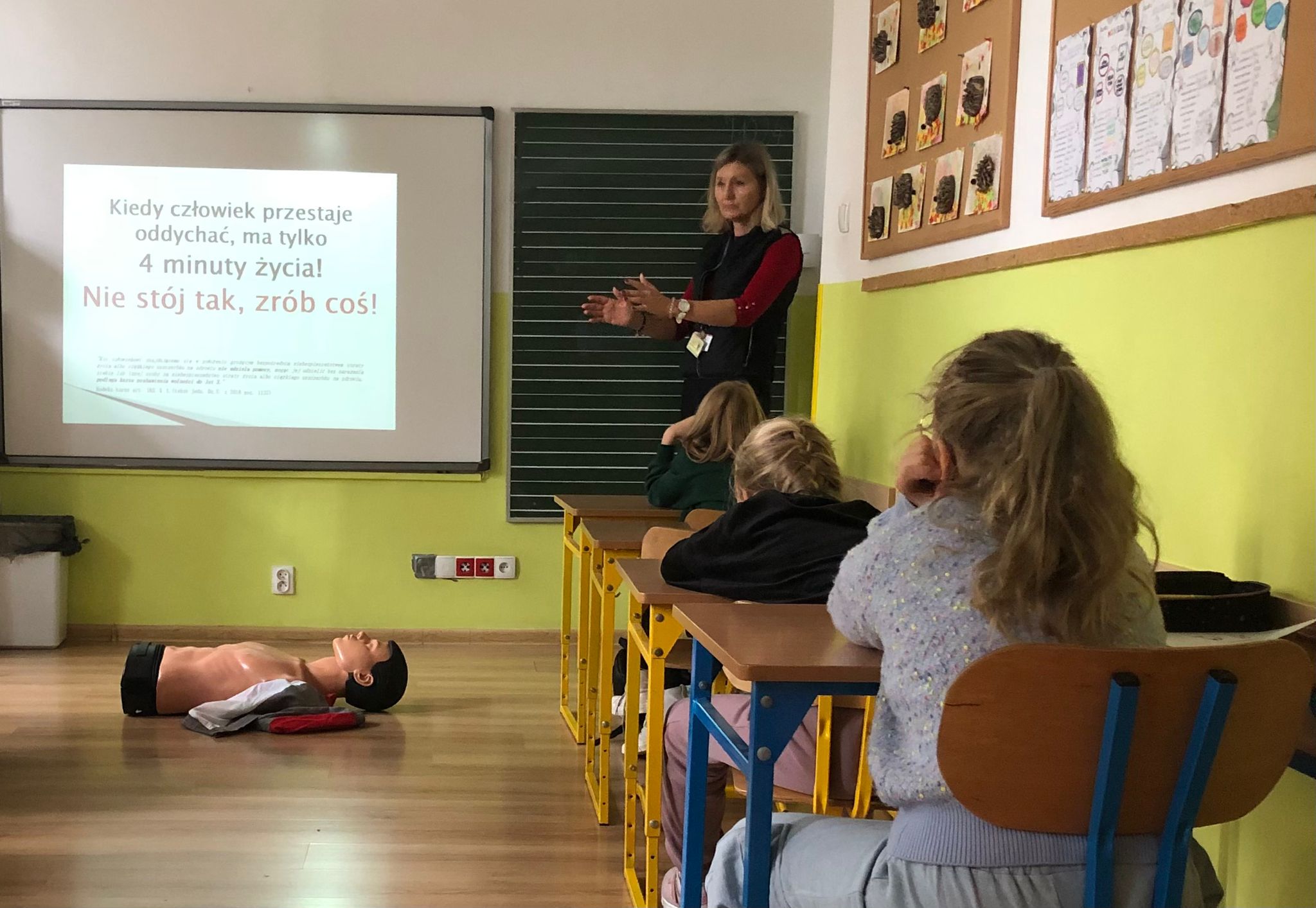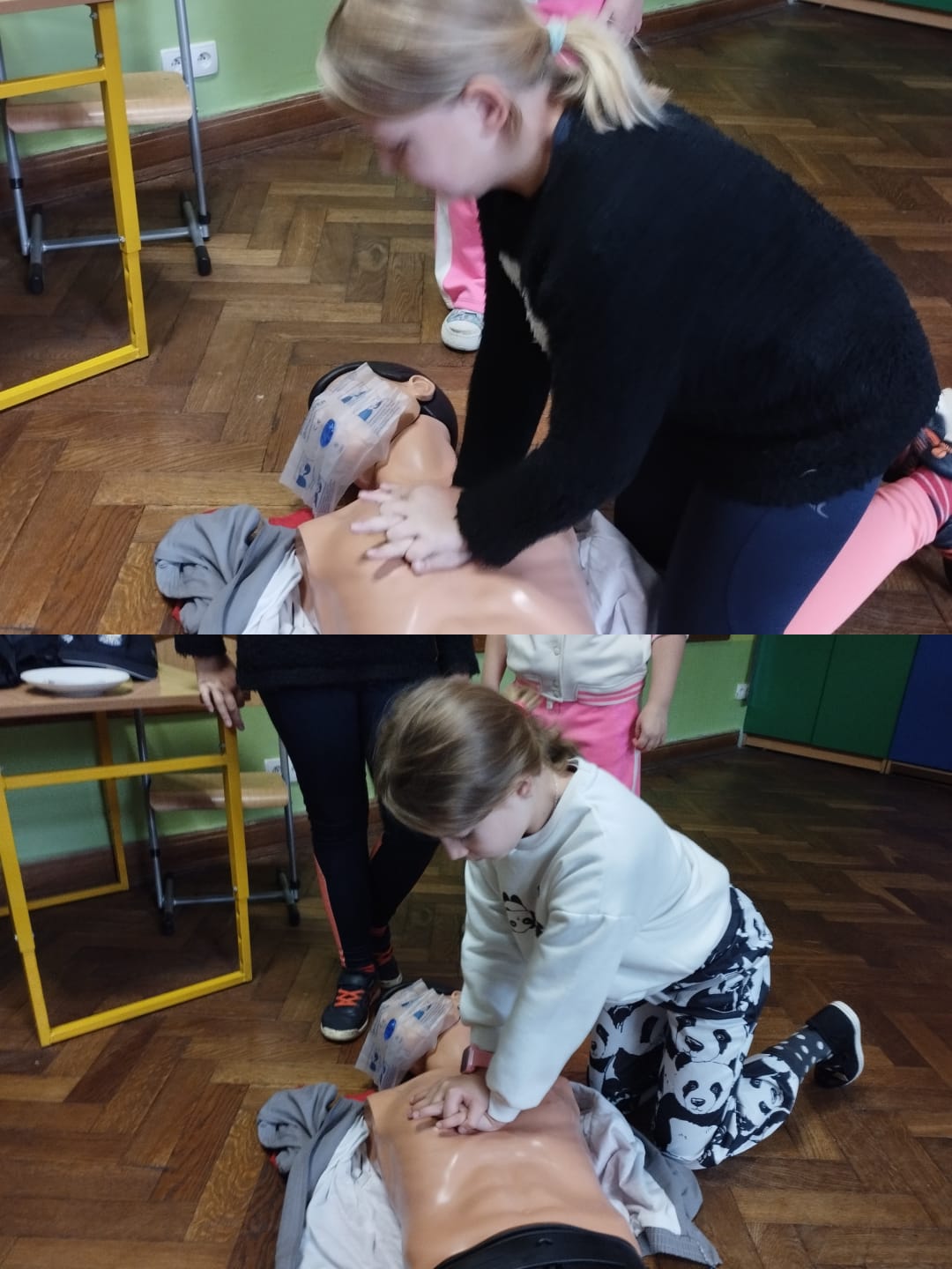 25 listopada w warsztatach z pierwszej pomocy przedmedycznej uczestniczyła klasa 3a. Dzieci wykonywały resuscytację krążeniowo-odechową na fantomie oraz uczyły się układania kolegów w pozycji bocznej bezpiecznej. Uczniowie na koniec otrzymali odblaski i misie z okazji Dnia Pluszowego Misia.