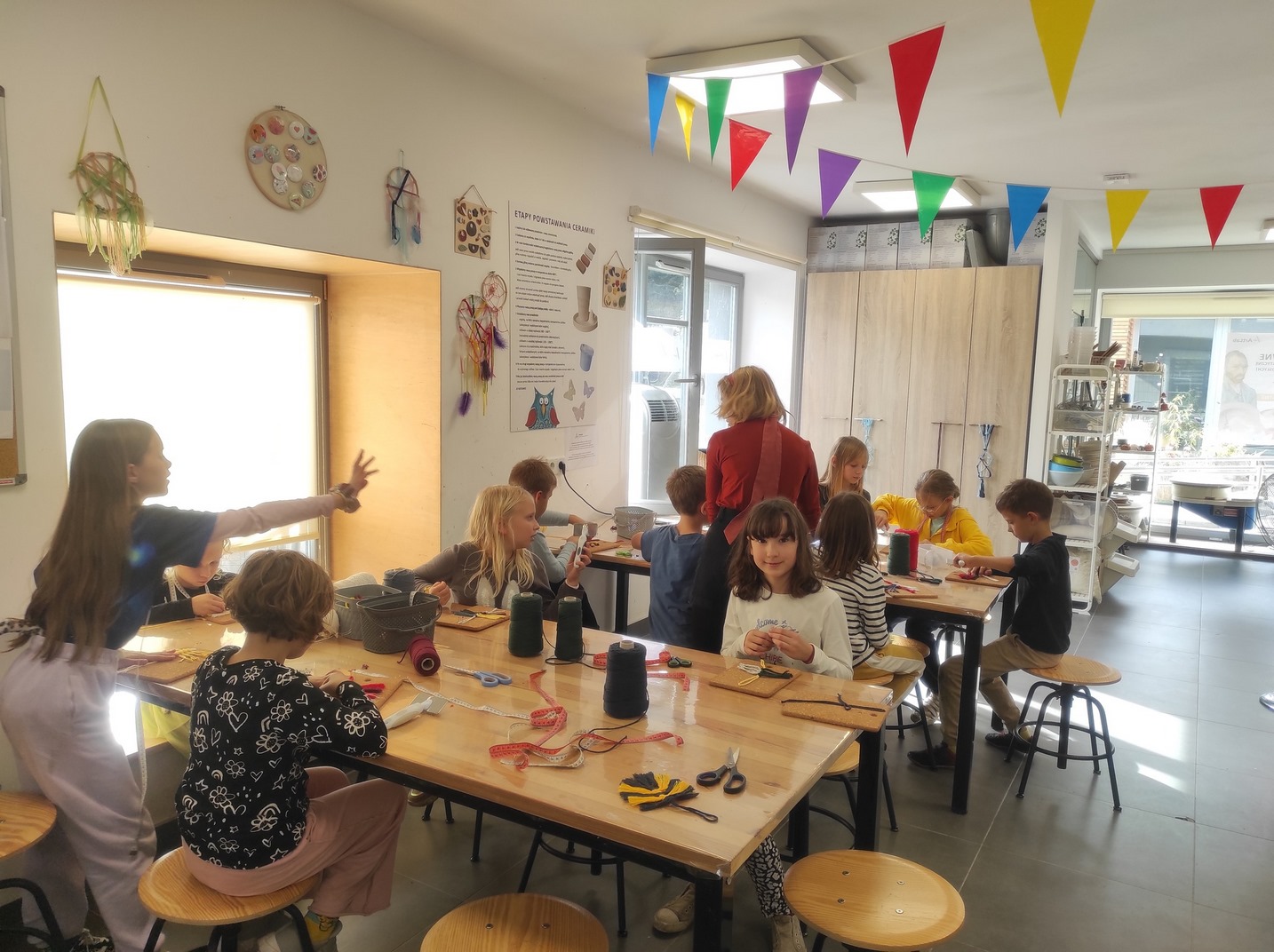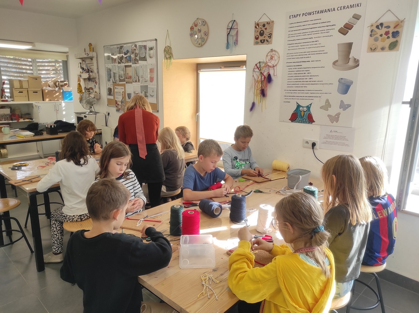 11.10.2023 klasa 3b odwiedziła pracownię ArtLab i wykonywała makramowe zawieszki. Makrama to sztuka plecenia sznurków bez użycia drutów czy szydełek. Słowo makrama oznacza dekorację wiązaną. Wszystkie wykonane zawieszki były przepiękne.
